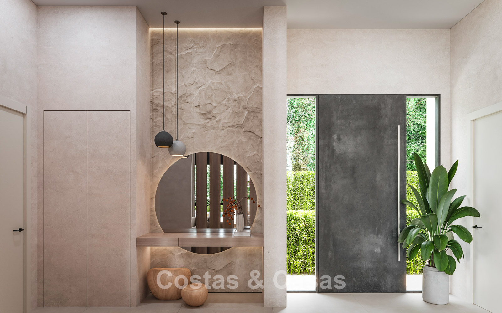 Située sur un vaste terrain, entourée d’un paysage luxuriant. Piscine à débordement avec terrasse ensoleillée adjacente. De vastes terrasses offrent un vaste espace de détente. Une terrasse pergola attenante comprend une cuisine extérieure avec barbecue et îlot central. Orientation sud-ouest.