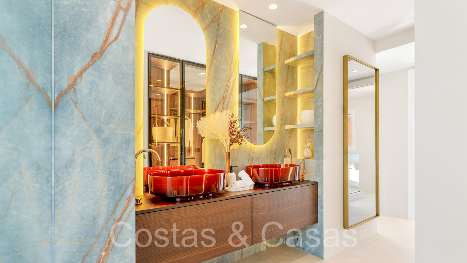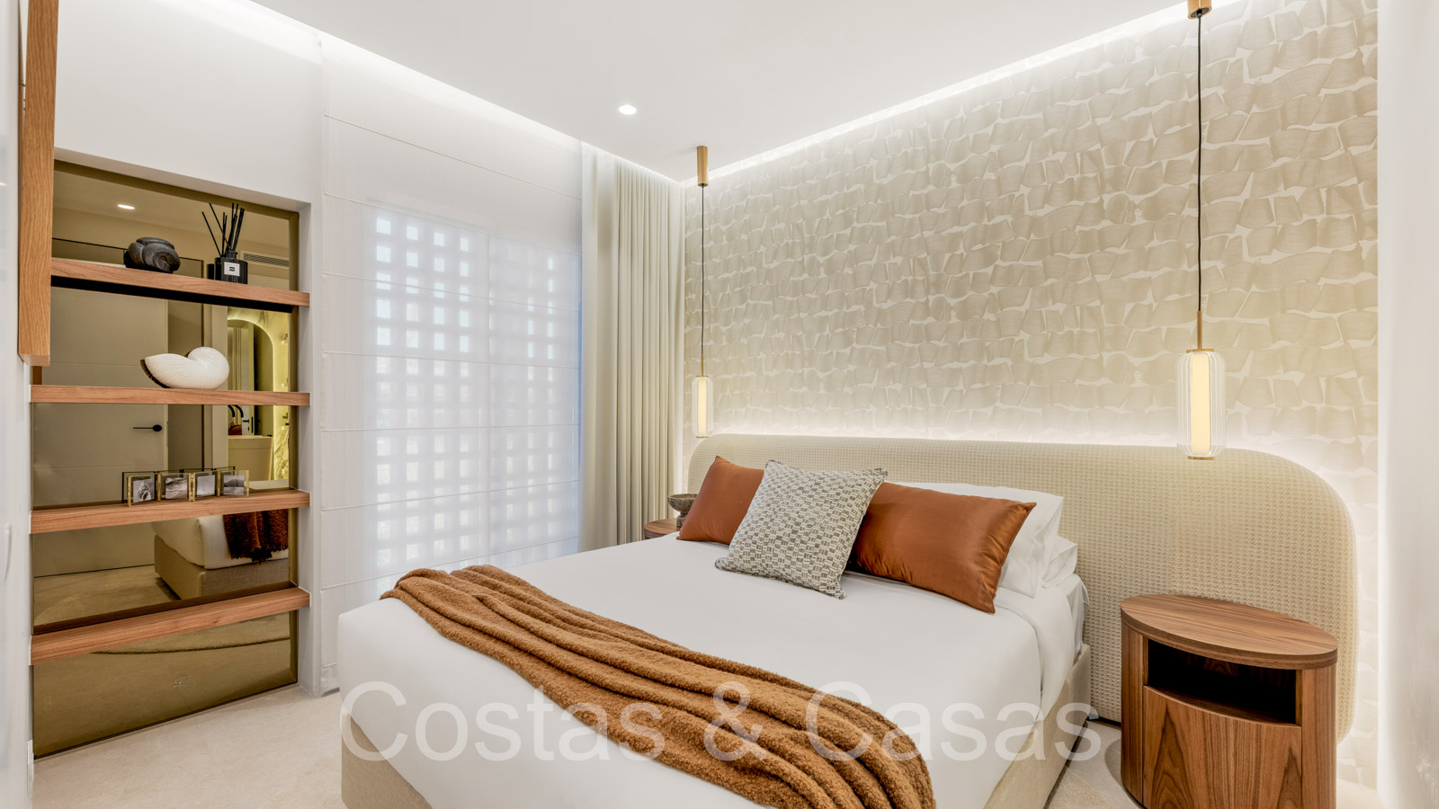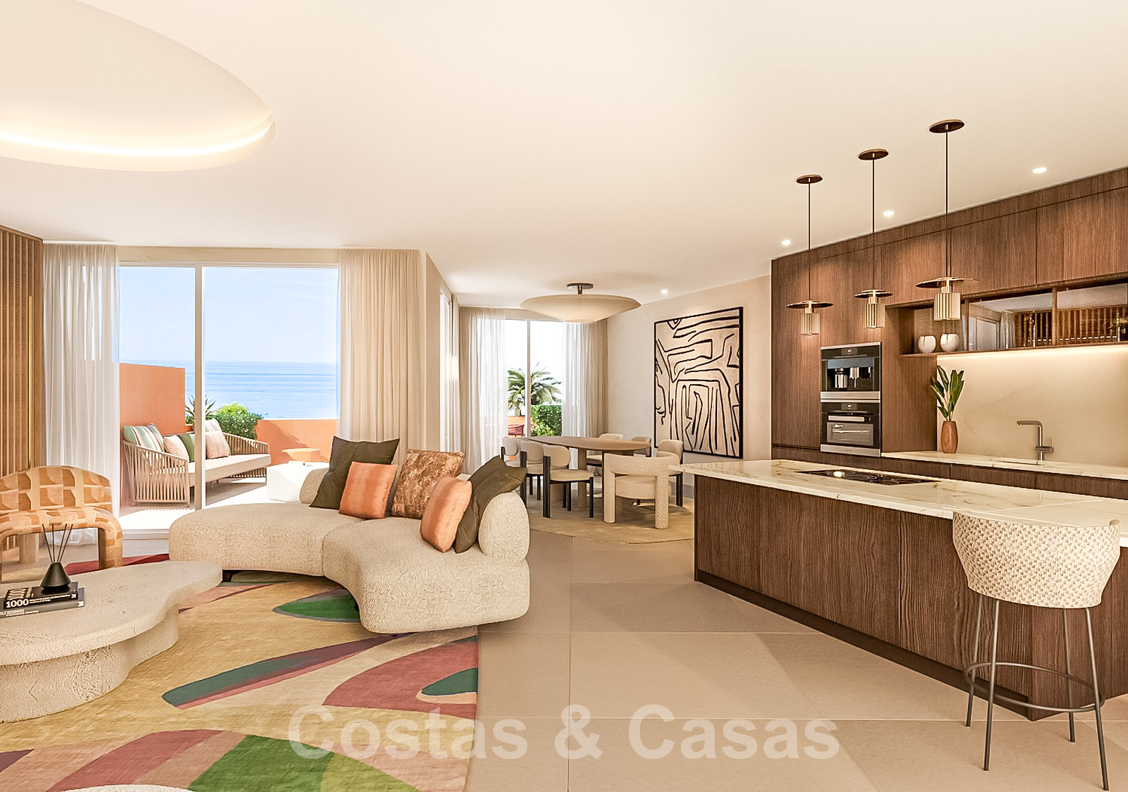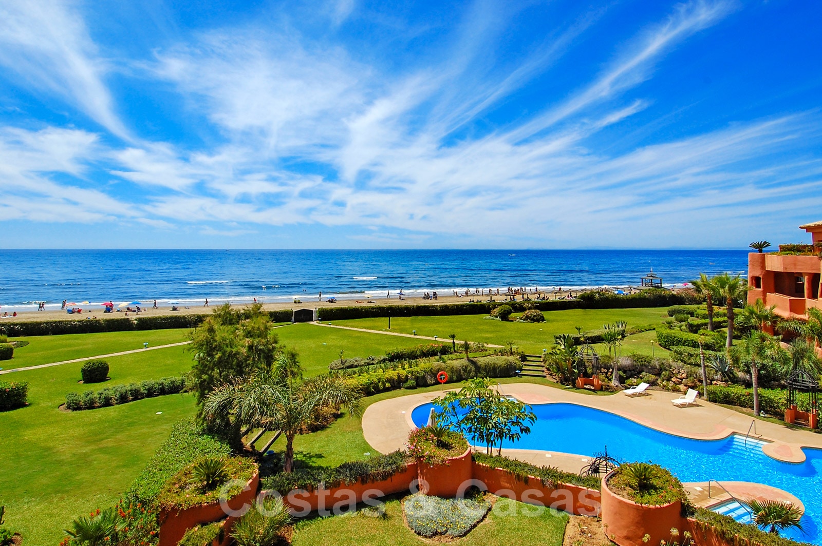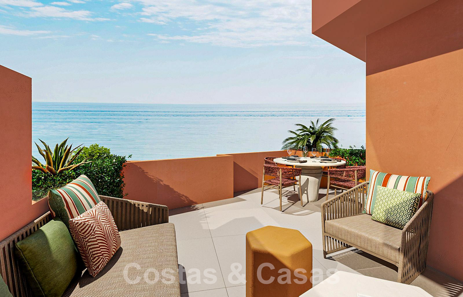 Appartement de luxe moderne et élégant, en première ligne de plage à vendre sur le nouveau Golden Mile, entre Marbella et Estepona