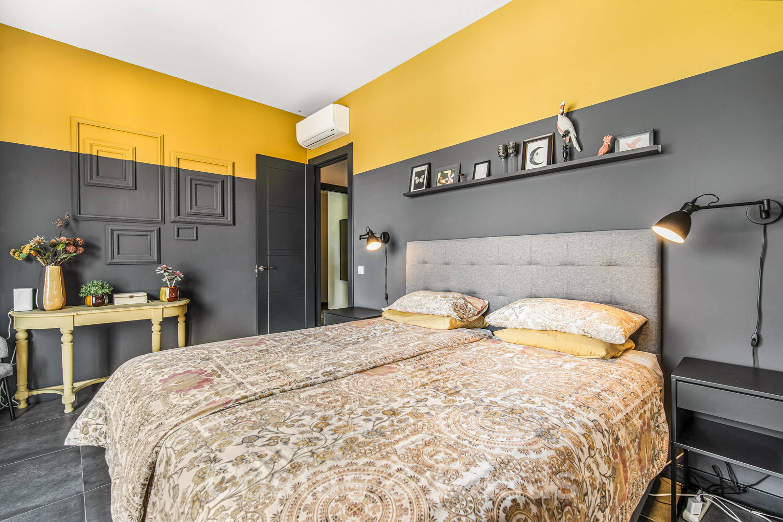 Intérieur moderne et de caractère avec des pièces de design rétro.