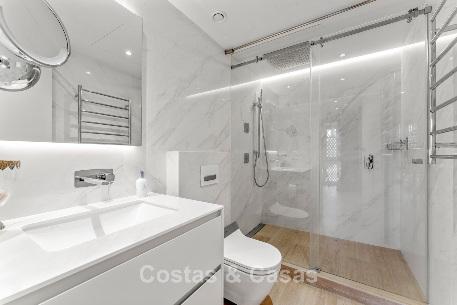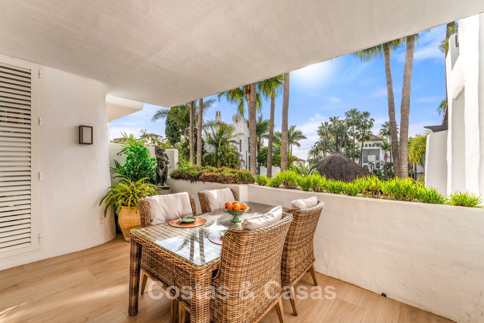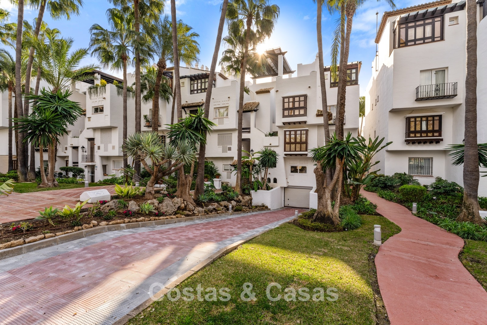 Appartement de standing situé dans le complexe balnéaire de Marina de Puente Romano. Utilisant des matériaux de haute qualité. L'intérieur respire l'élégance moderne et un mélange harmonieux de tons clairs et naturels créant une atmosphère chaleureuse et accueillante. Une terrasse couverte spacieuse et accueillante, idéale pour les repas en plein air et la détente. De hautes baies vitrées coulissantes dans le séjour offrent un intérieur lumineux et un accès à l'extérieur. Espace de vie ouvert. Cuisine/salle à manger ouverte, entièrement équipée avec des appareils Miele. 3 chambres spacieuses avec 3 salles de bain. La chambre principale bénéficie d'un accès direct à la terrasse. Parquet en céramique. Débarras. Garage privé.
