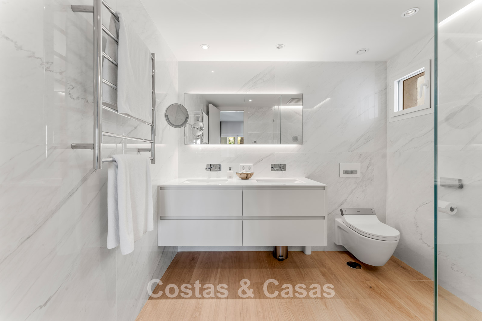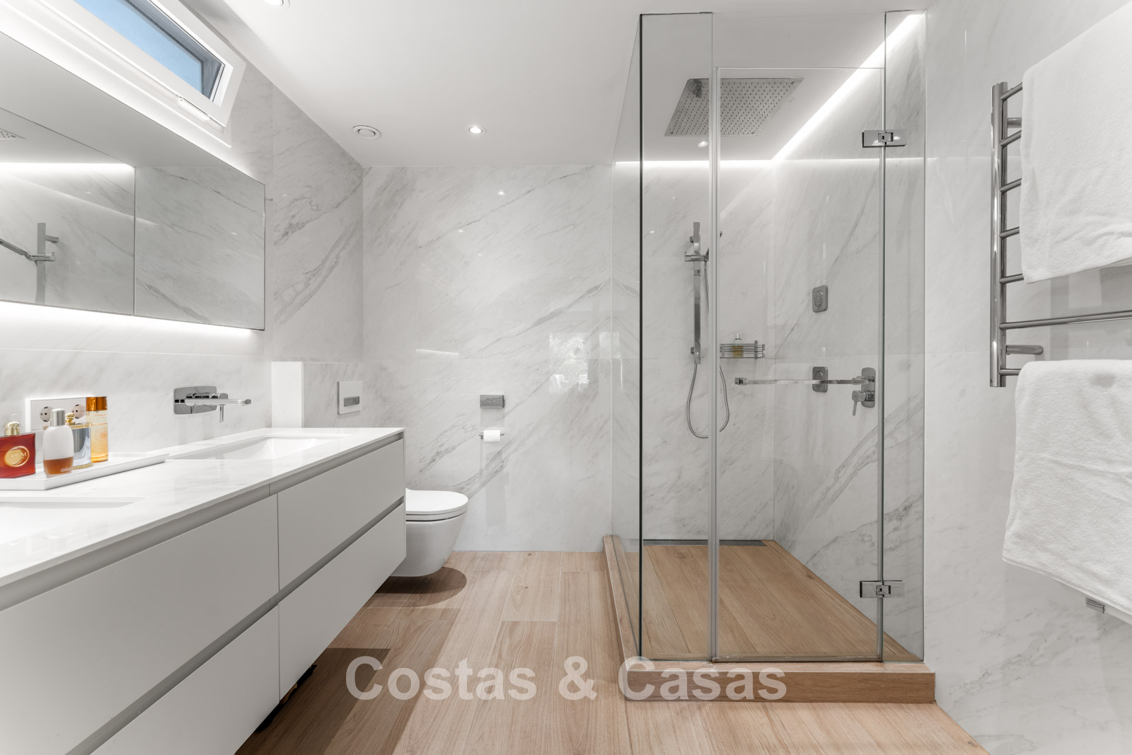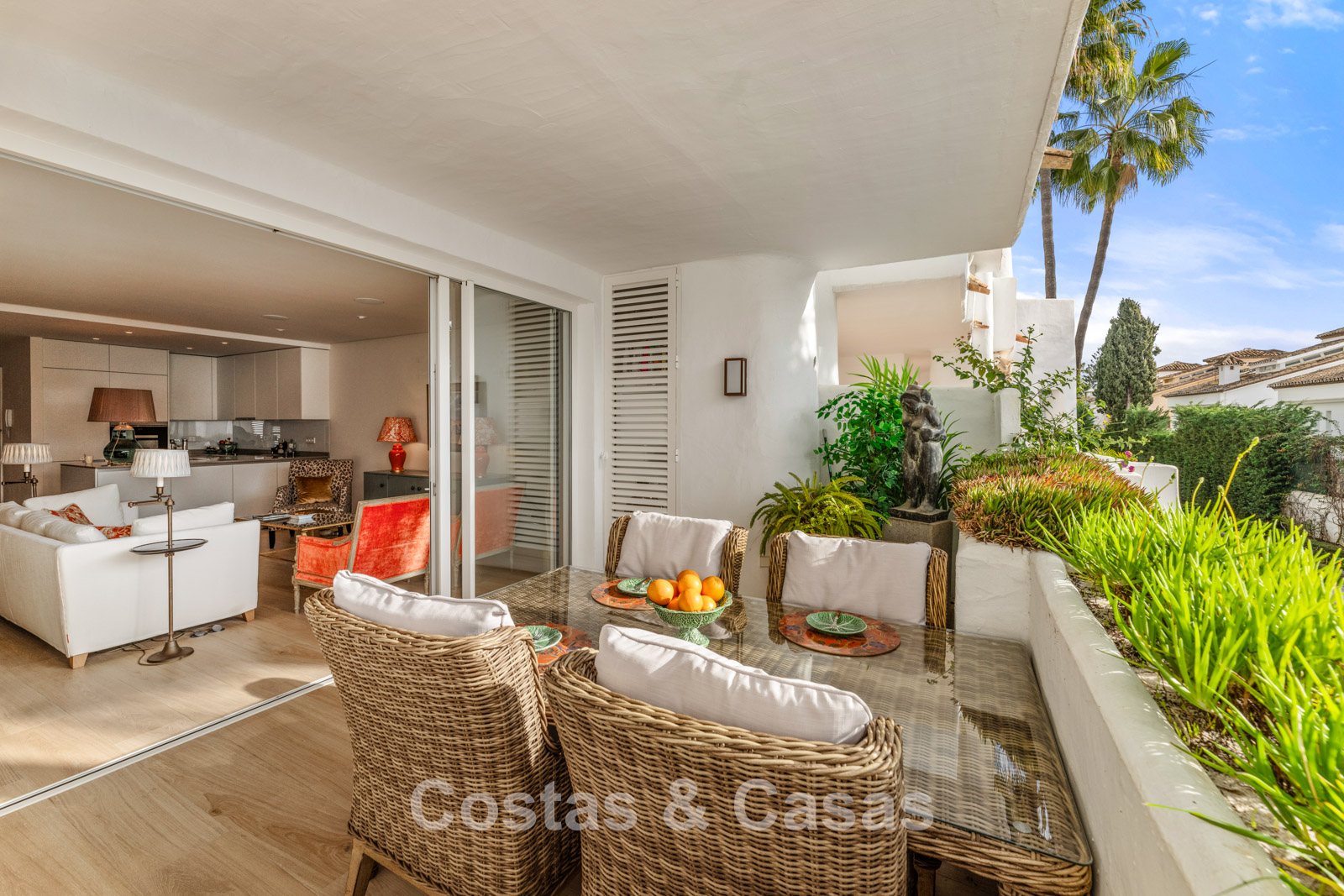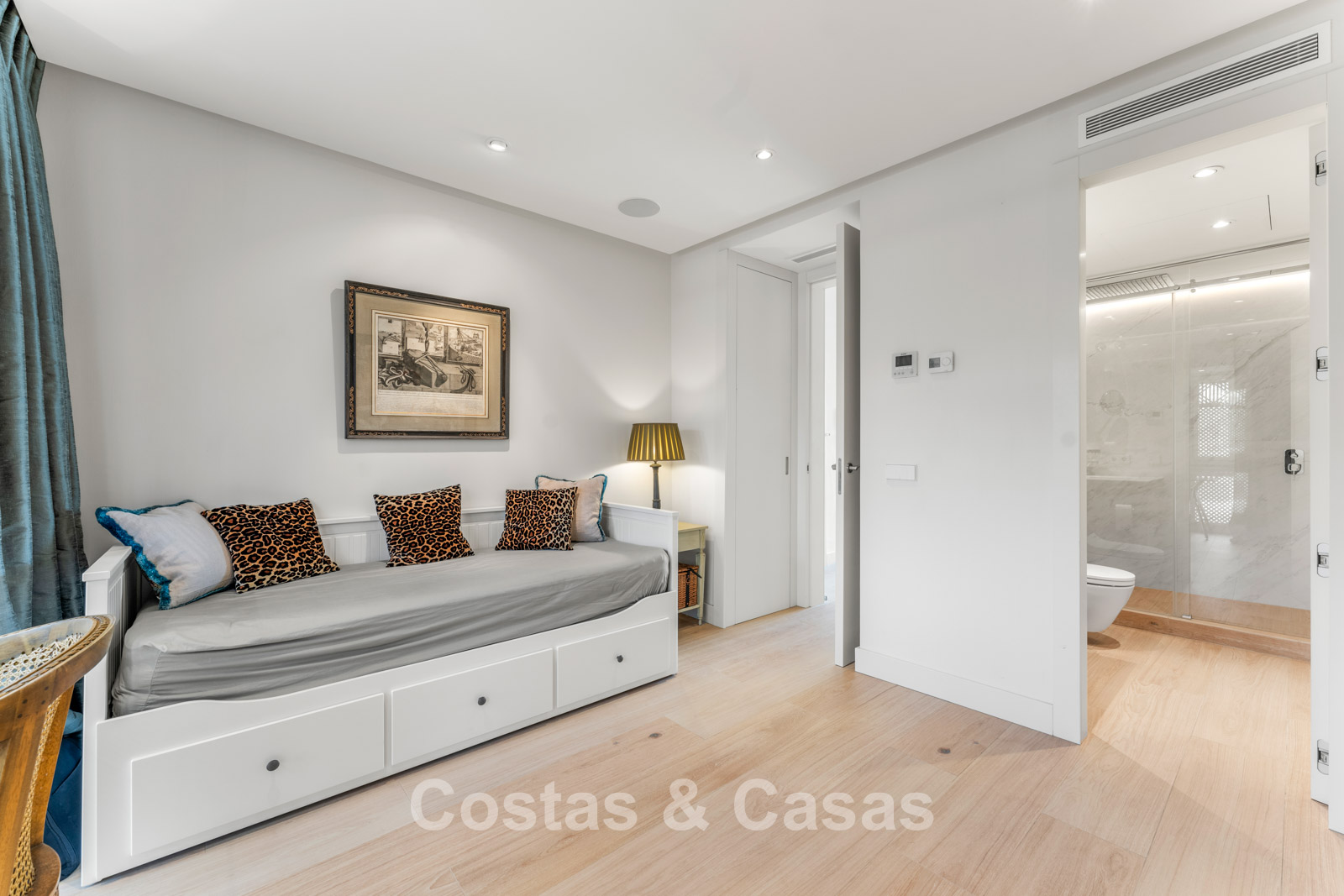 Appartement de standing situé dans le complexe balnéaire de Marina de Puente Romano. Utilisant des matériaux de haute qualité. L'intérieur respire l'élégance moderne et un mélange harmonieux de tons clairs et naturels créant une atmosphère chaleureuse et accueillante. Une terrasse couverte spacieuse et accueillante, idéale pour les repas en plein air et la détente. De hautes baies vitrées coulissantes dans le séjour offrent un intérieur lumineux et un accès à l'extérieur. Espace de vie ouvert. Cuisine/salle à manger ouverte, entièrement équipée avec des appareils Miele. 3 chambres spacieuses avec 3 salles de bain. La chambre principale bénéficie d'un accès direct à la terrasse. Parquet en céramique. Débarras. Garage privé.