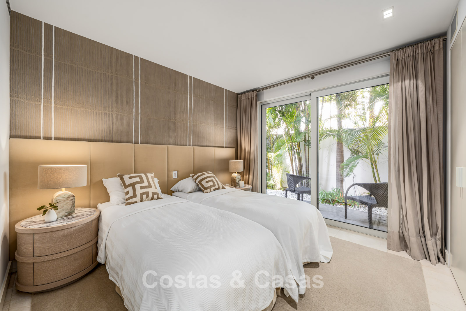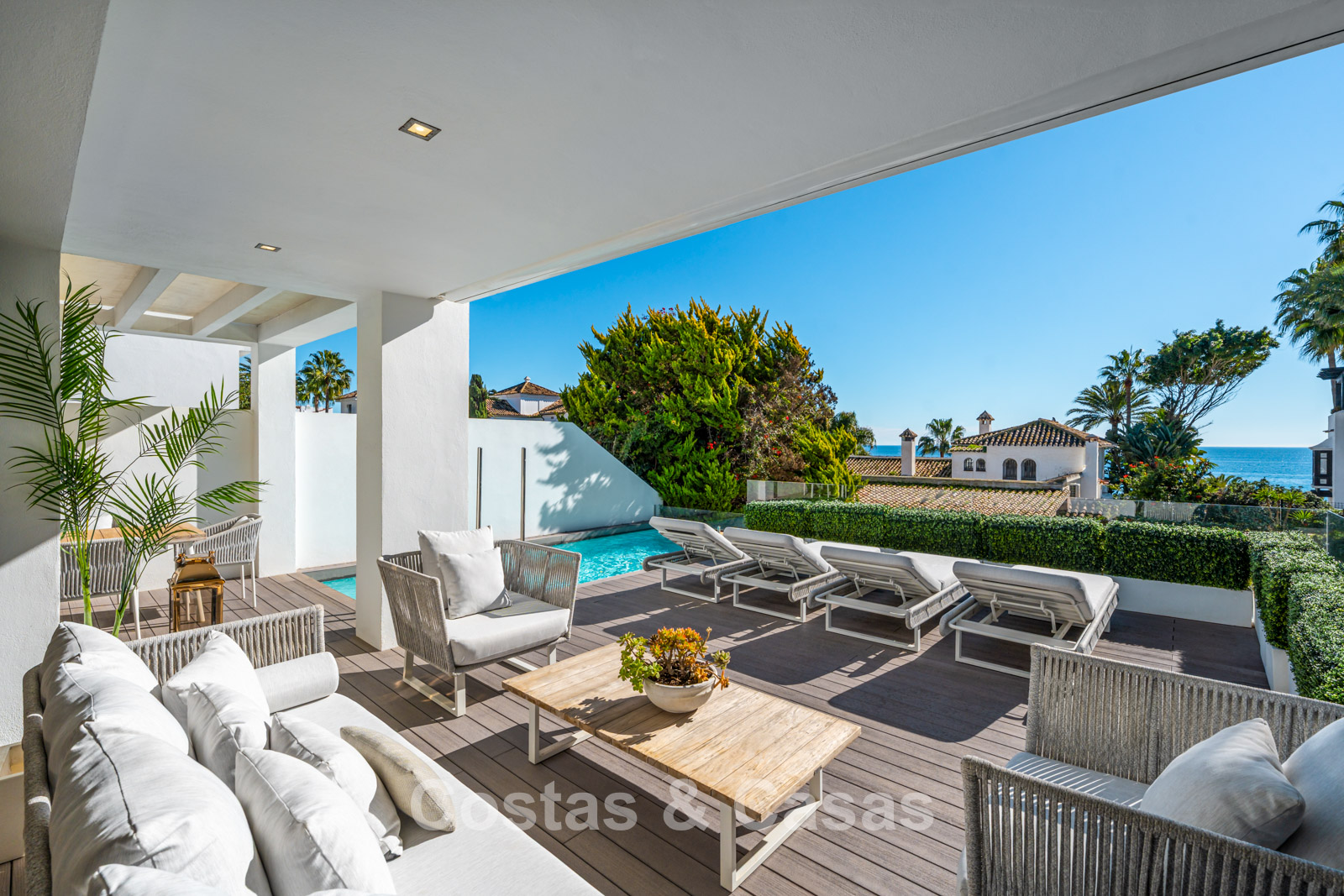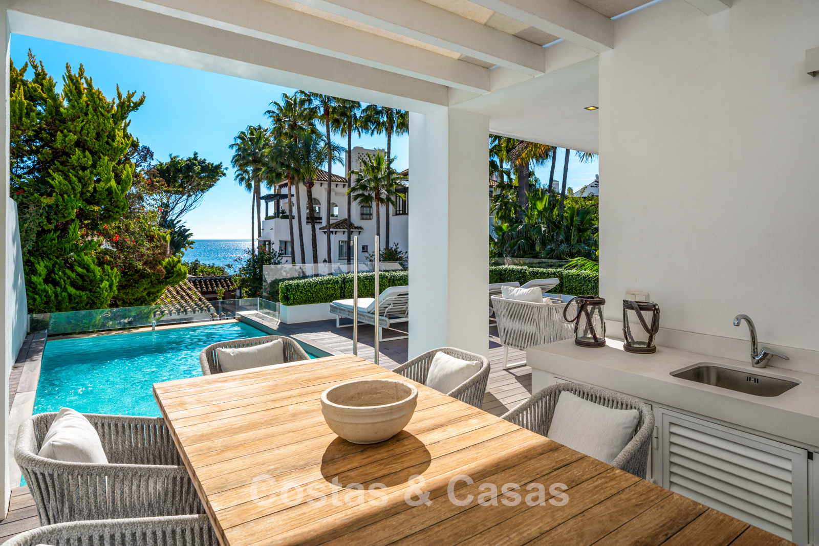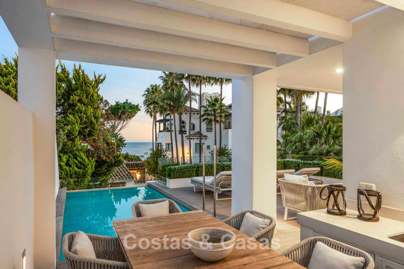 Située en deuxième ligne de plage au sein du prestigieux Puente Romano Beach Resort sur la Golden Mile, à quelques pas de la charmante promenade maritime, avec une excellente sélection de restaurants, de chiringuitos typiques et de beach clubs exclusifs. Idéalement située entre Marbella et Puerto Banús, deux destinations emblématiques, tout est facilement accessible à pied. La Vallée du Golf de Nueva Andalucía, qui abrite plusieurs des meilleurs parcours de golf d’Europe, se trouve à seulement 5 minutes en voiture.