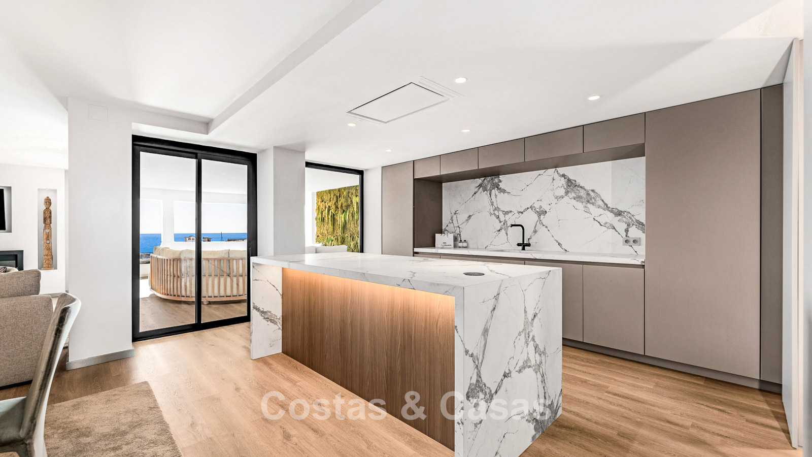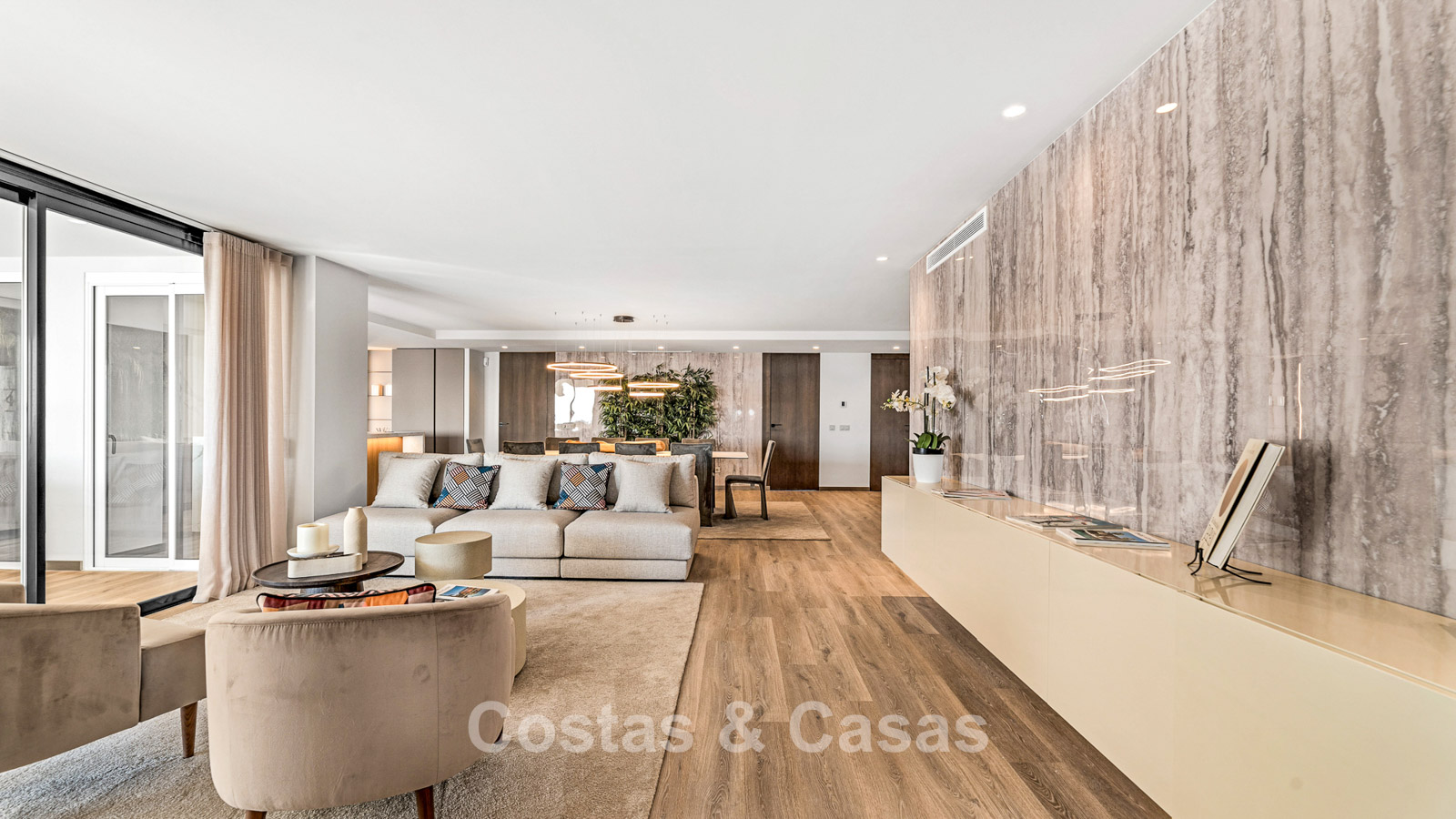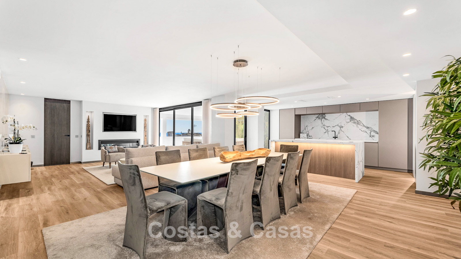Appartement spacieux et très lumineux. Matériaux de qualité. Orientation sud/nord. Vue sur la mer et montagne. Terrasse couverte agréable, aménagée avec un salon autour d'un foyer, idéale pour des soirées relaxantes. Les grandes baies vitrées coulissantes maximisent la lumière naturelle et s'ouvrent sur l'extérieur. Design moderne et ouvert. Espace de vie spacieux avec salon TV et salle à manger intégrée. La cuisine moderne avec îlot central a été conçue dans un souci de fonctionnalité. 5 chambres, 4 salles de bain et une toilette séparée. Buanderie. Parquet. Place de parking souterraine.