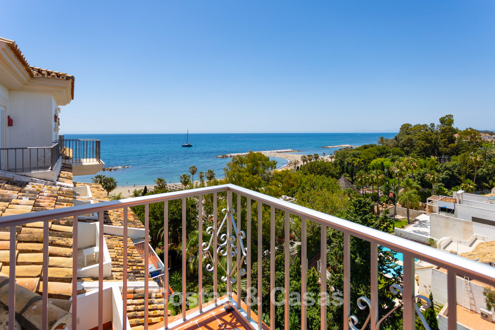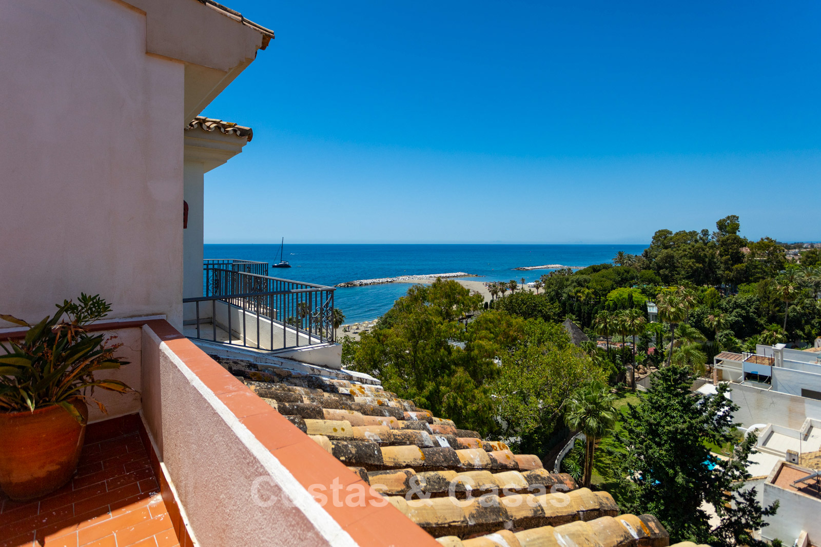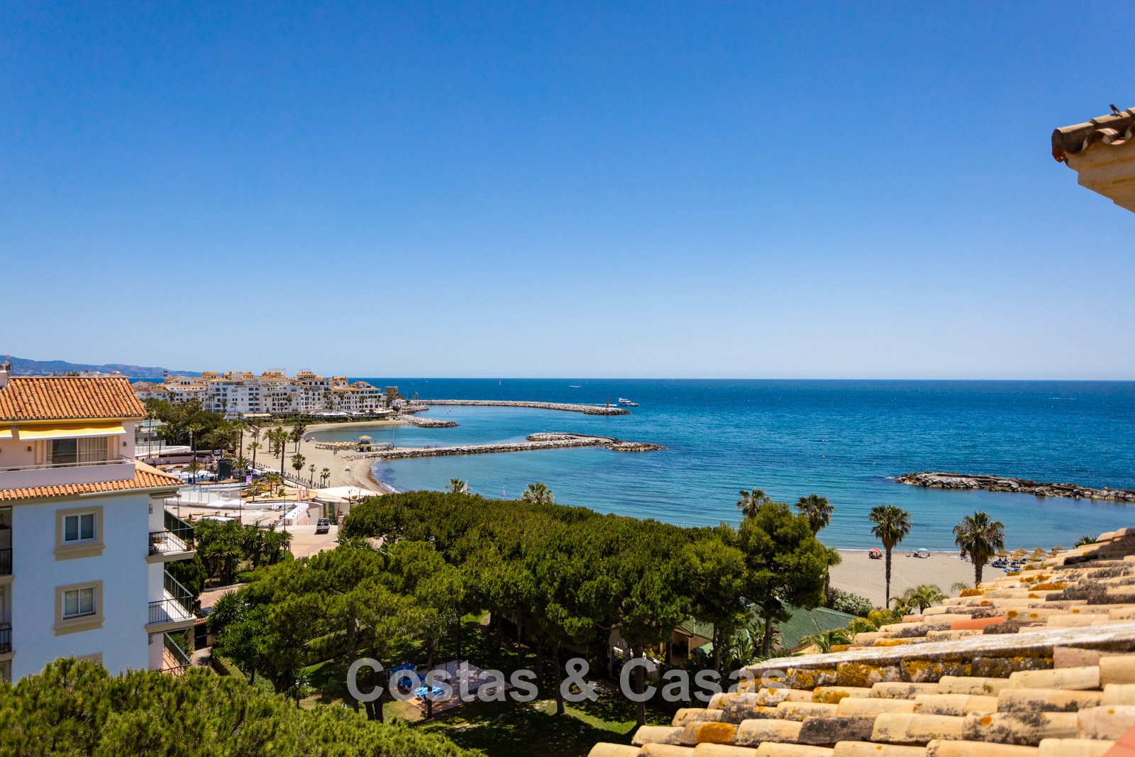 Vue imprenable sur la plage, la marina et le littoral.
