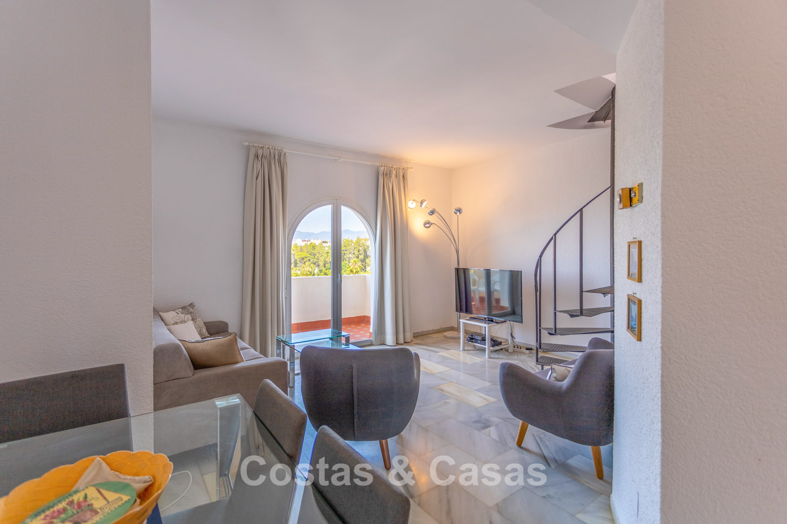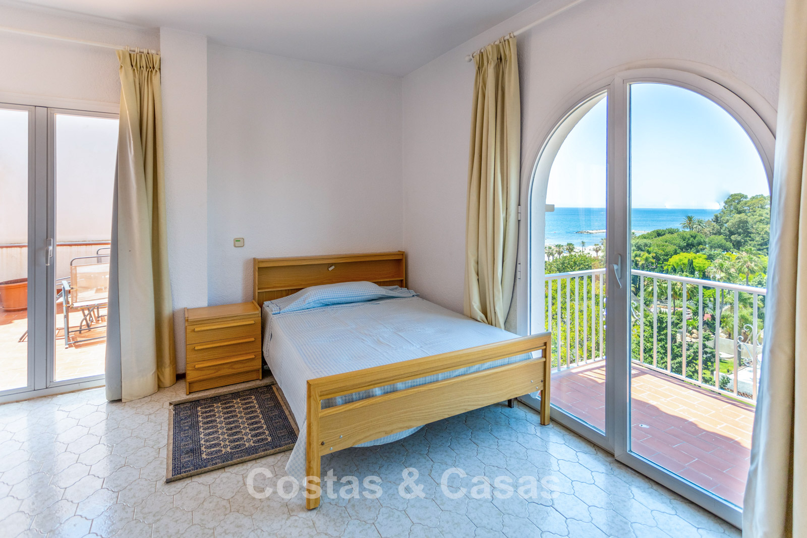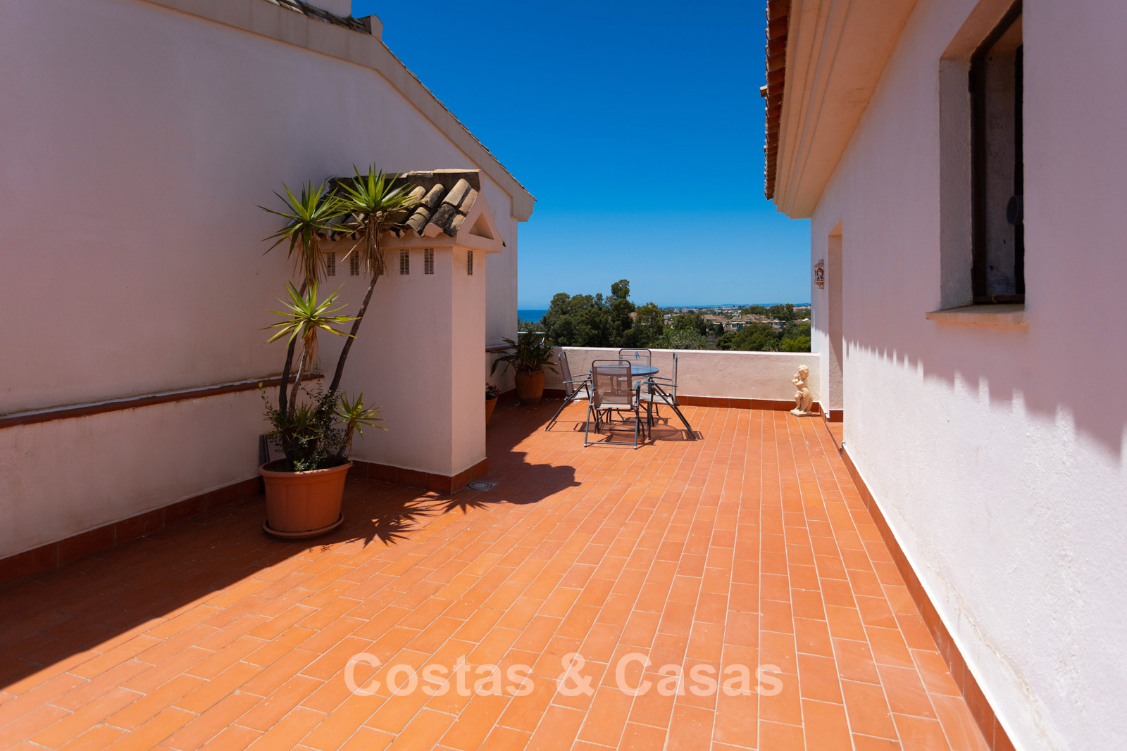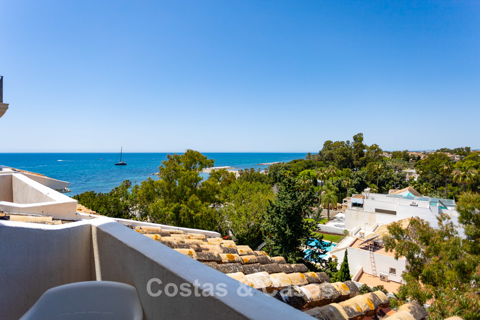 Penthouse en duplex au 5e étage. Le complexe est conçu selon une architecture andalouse typique. Orientation sud-ouest. Magnifique vue panoramique sur la plage, le port de plaisance et le littoral. Ce projet de rénovation est une opportunité idéale pour créer une maison contemporaine ou investir dans un bien locatif très prisé. Une terrasse côté ouest est idéale pour profiter du soleil de l'après-midi et admirer la mer. 3 chambres, 3 salles de bain, dont 2 attenantes. L'étage supérieur est entièrement dédié à la suite parentale, avec sa propre salle de bain, un dressing et une terrasse privée offrant une vue imprenable. Place de parking intérieure.