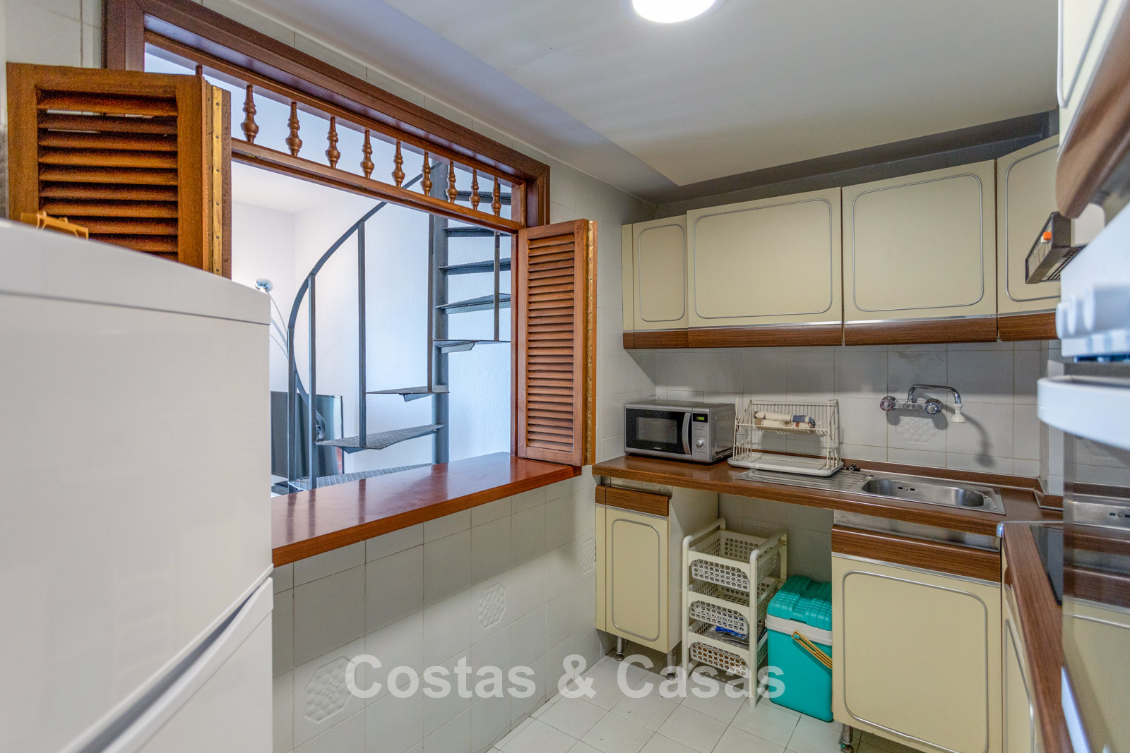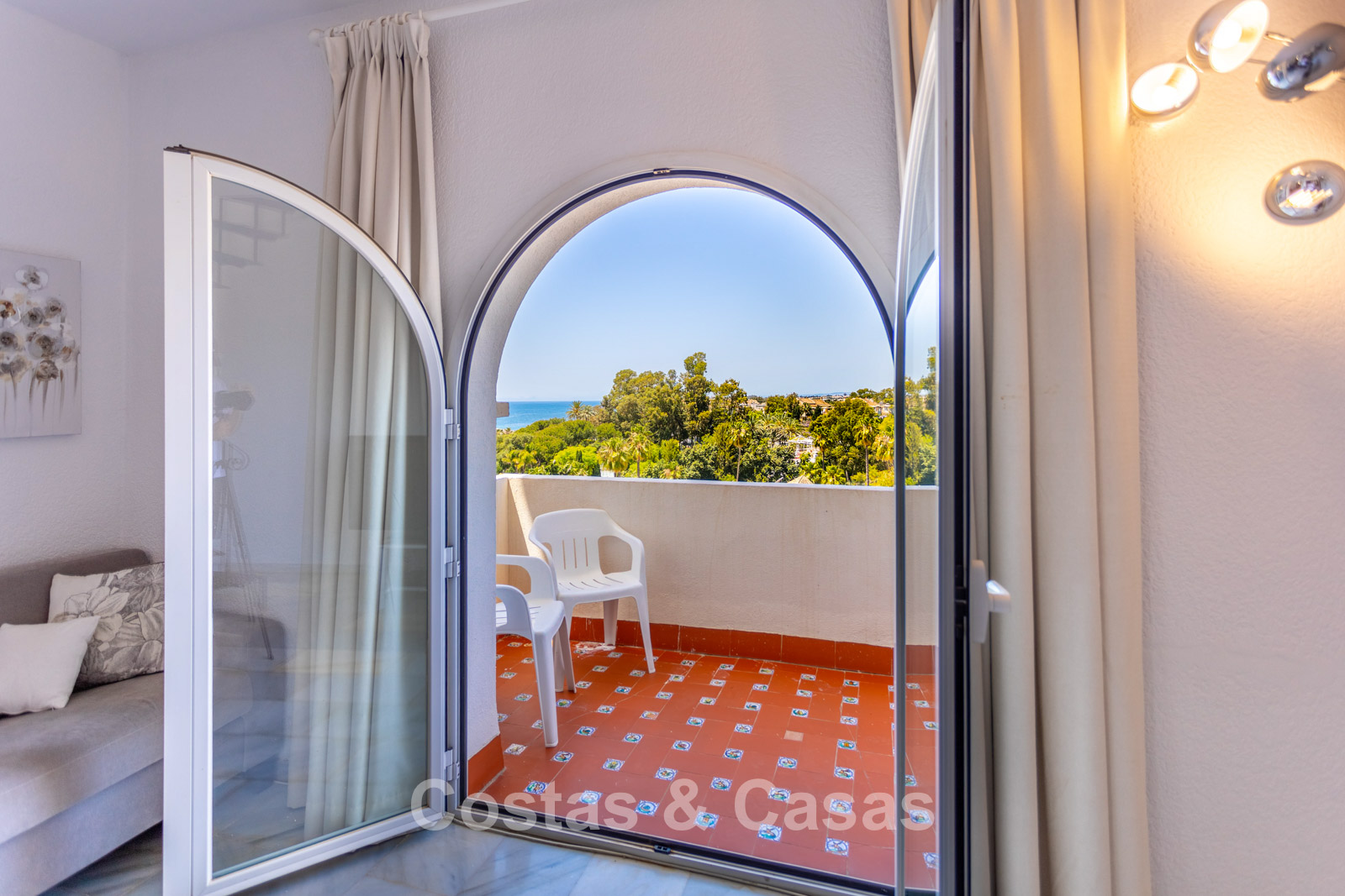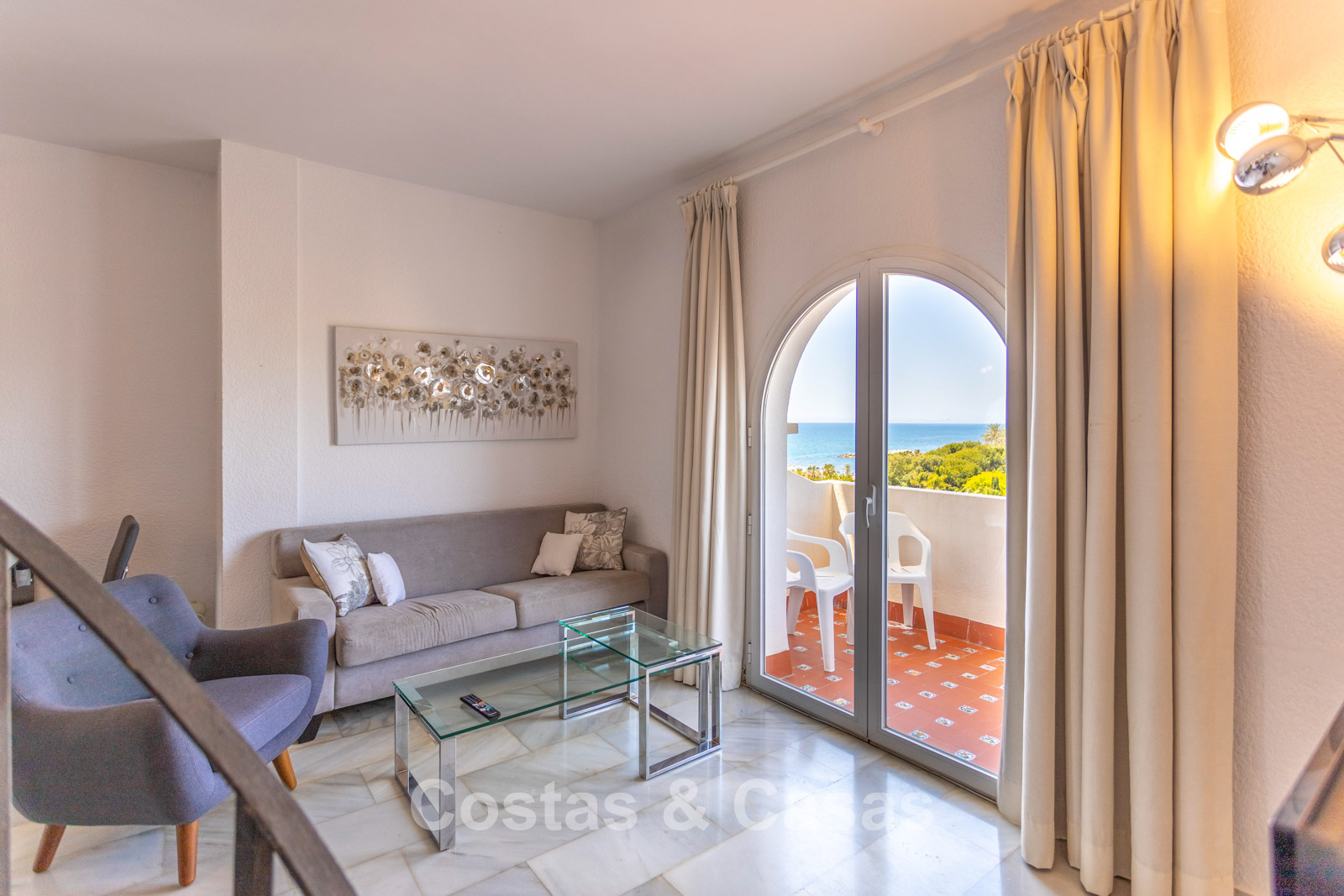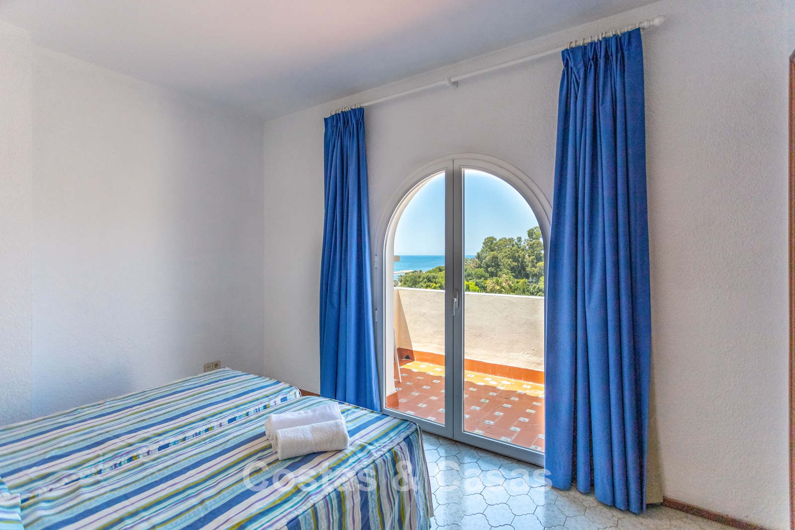Penthouse en duplex au 5e étage. Le complexe est conçu selon une architecture andalouse typique. Orientation sud-ouest. Magnifique vue panoramique sur la plage, le port de plaisance et le littoral. Ce projet de rénovation est une opportunité idéale pour créer une maison contemporaine ou investir dans un bien locatif très prisé. Une terrasse côté ouest est idéale pour profiter du soleil de l'après-midi et admirer la mer. 3 chambres, 3 salles de bain, dont 2 attenantes. L'étage supérieur est entièrement dédié à la suite parentale, avec sa propre salle de bain, un dressing et une terrasse privée offrant une vue imprenable. Place de parking intérieure.