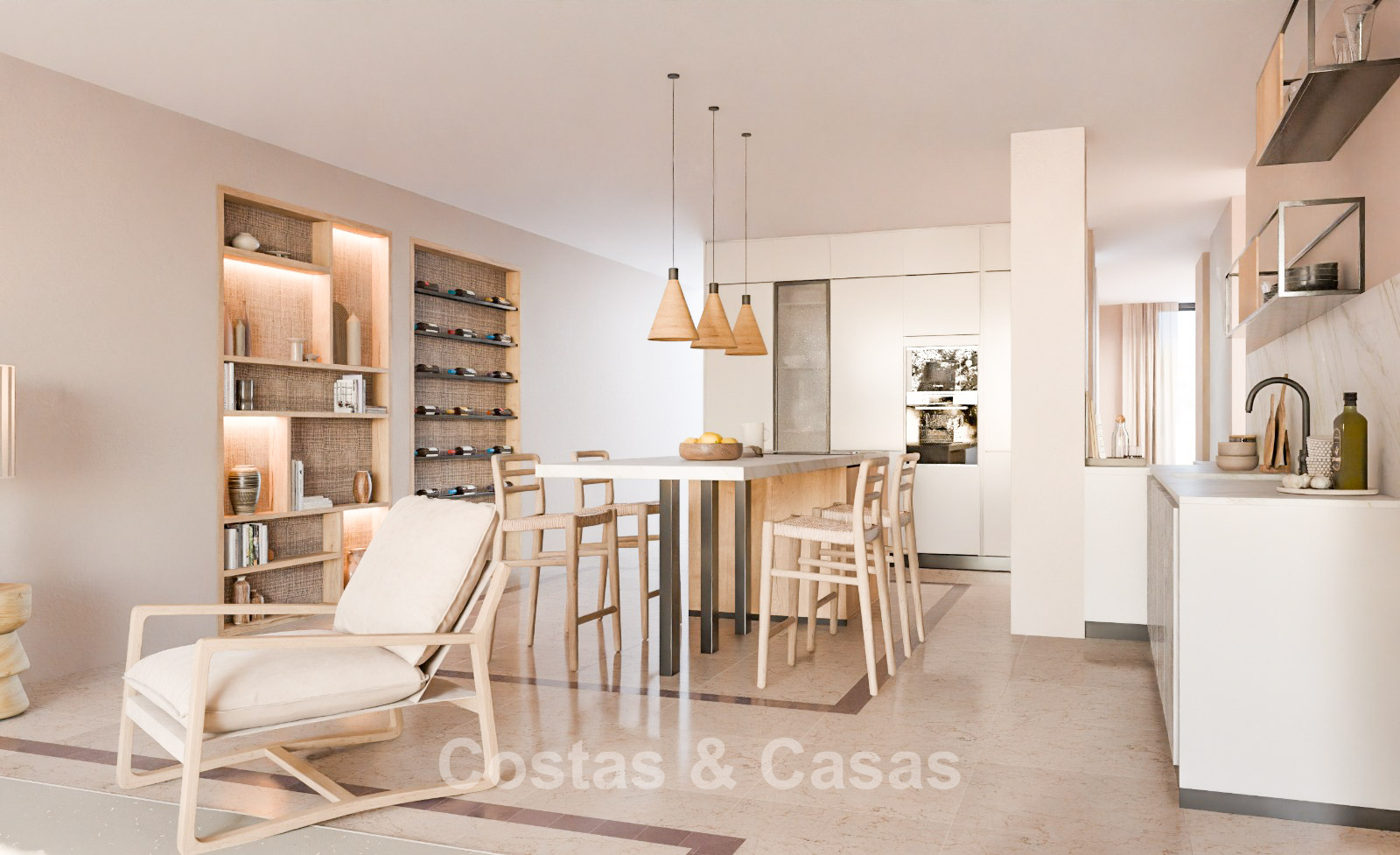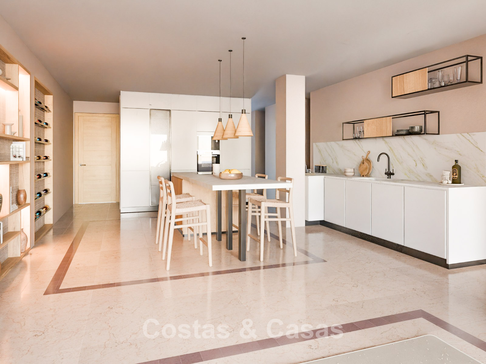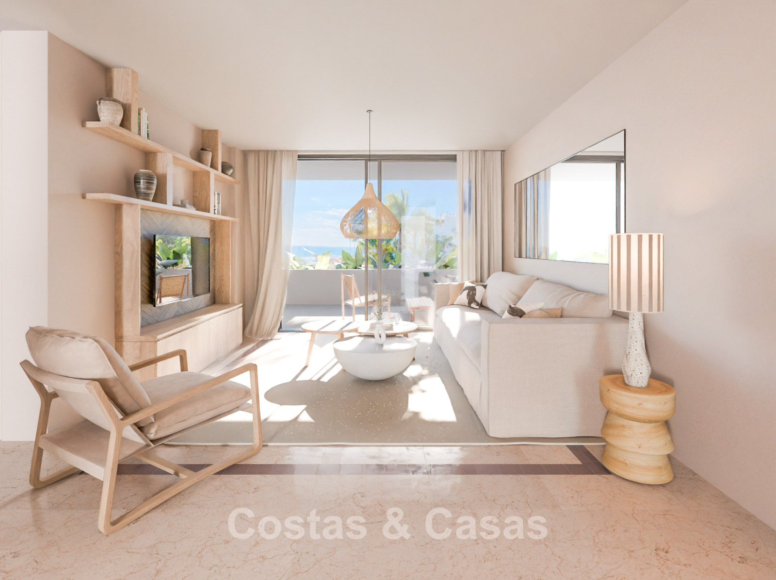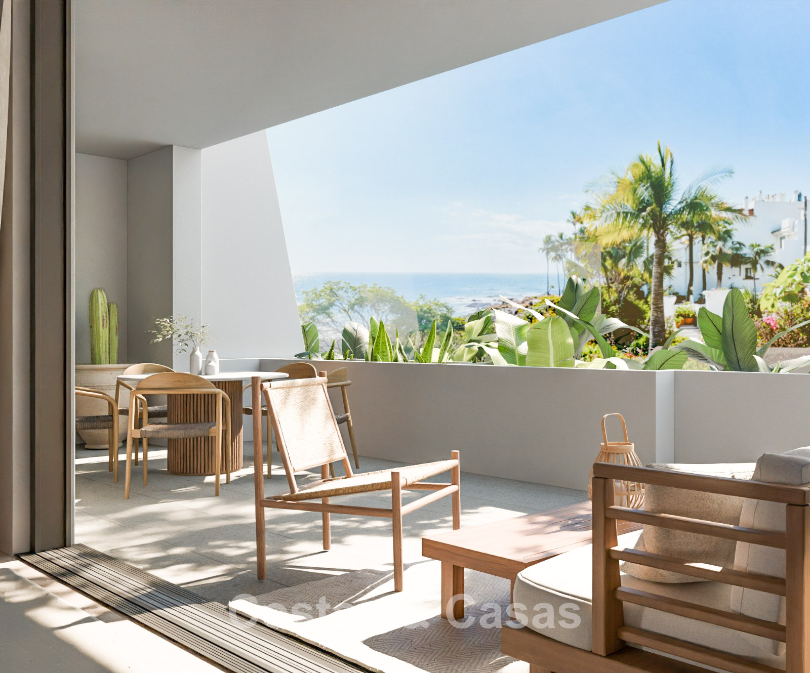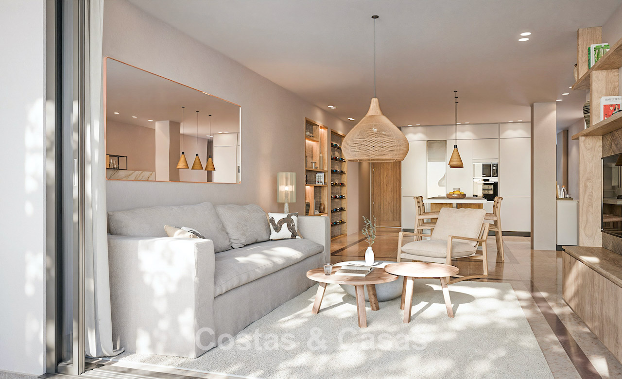 Appartement haut de gamme dans un complexe de style méditerranéen. Rénové avec des matériaux et des finitions de haute qualité. Orienté sud-ouest. Vue sur les jardins communs et la mer Méditerranée. Des baies vitrées coulissantes avec profilés encastrés dans le salon offrent une lumière naturelle abondante. Une terrasse couverte est équipée d'un coin repas extérieur et d'un espace détente. Agencement ouvert. Spacieux séjour avec salon TV. Cuisine sur mesure neuve, équipée d'électroménagers Siemens et d'un grand îlot central avec table à manger. 3 chambres, 2 salles de bains. La suite parentale dispose d'un dressing et d'une salle de bains attenante. Une buanderie pratique et entièrement équipée a été aménagée dans la toilette invitée. Sols en marbre de haute qualité. Garage souterrain.