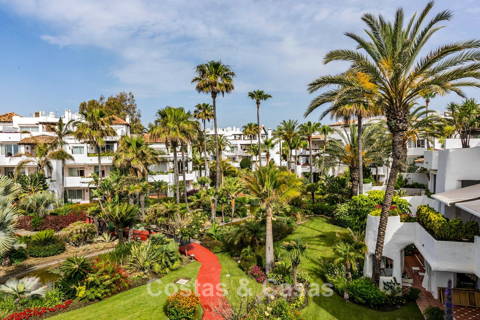 Ce complexe résidentiel exclusif est situé en légère hauteur, offrant une vue imprenable sur la mer Méditerranée, la plage et les jardins luxuriants qui l'entourent.