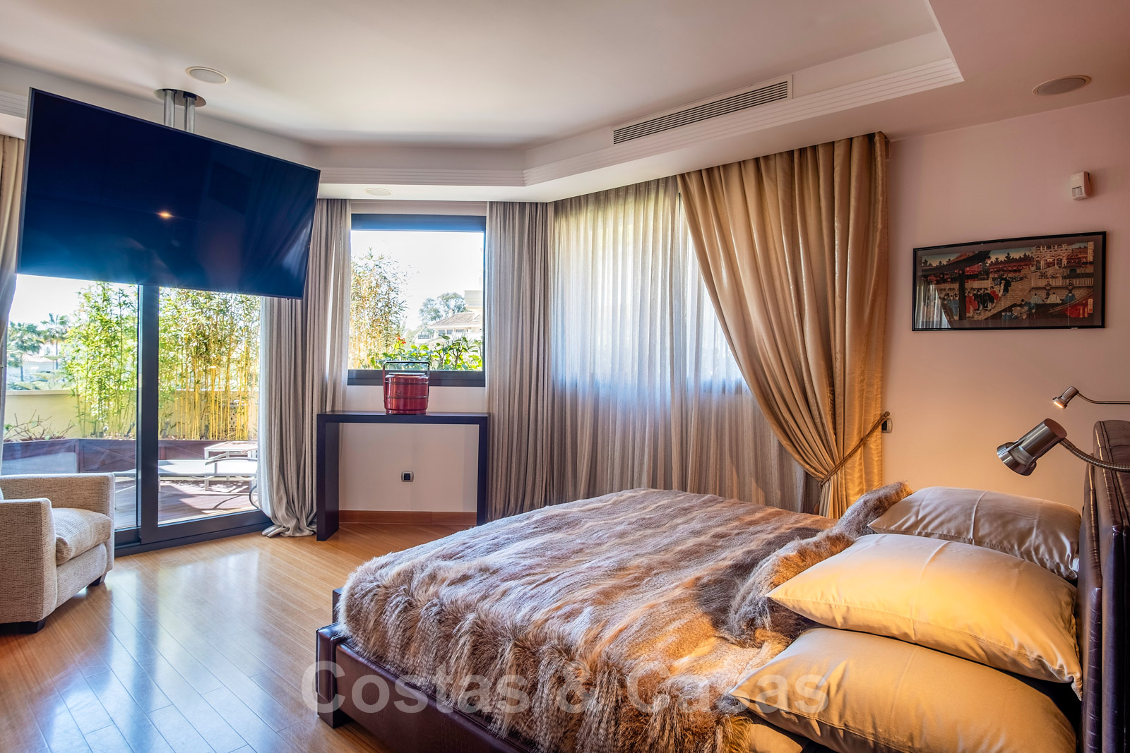 Appartement de luxe moderne et élégant, en première ligne de plage à vendre sur le nouveau Golden Mile, entre Marbella et Estepona