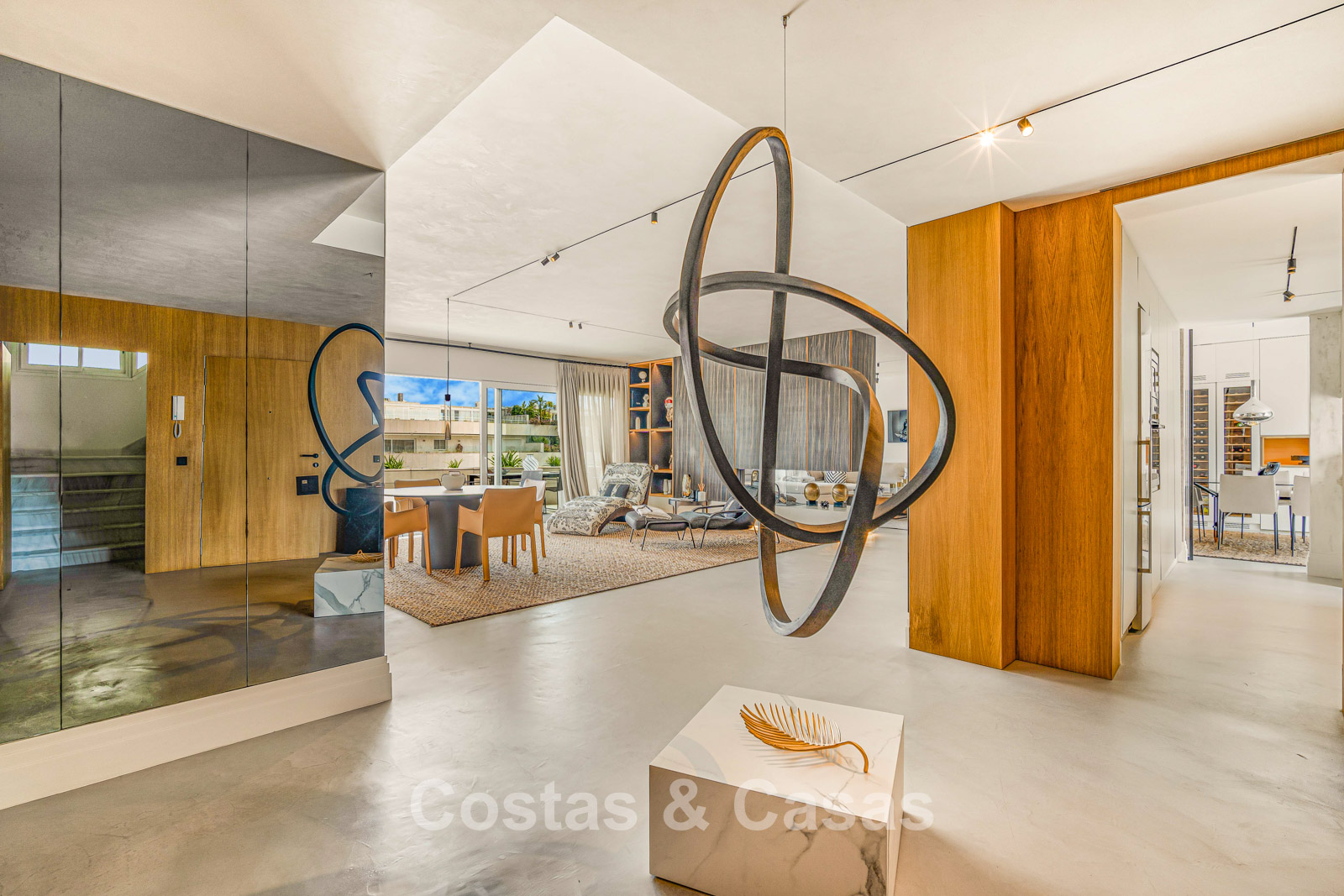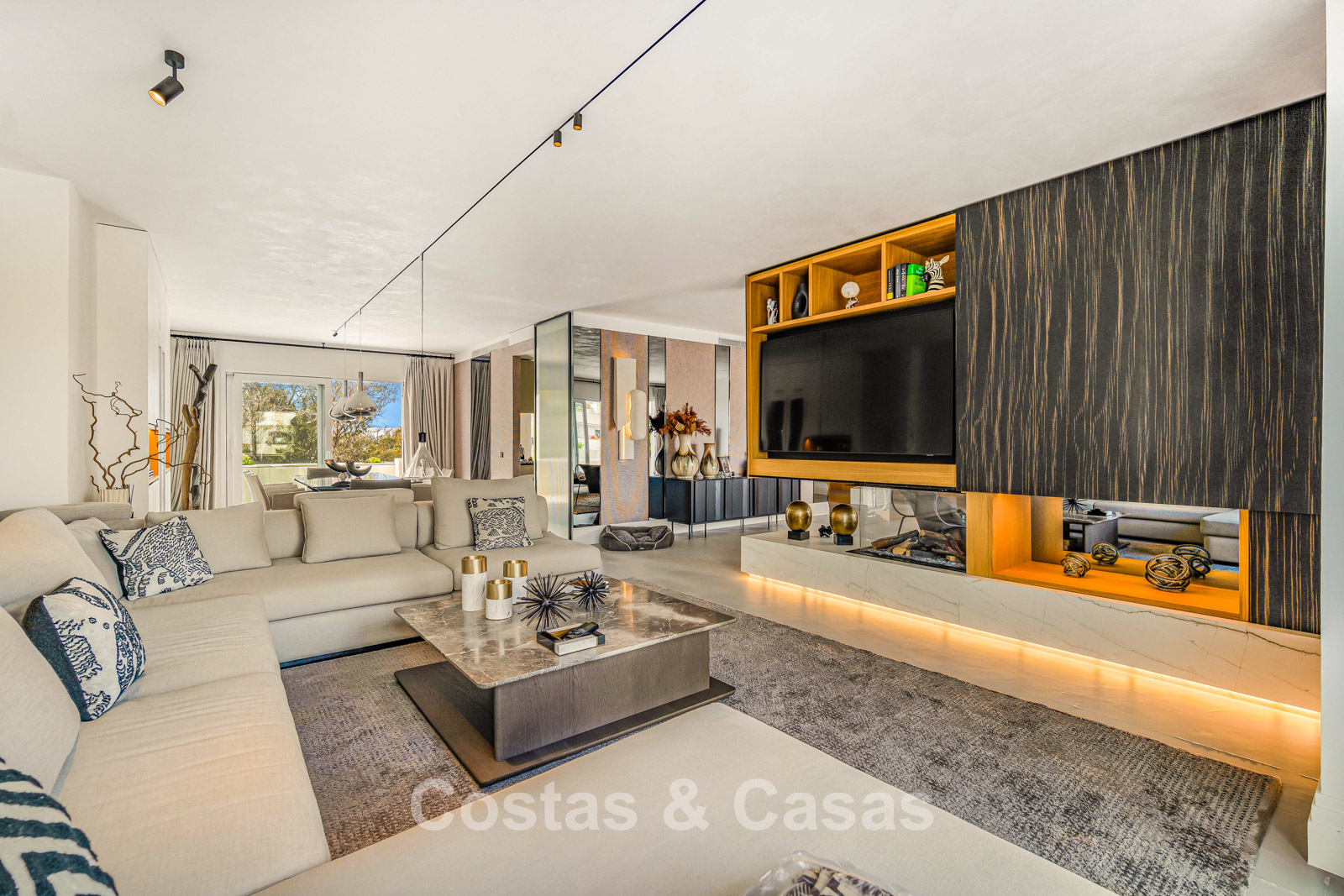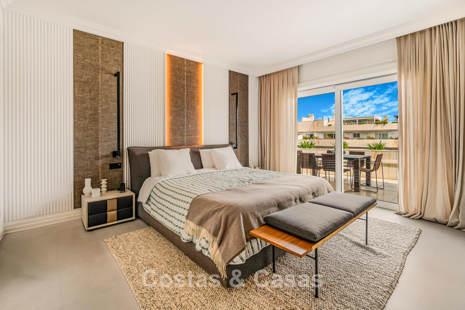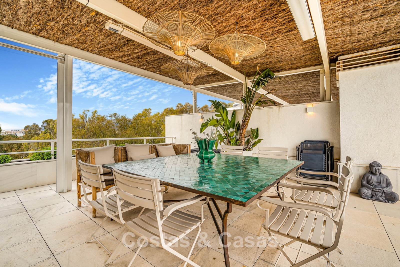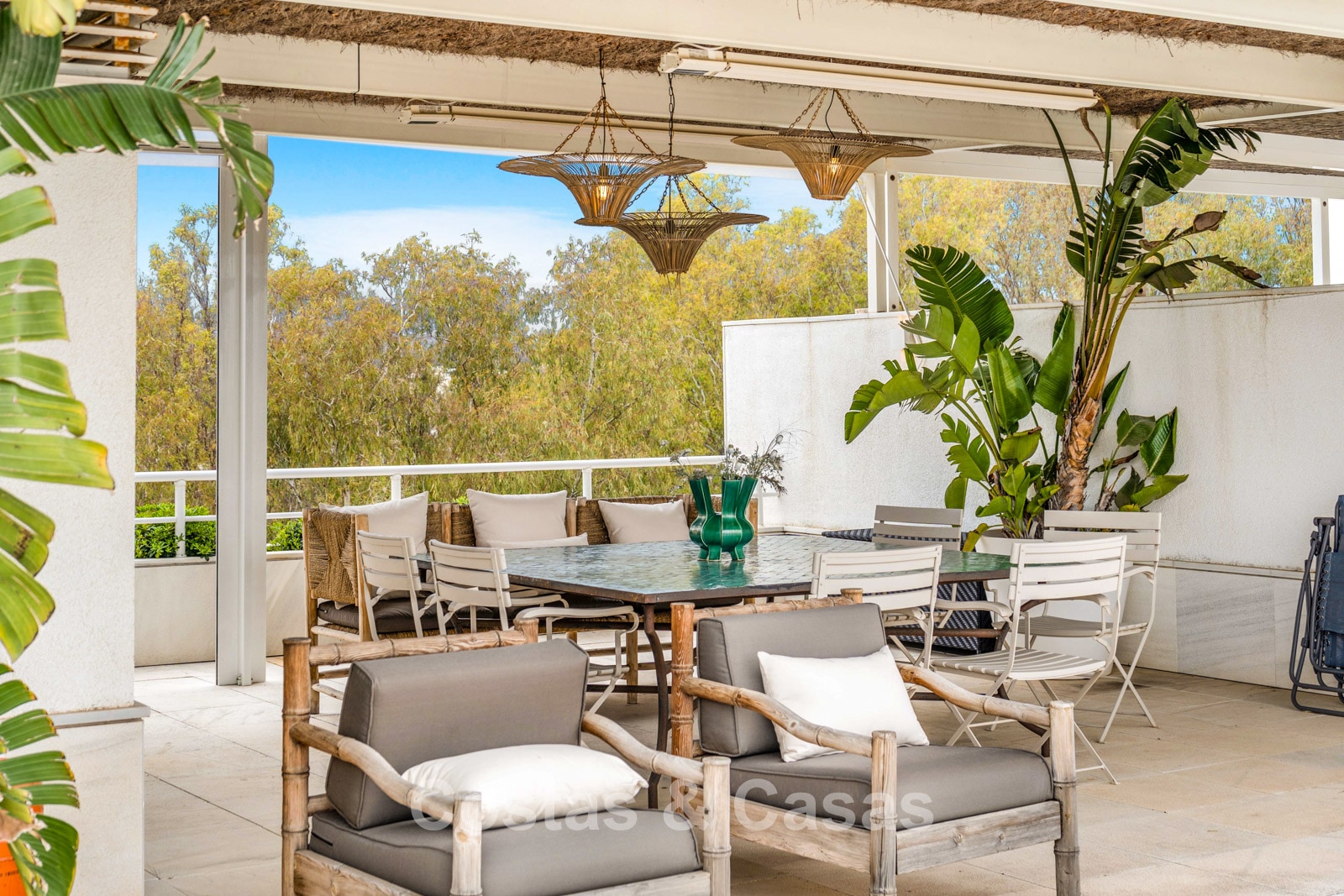 Penthouse en duplex. Entièrement rénové avec des matériaux de la meilleure qualité et des finitions luxueuses. Accessible par un ascenseur privé. Orientation sud-est. De vastes terrasses offrent beaucoup d'espace supplémentaire. Sur le solarium se trouvent une piscine chauffée et un coin lounge, avec vue panoramique sur les environs. Sur le solarium, il y a une partie qui peut être entièrement fermée par des rideaux de verre. Vous profiterez d'une vue panoramique sur les environs avec l'emblématique montagne La Concha et la mer Méditerranée en arrière-plan. L'intérieur respire une élégance intemporelle, avec des matériaux raffinés, des détails subtils et un équilibre harmonieux entre luxe et confort. De hautes fenêtres coulissantes se connectent parfaitement aux espaces extérieurs et permettent à la lumière naturelle de circuler en abondance. Espace de vie ouvert et confortable avec salon TV et cheminée. Cuisine entièrement équipée avec de nombreux rangements et un bar à petit-déjeuner. Espace repas intégré avec un mur à vin élégant. 4 chambres chacune avec sa salle de bain. Toutes les chambres s'ouvrent harmonieusement sur les vastes terrasses. La chambre principale bénéficie d'une salle de bain luxueuse avec douche à l'italienne. Sols carrelés grand format. Espace de rangement spacieux. Garage intérieur pour 2 voitures.