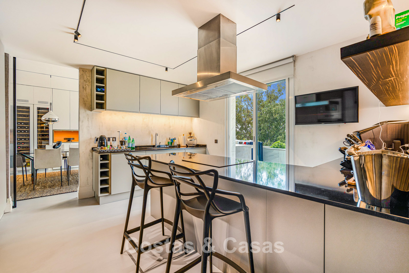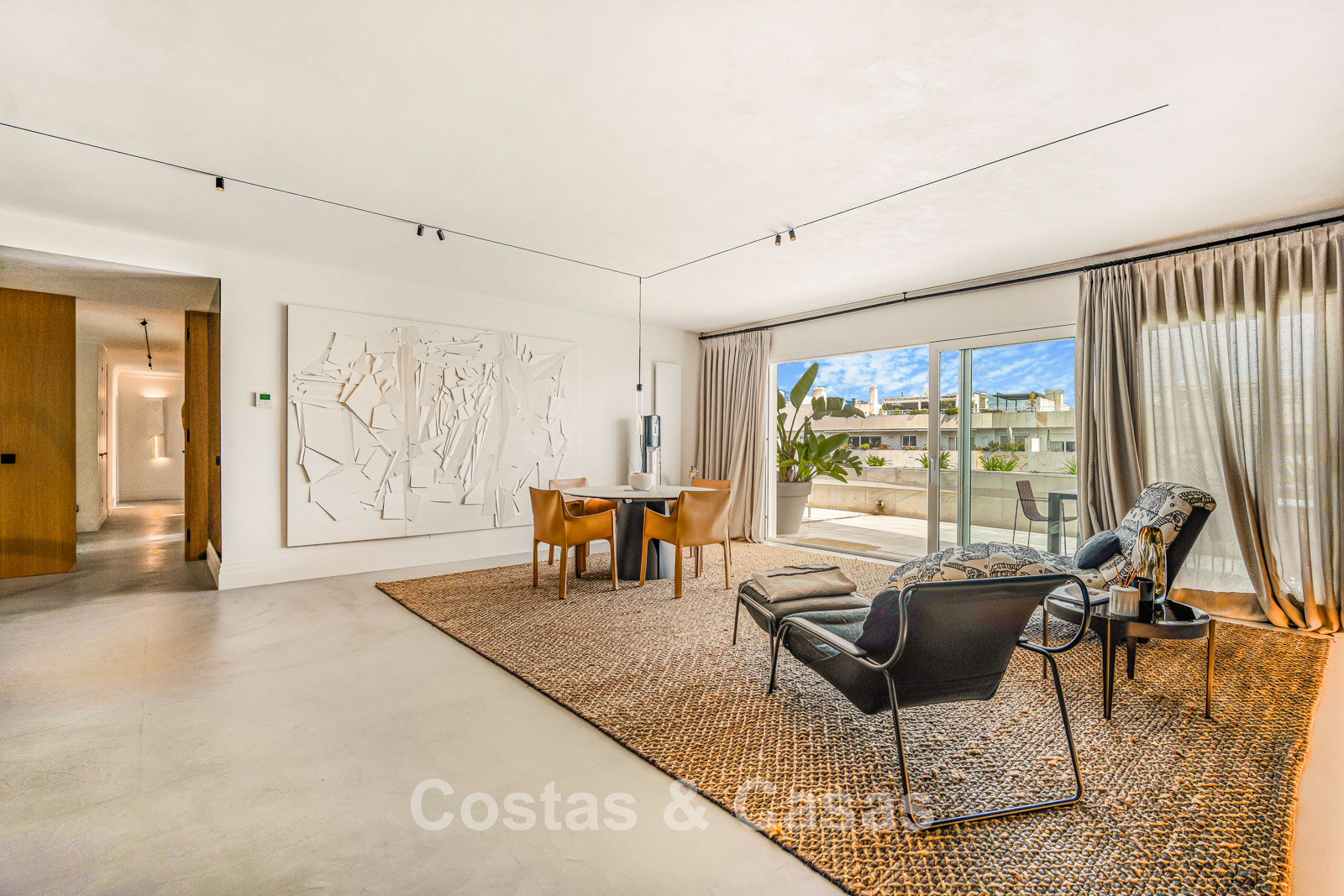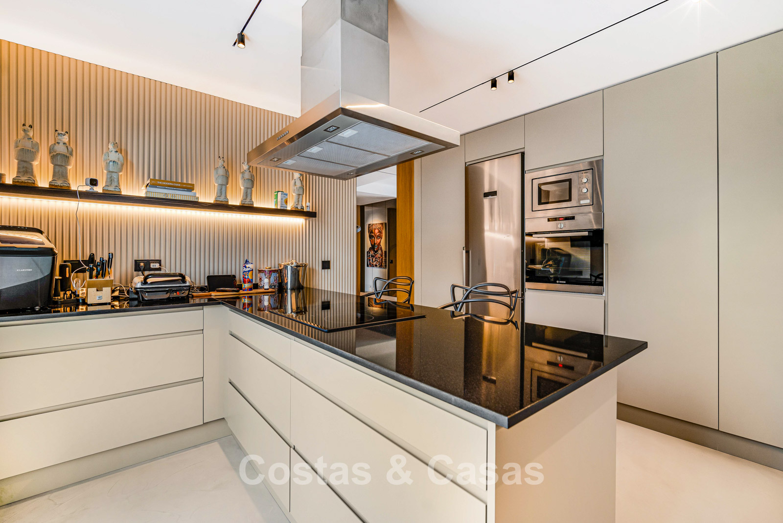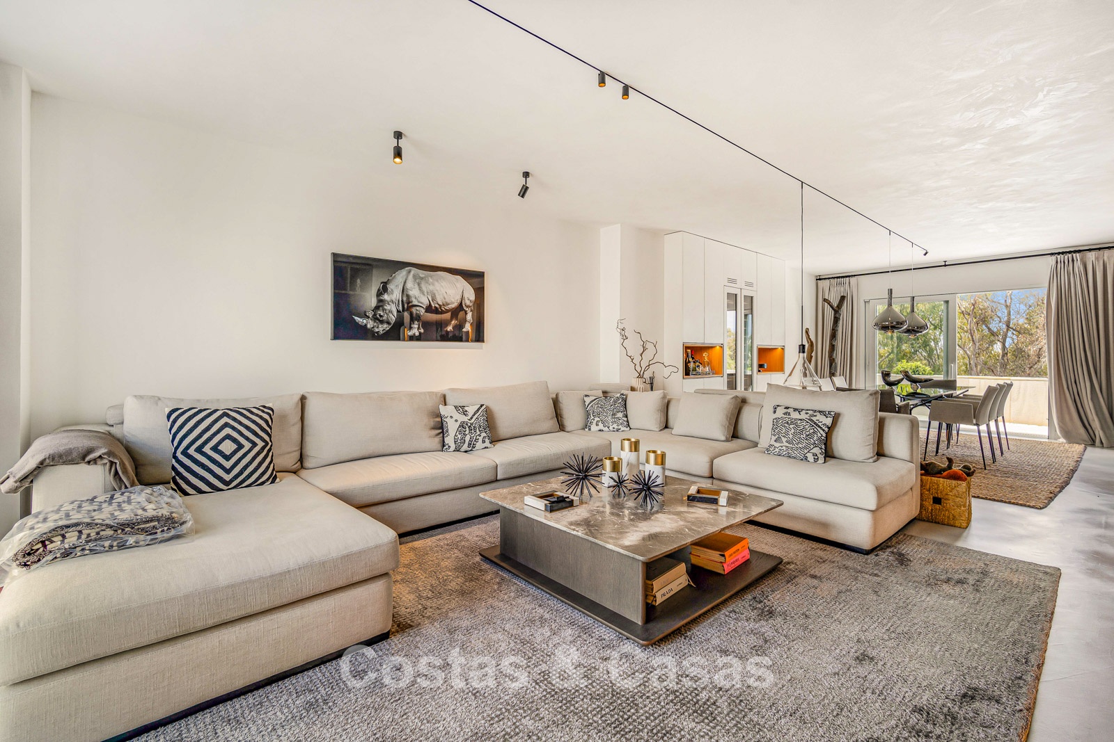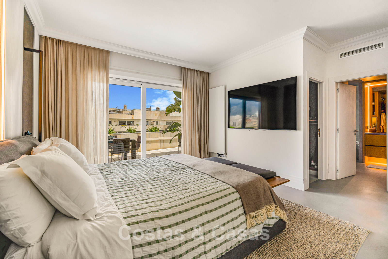 Penthouse en duplex. Entièrement rénové avec des matériaux de la meilleure qualité et des finitions luxueuses. Accessible par un ascenseur privé. Orientation sud-est. De vastes terrasses offrent beaucoup d'espace supplémentaire. Sur le solarium se trouvent une piscine chauffée et un coin lounge, avec vue panoramique sur les environs. Sur le solarium, il y a une partie qui peut être entièrement fermée par des rideaux de verre. Vous profiterez d'une vue panoramique sur les environs avec l'emblématique montagne La Concha et la mer Méditerranée en arrière-plan. L'intérieur respire une élégance intemporelle, avec des matériaux raffinés, des détails subtils et un équilibre harmonieux entre luxe et confort. De hautes fenêtres coulissantes se connectent parfaitement aux espaces extérieurs et permettent à la lumière naturelle de circuler en abondance. Espace de vie ouvert et confortable avec salon TV et cheminée. Cuisine entièrement équipée avec de nombreux rangements et un bar à petit-déjeuner. Espace repas intégré avec un mur à vin élégant. 4 chambres chacune avec sa salle de bain. Toutes les chambres s'ouvrent harmonieusement sur les vastes terrasses. La chambre principale bénéficie d'une salle de bain luxueuse avec douche à l'italienne. Sols carrelés grand format. Espace de rangement spacieux. Garage intérieur pour 2 voitures.