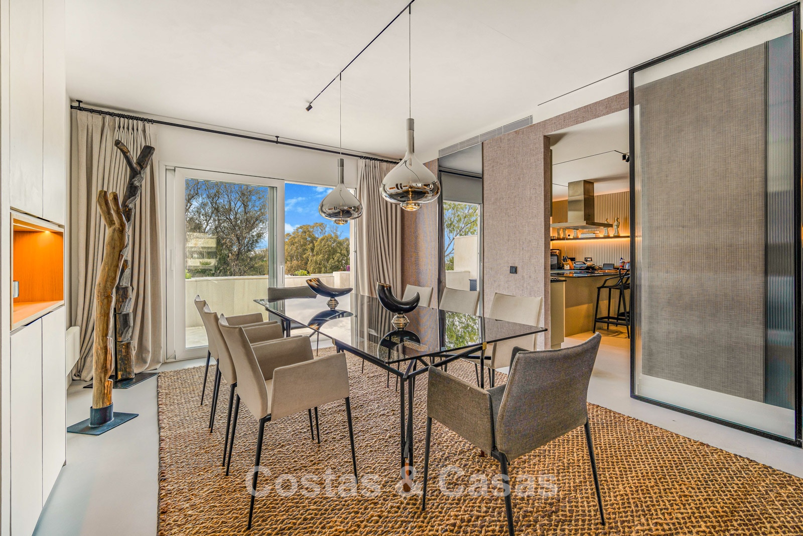 Autres caractéristiques : Climatisation pour le refroidissement et le chauffage. Cheminée avancée. Armoires intégrées. Système domotique. Éclairage LED. Auvents sur la terrasse.
