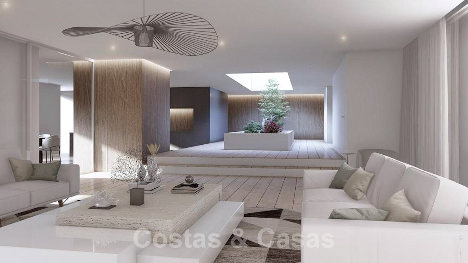 Atrium avec jardin intérieur générant beaucoup de lumière, au milieu de l'appartement.