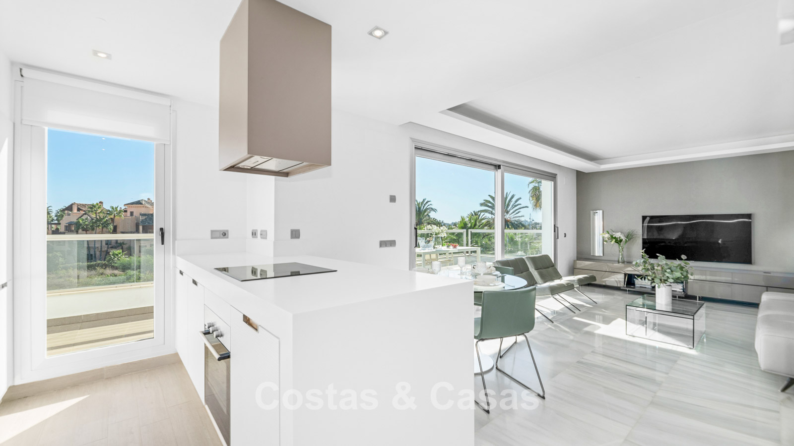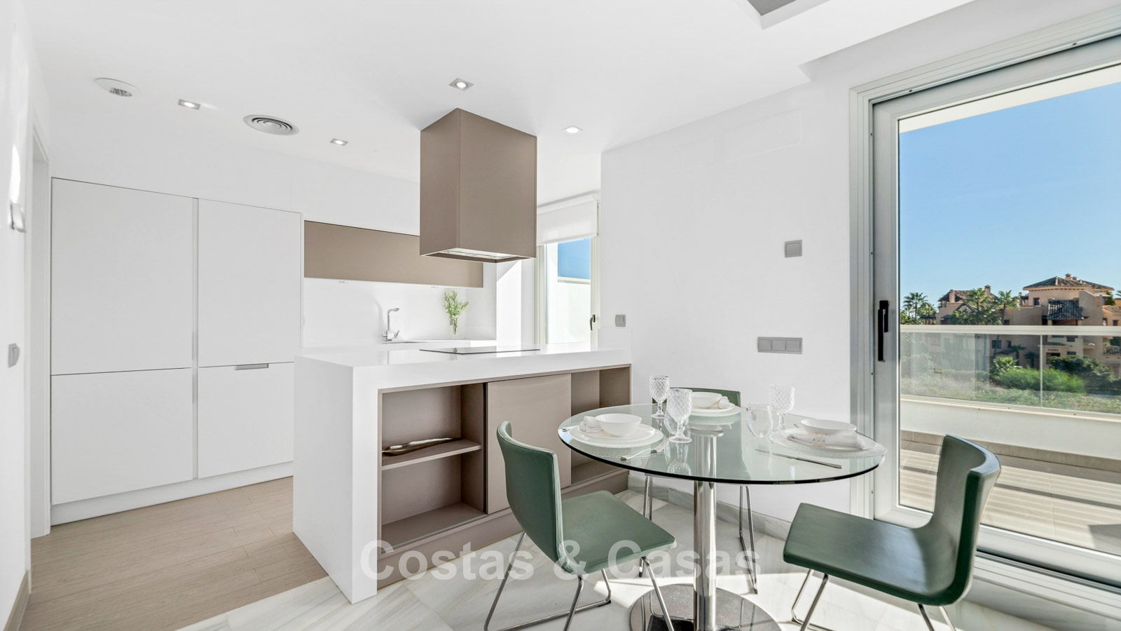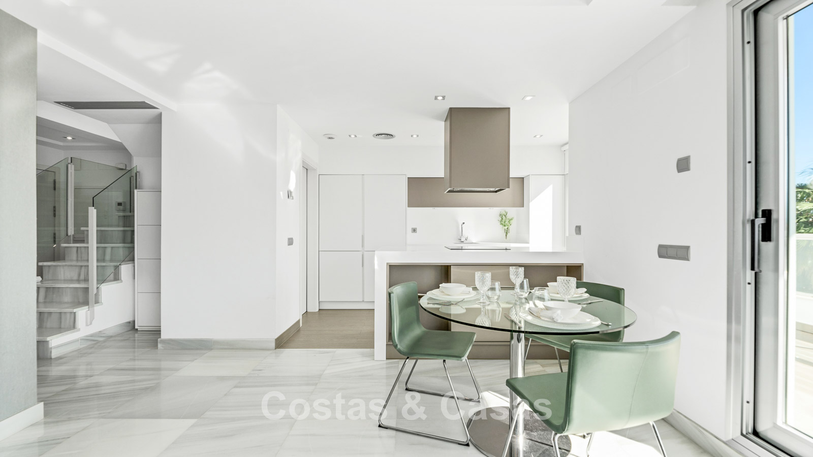 Climatisation. Chauffage au sol dans toute la maison. Chauffage central. Sols en marbre de qualité. Armoires encastrées.