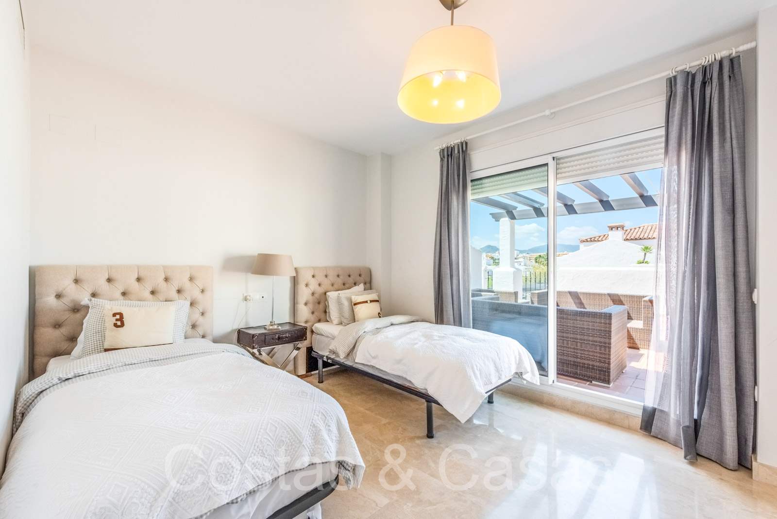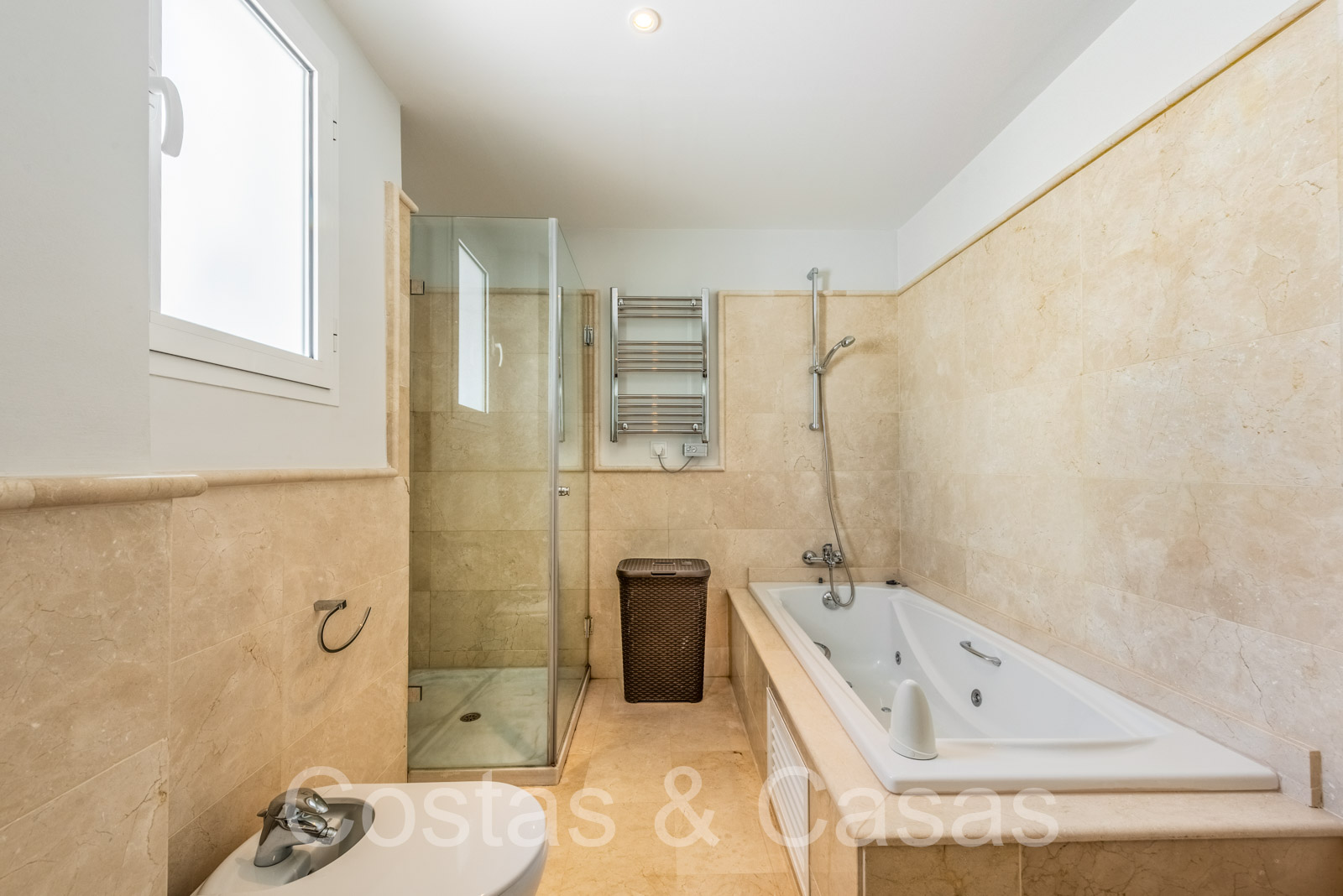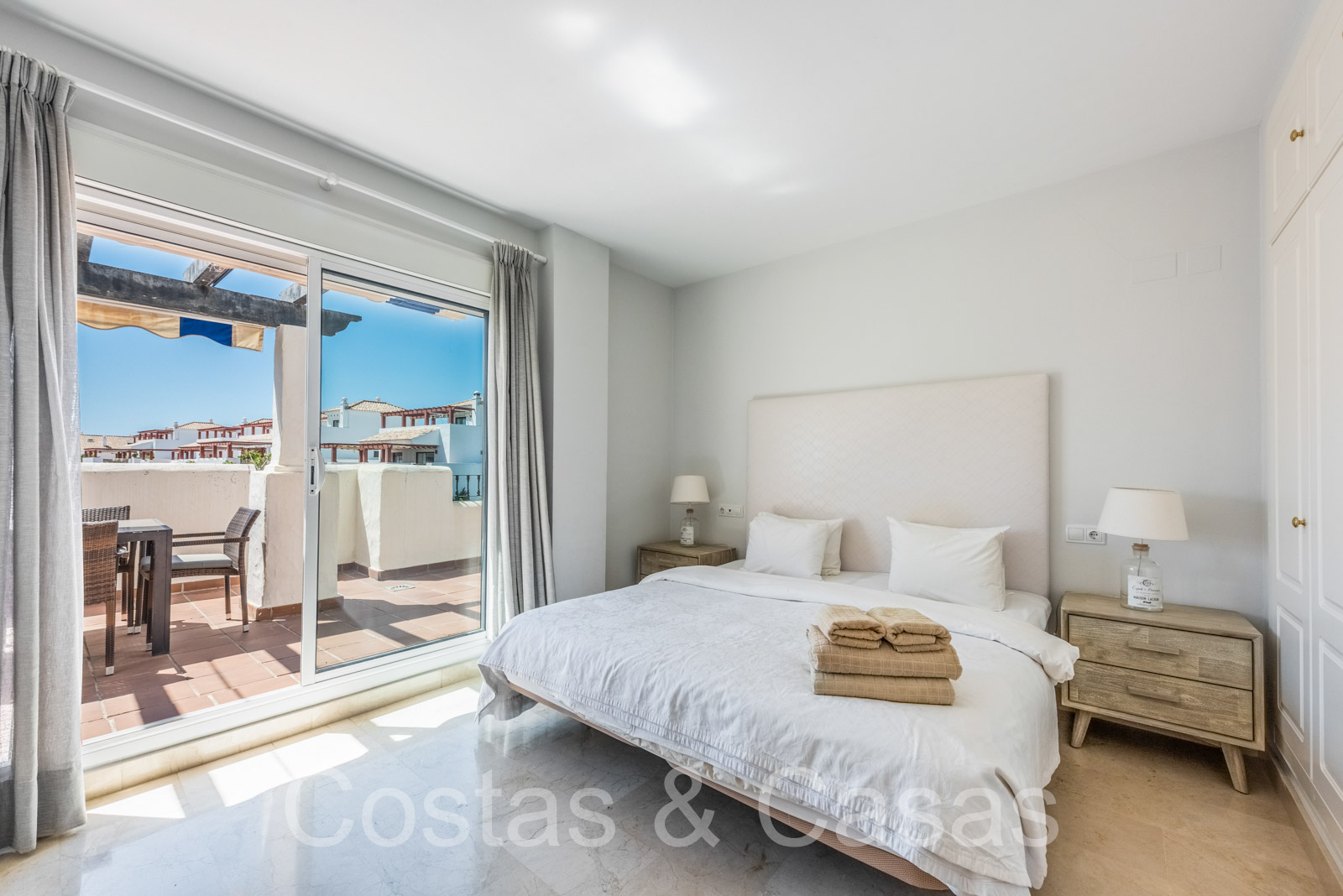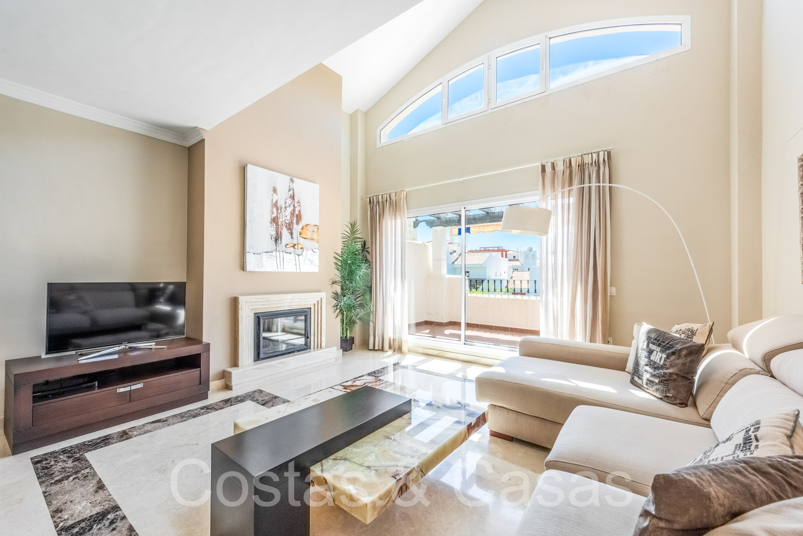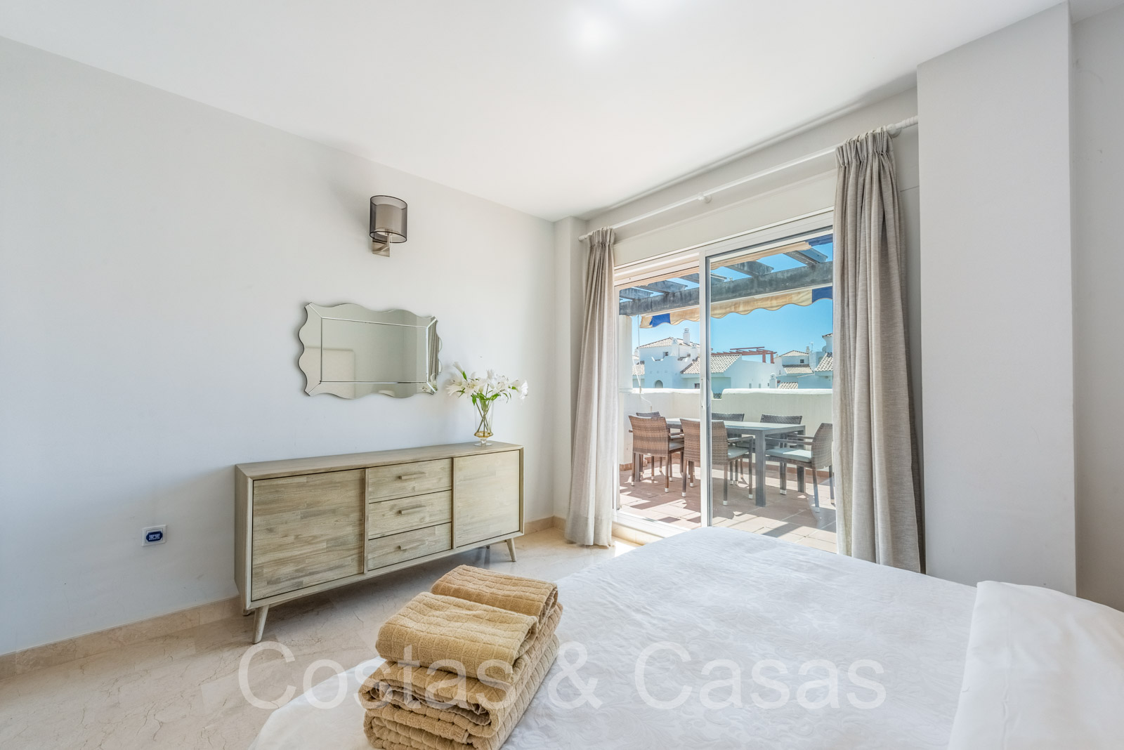 Penthouse en duplex spacieux dans un complexe fermé construit avec une architecture andalouse. Utiliser des matériaux de qualité. Face à l'ouest. Terrasse pergola adjacente, qui peut être couverte par un auvent si on le souhaite. Un escalier extérieur monte à un vaste solarium, équipé d'un salon et d'un espace barbecue. Depuis le solarium, vous pourrez profiter d'une vue panoramique sur les environs, sur le sommet de La Concha et sur la mer Méditerranée. Salon spacieux avec un plafond partiellement à double hauteur, qui offre une luminosité abondante. Coin repas intégré. Cuisine séparée entièrement équipée avec coin repas et buanderie adjacente. 2 chambres, 2 salles de bains. Sols en marbre. Débarras. Parking souterrain double inclus.