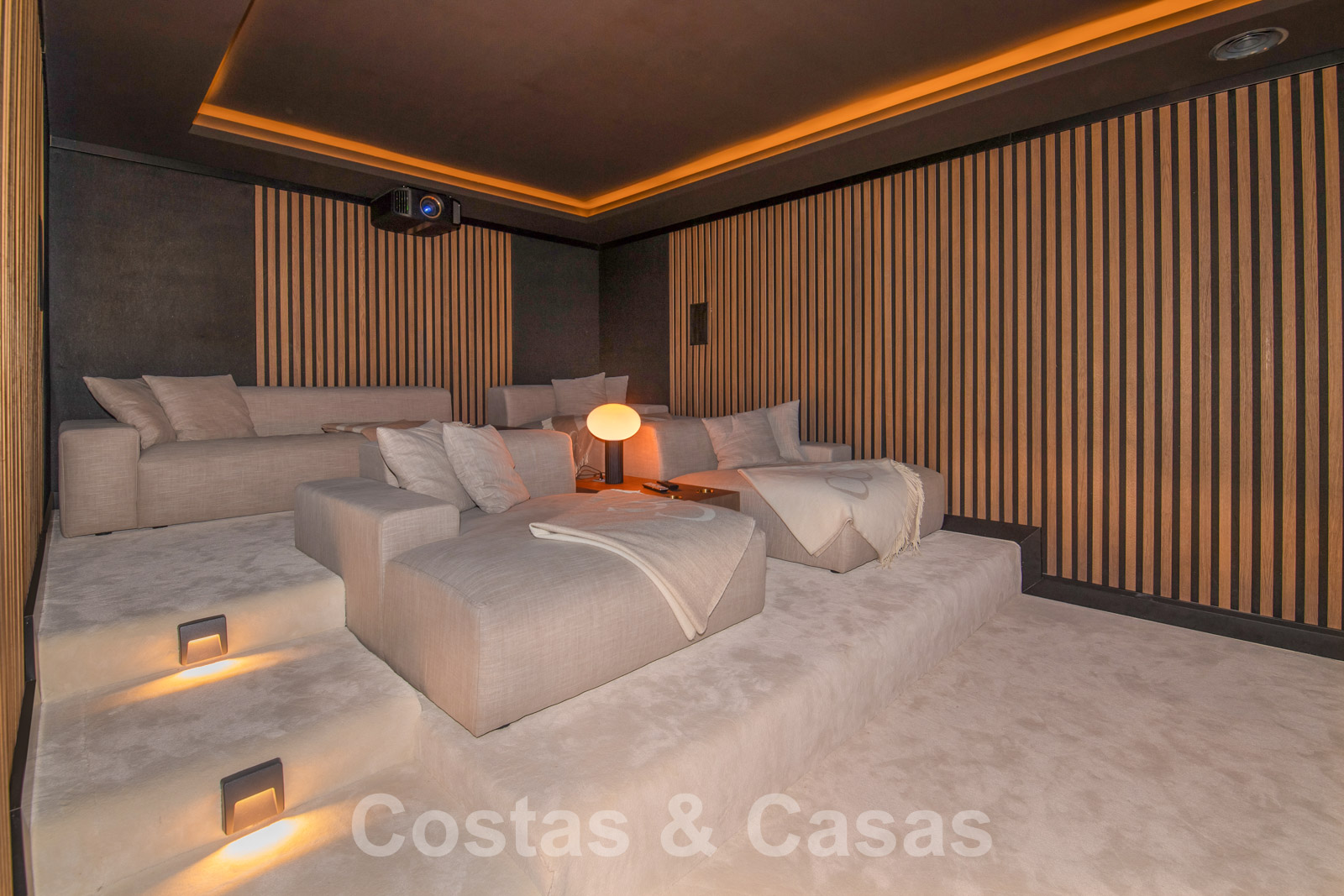 Villa individuelle avec un style contemporain, entourée des espaces communs de la communauté. Une spacieuse terrasse couverte s'ouvre sur le jardin privé, entièrement clos par des balustrades en verre. Un solarium avec vue panoramique, vue partielle sur la mer, une piscine privée, des possibilités de lounge et un espace "repas en plein air". Construit avec des matériaux de haute qualité. Des fenêtres coulissantes à hauteur de pièce avec des profils encastrés créent un intérieur lumineux. L'espace de vie spacieux et ouvert comprend un salon, une salle à manger et une cuisine entièrement équipée. Au total, il y a 5 chambres et 3 salles de bains. La chambre principale dispose d'une salle de bains attenante, d'un dressing et d'une terrasse privée. L’étage inférieur comprend une salle de sport entièrement équipée, un jacuzzi, un sauna, un home cinéma et une salle polyvalente pouvant servir de chambre à coucher. Sols en marbre et parquet. 2 abris pour voitures.