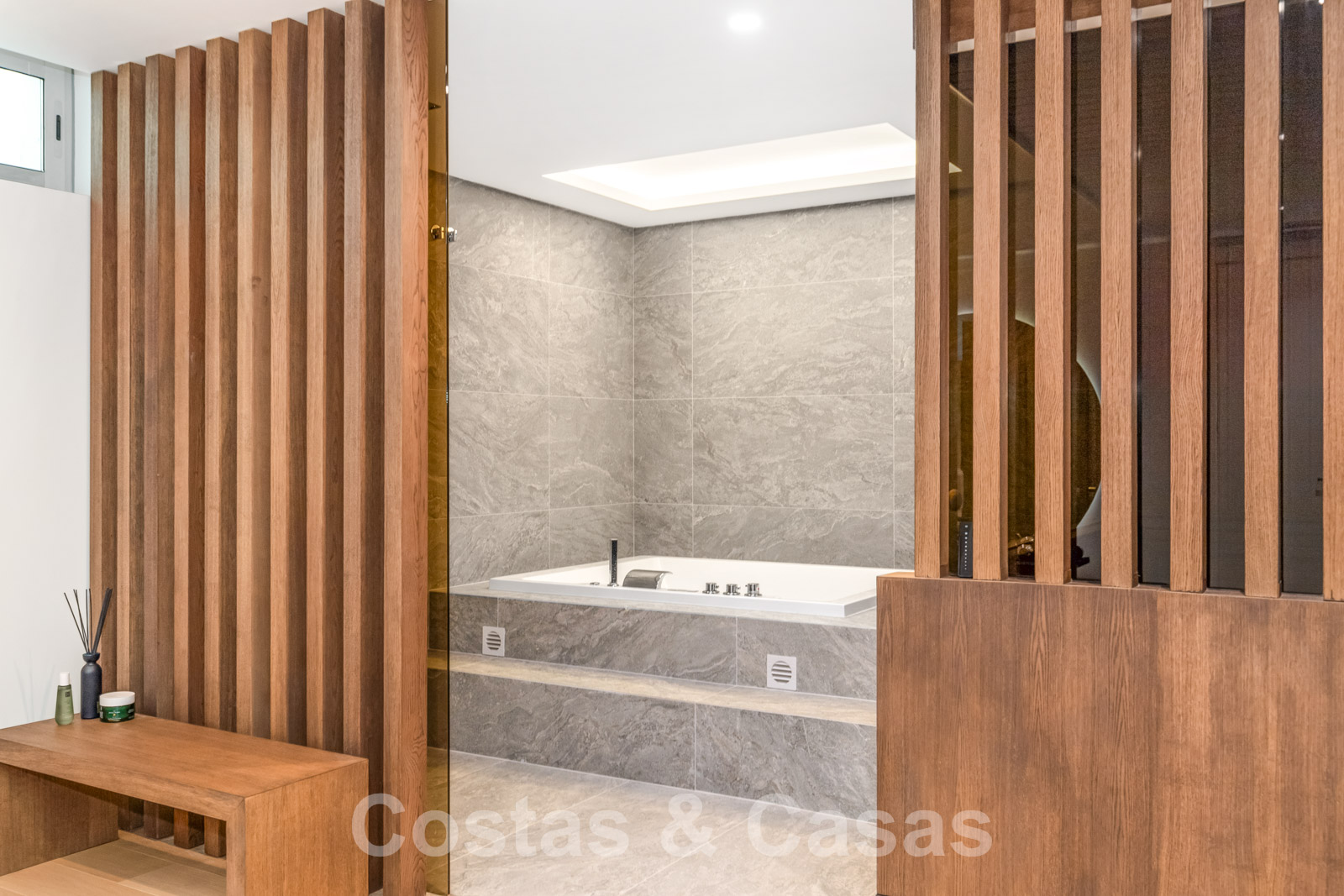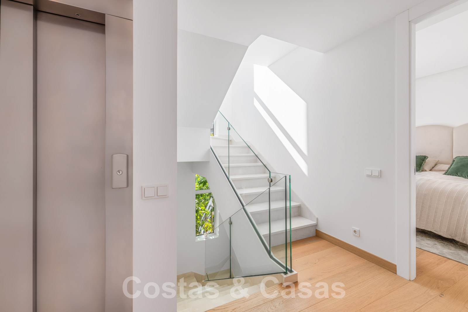 Ascenseur privé. Balustrades en verre. Climatisation pour le refroidissement et le chauffage. Armoires encastrées. Appareils de cuisine Neff.