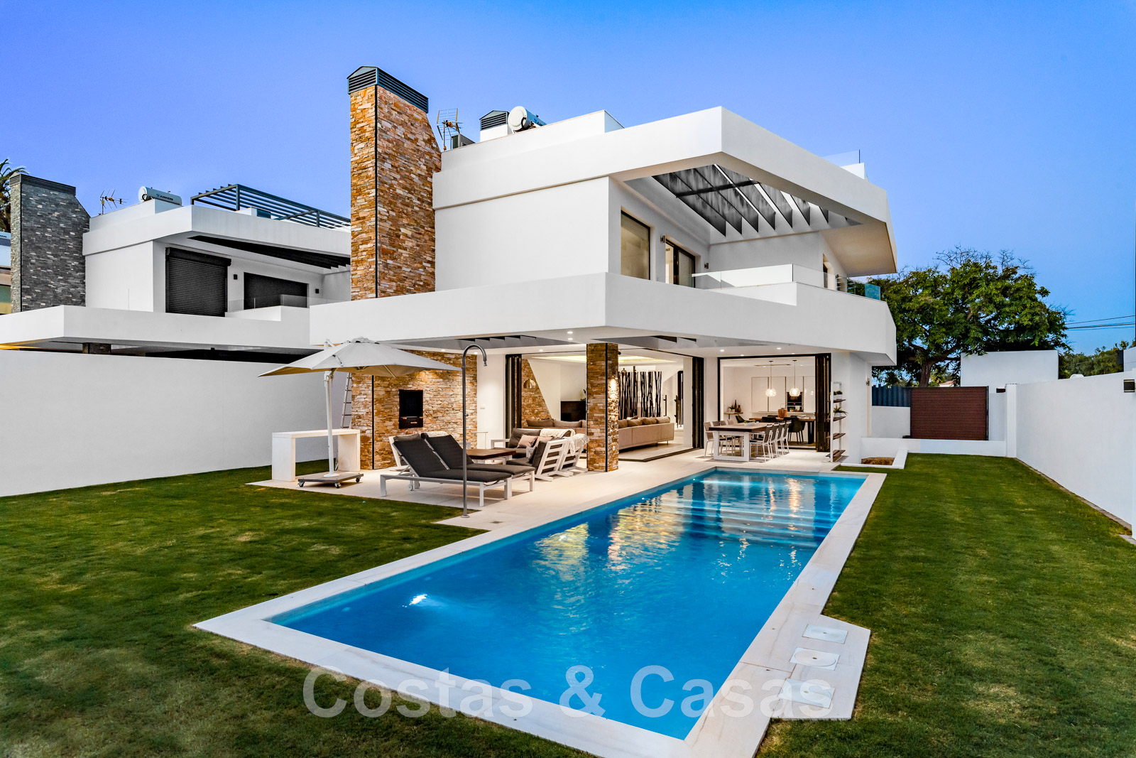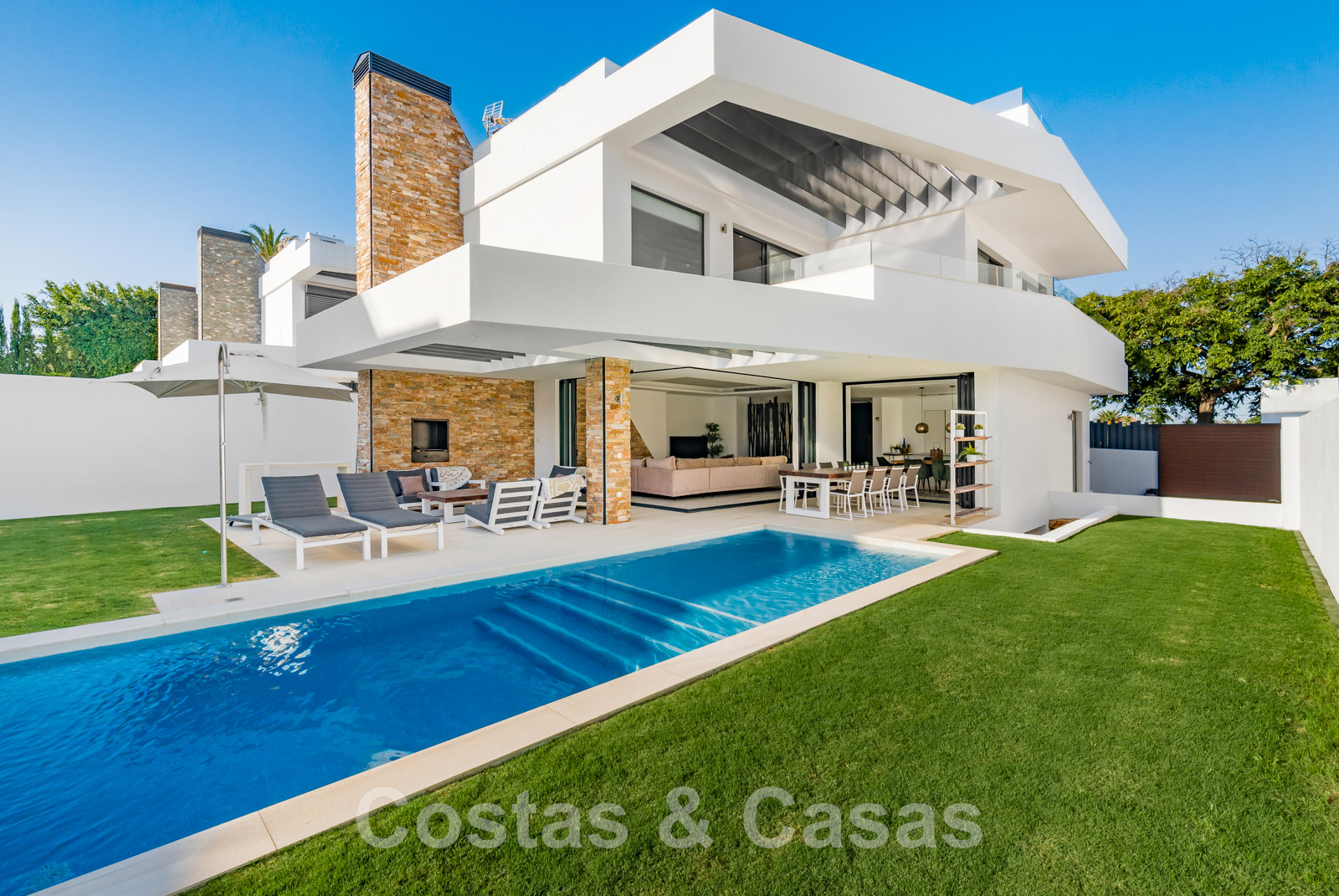 Villa de luxe et de prestige à vendre, de style contemporain, à distance de marche de la plage et du centre de San Pedro, Marbella