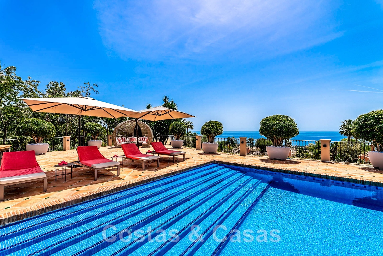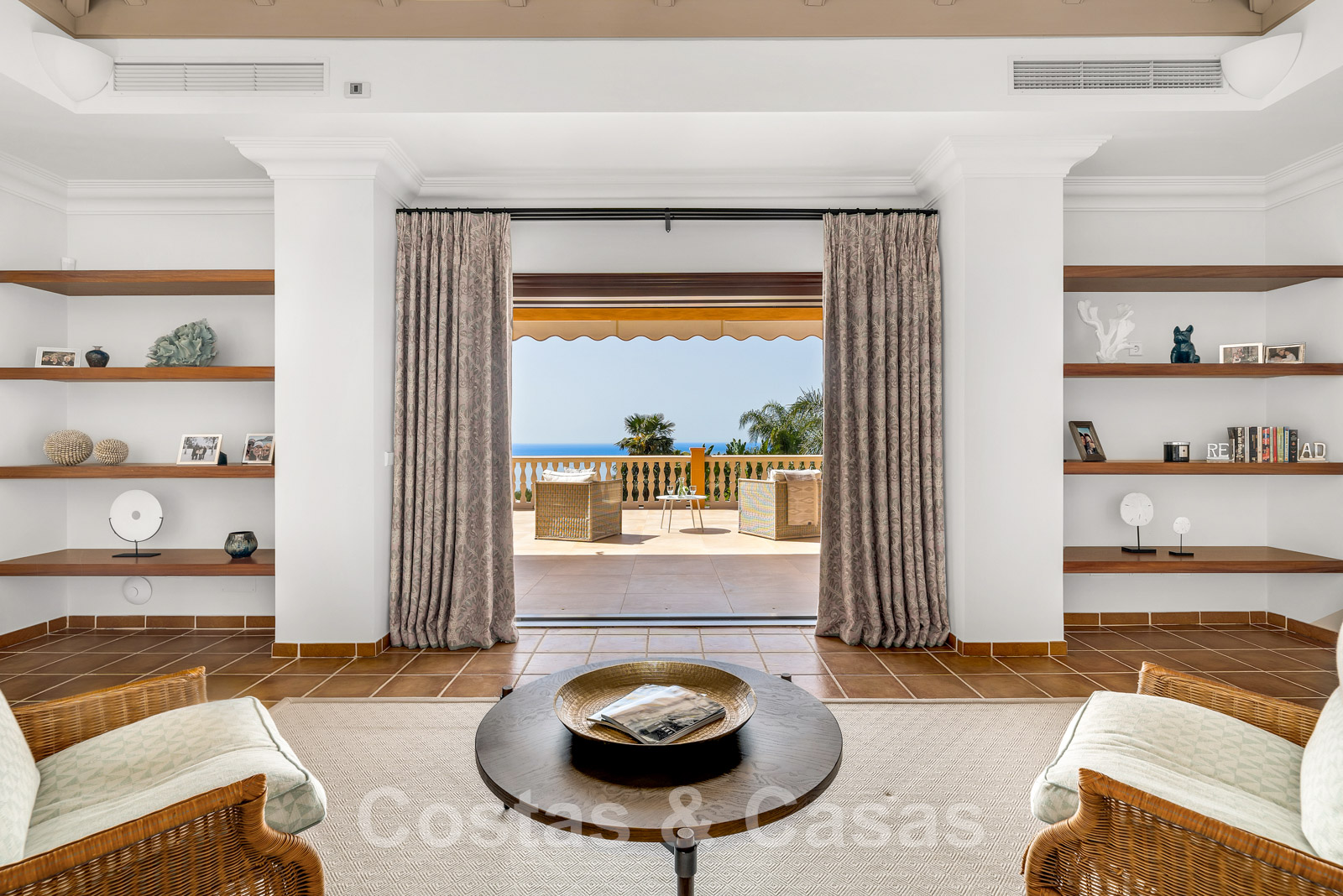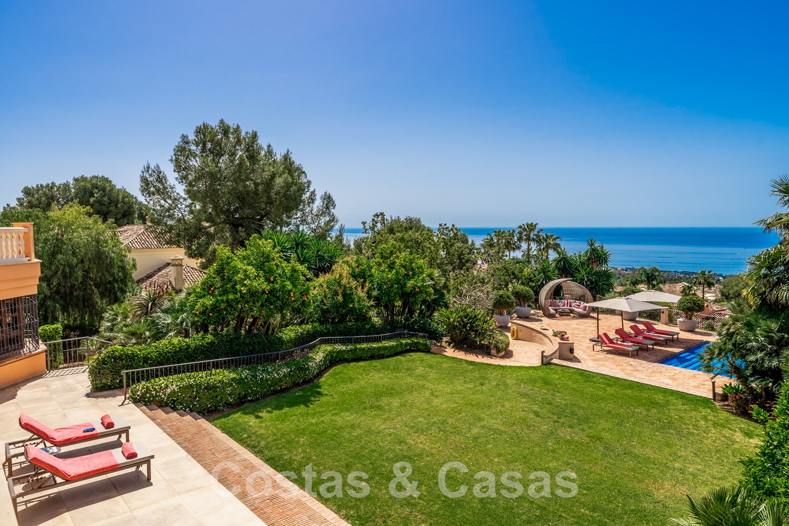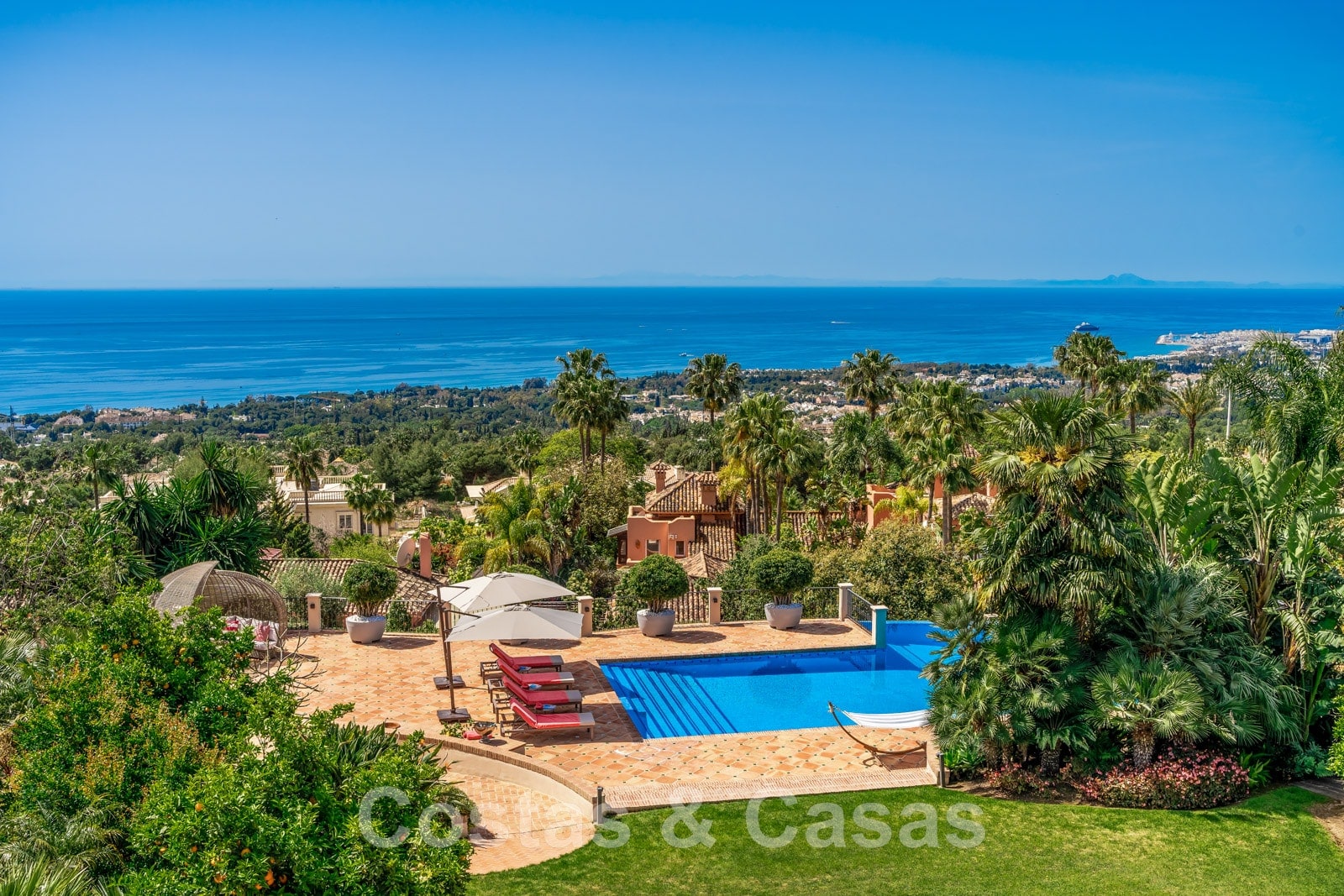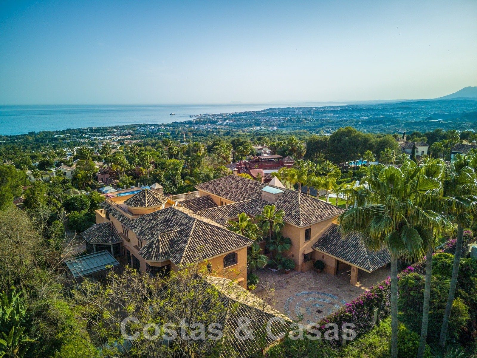 Phénoménale villa traditionnelle de luxe à vendre sur une grande parcelle avec vue panoramique sur la mer, située à Sierra Blanca sur le Golden Mile de Marbella