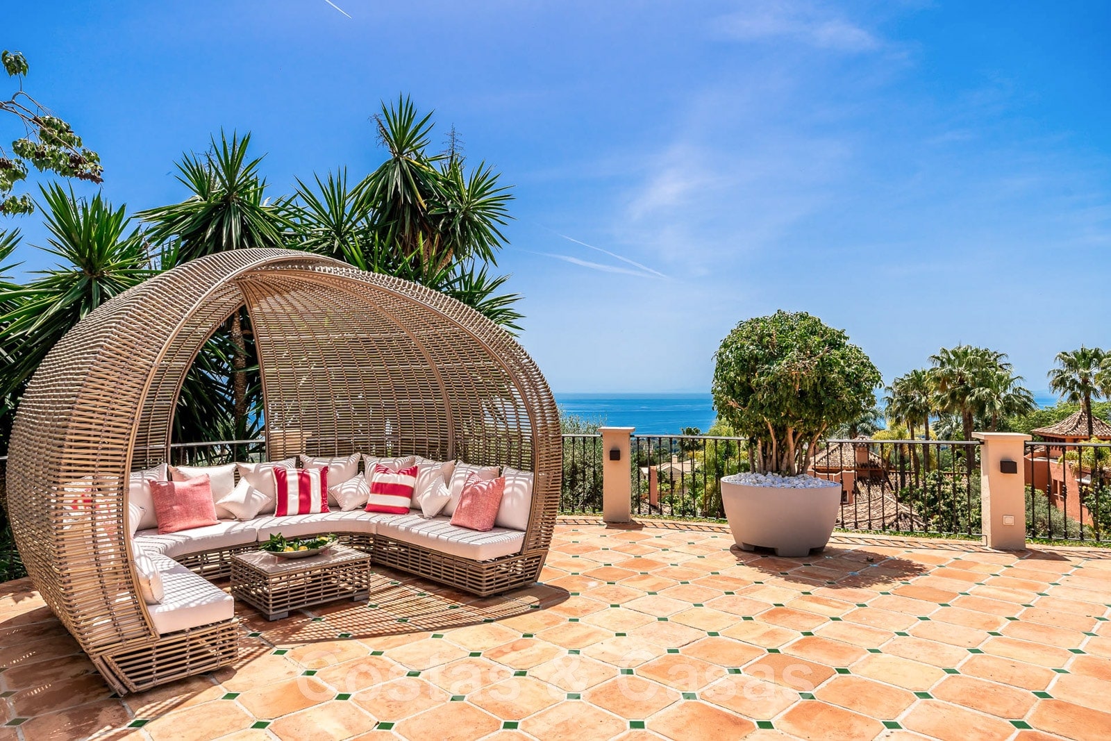 Des terrasses spacieuses, ouvertes et couvertes, avec différents espaces de détente.