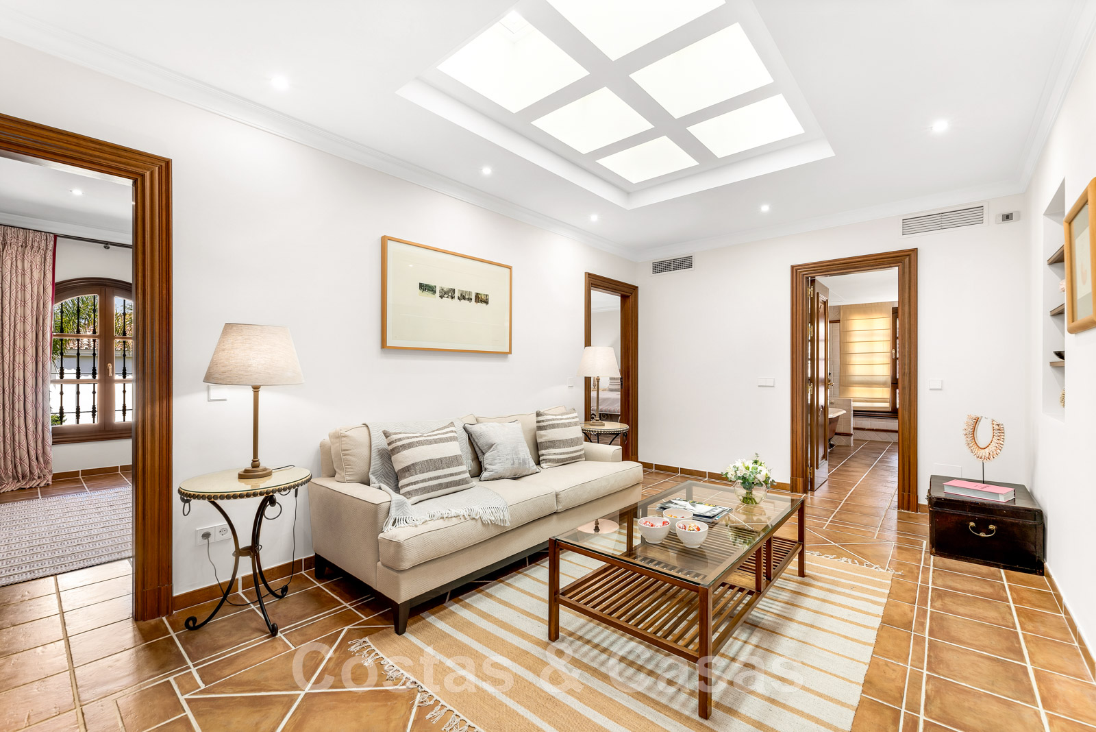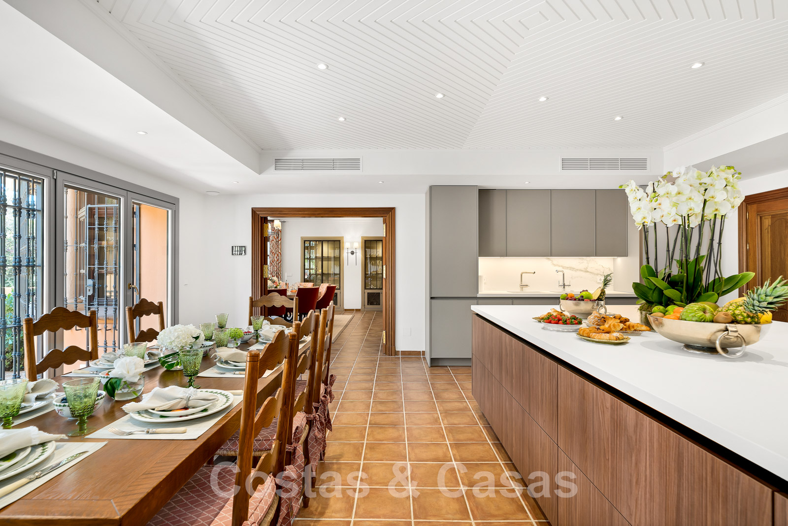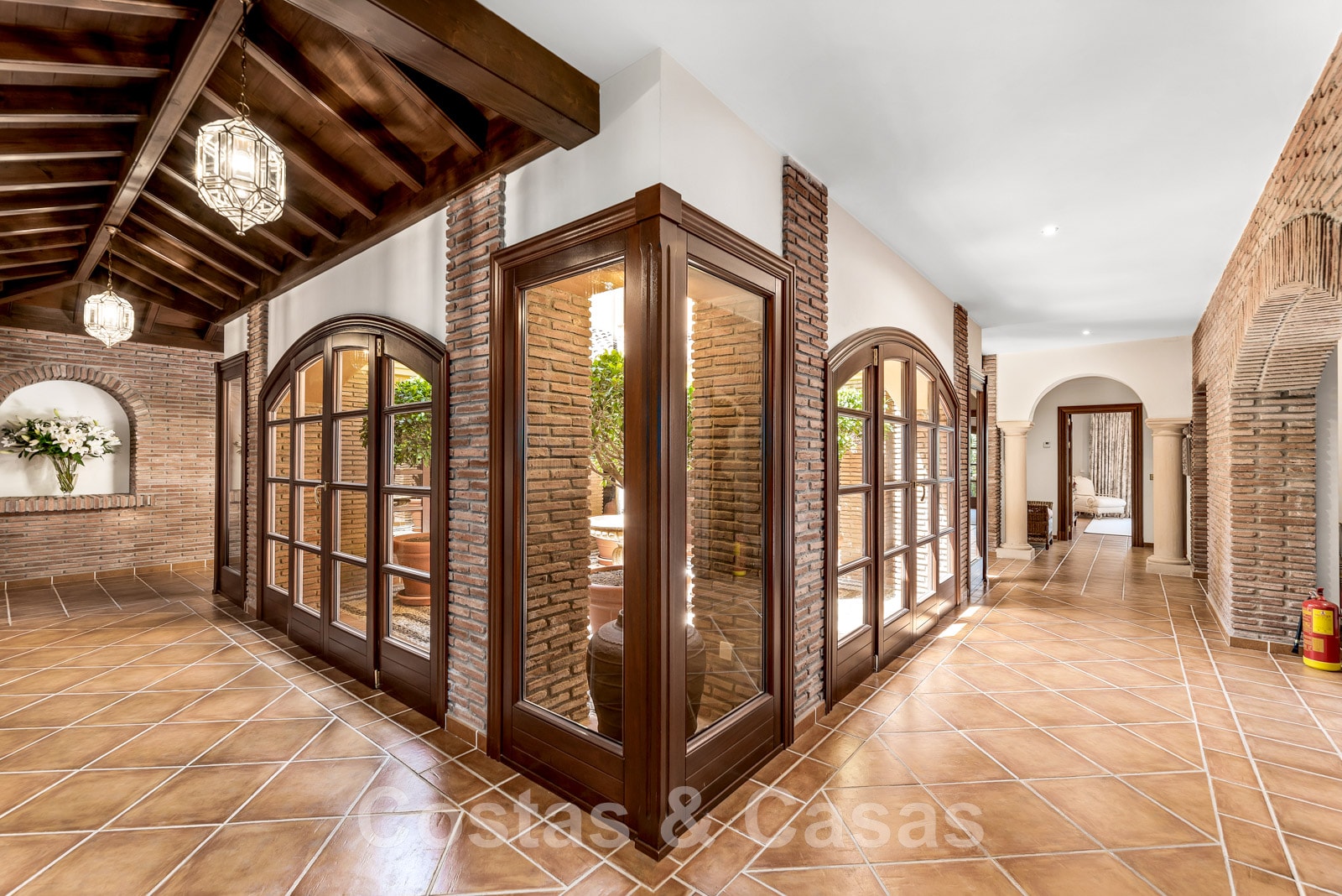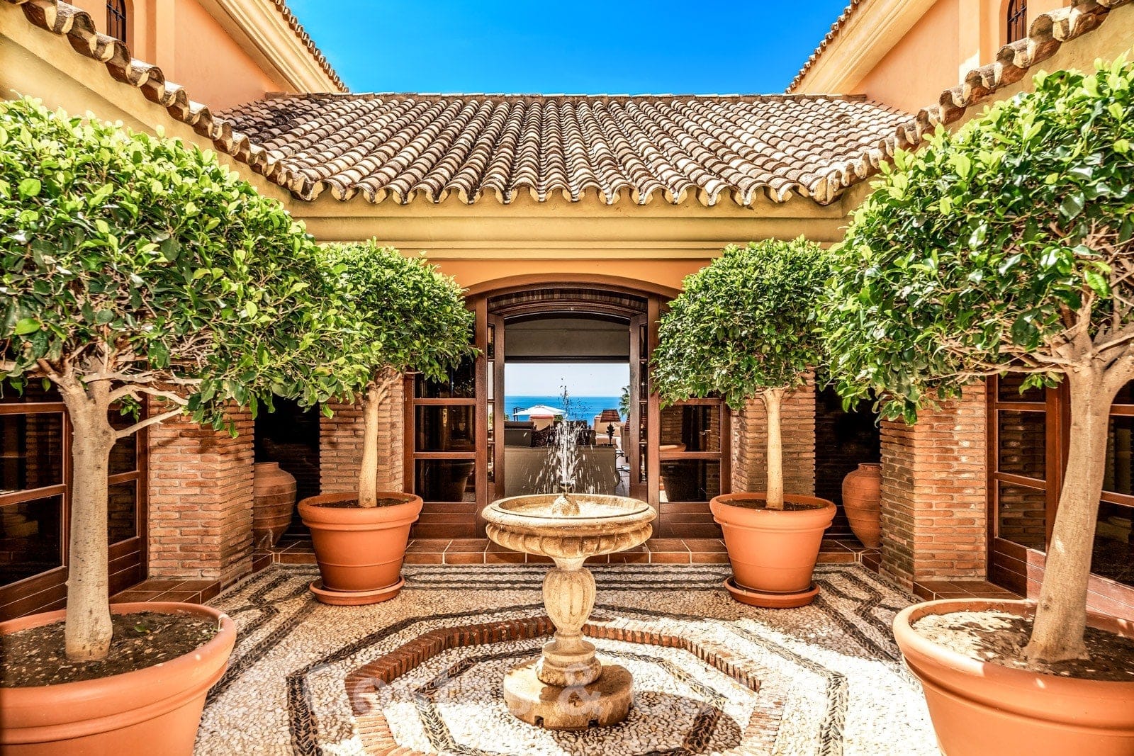 Un patio central andalou apporte lumière naturelle et ventilation à toutes les pièces du rez-de-chaussée.