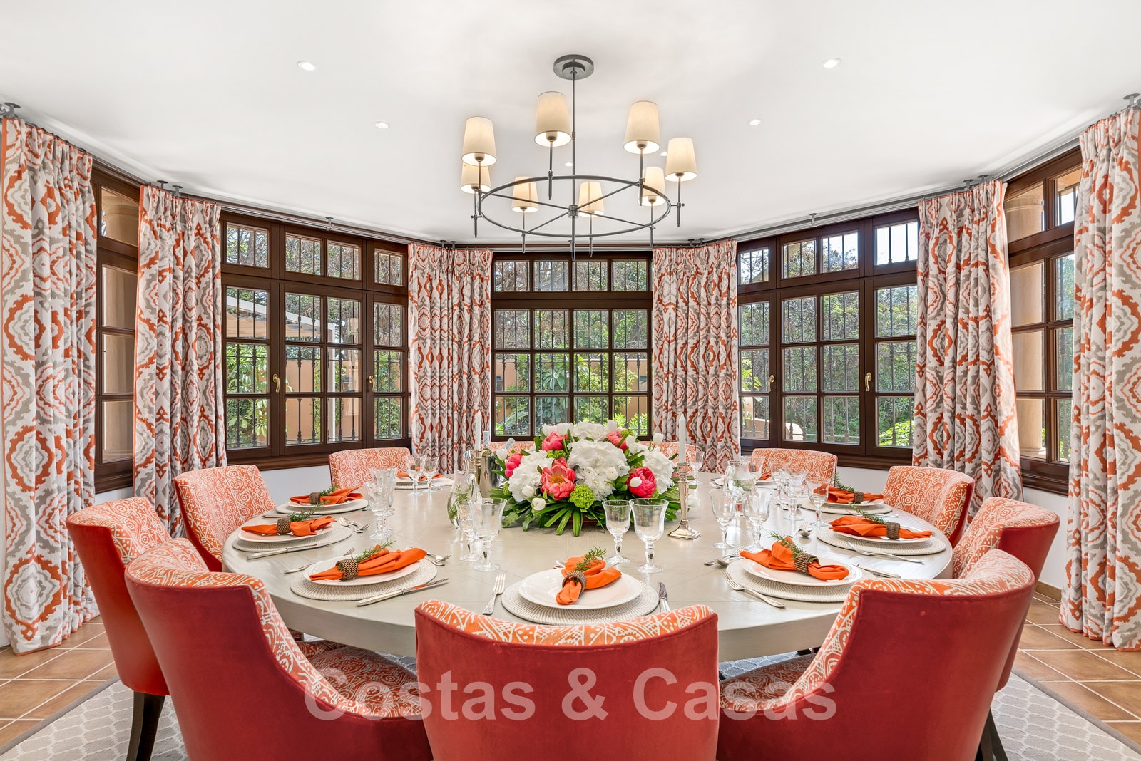 Les hautes fenêtres de la villa créent des pièces lumineuses.