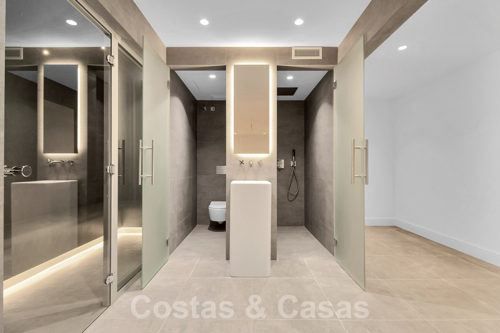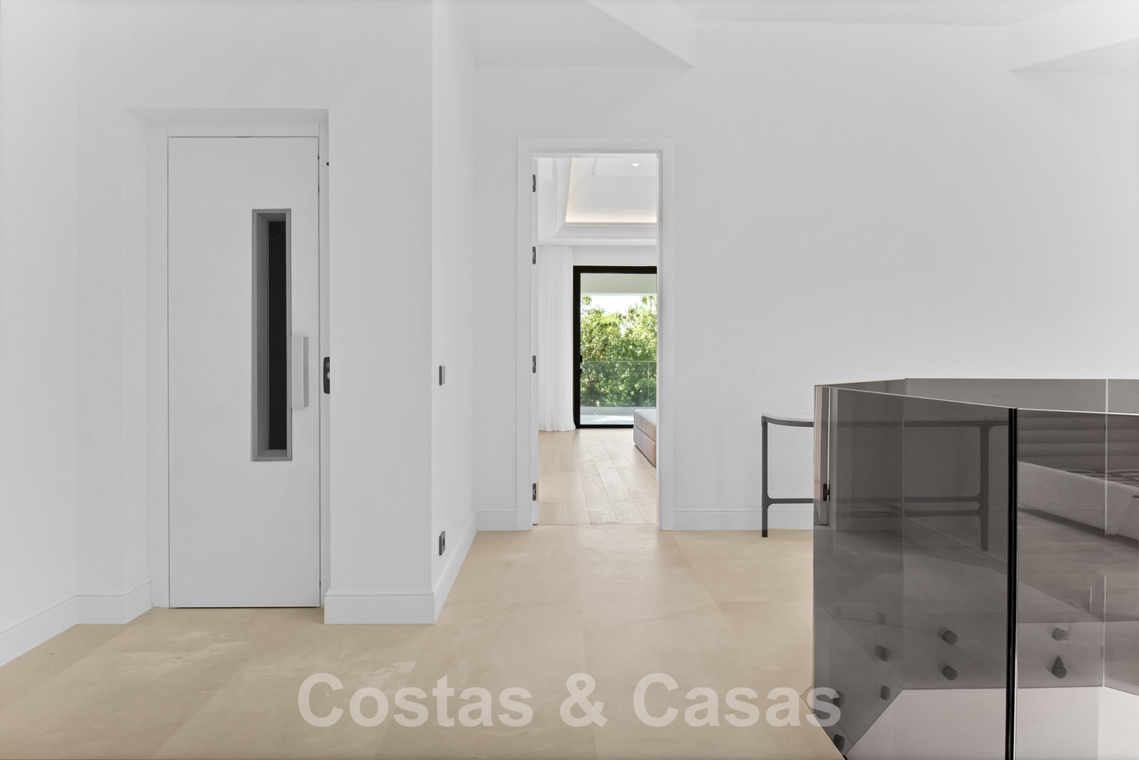 Ascenseur pour tous les étages. Climatisation. Balustrades en verre. Armoires encastrées. Système domotique avancé.