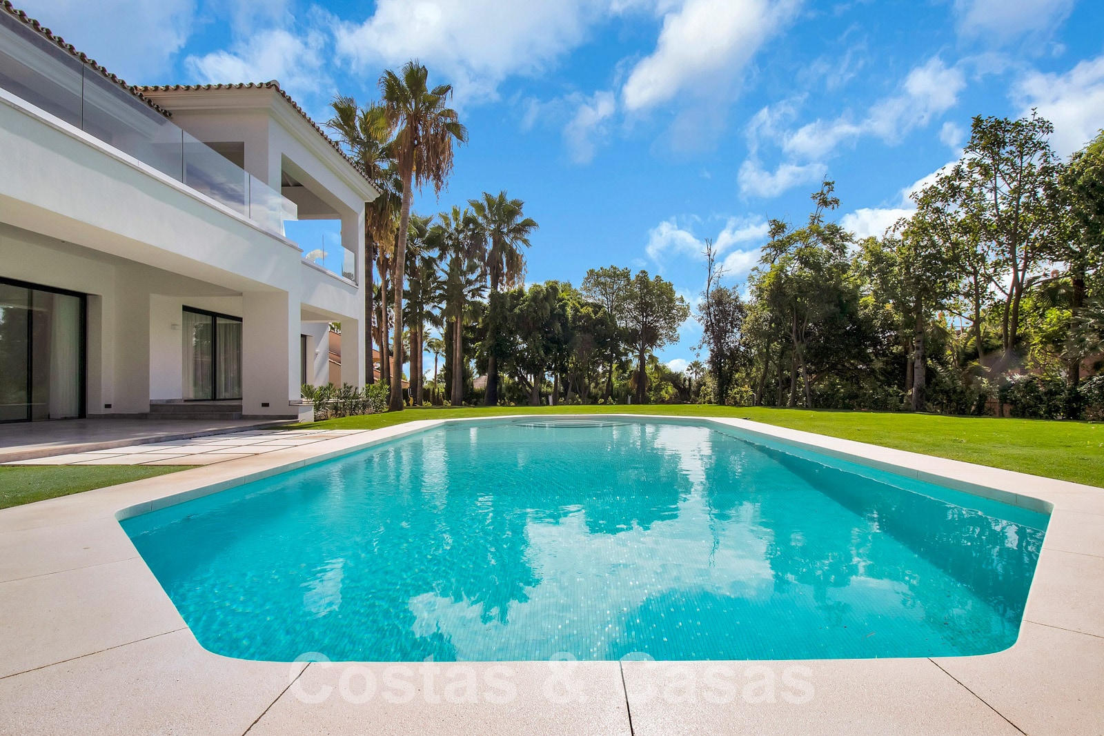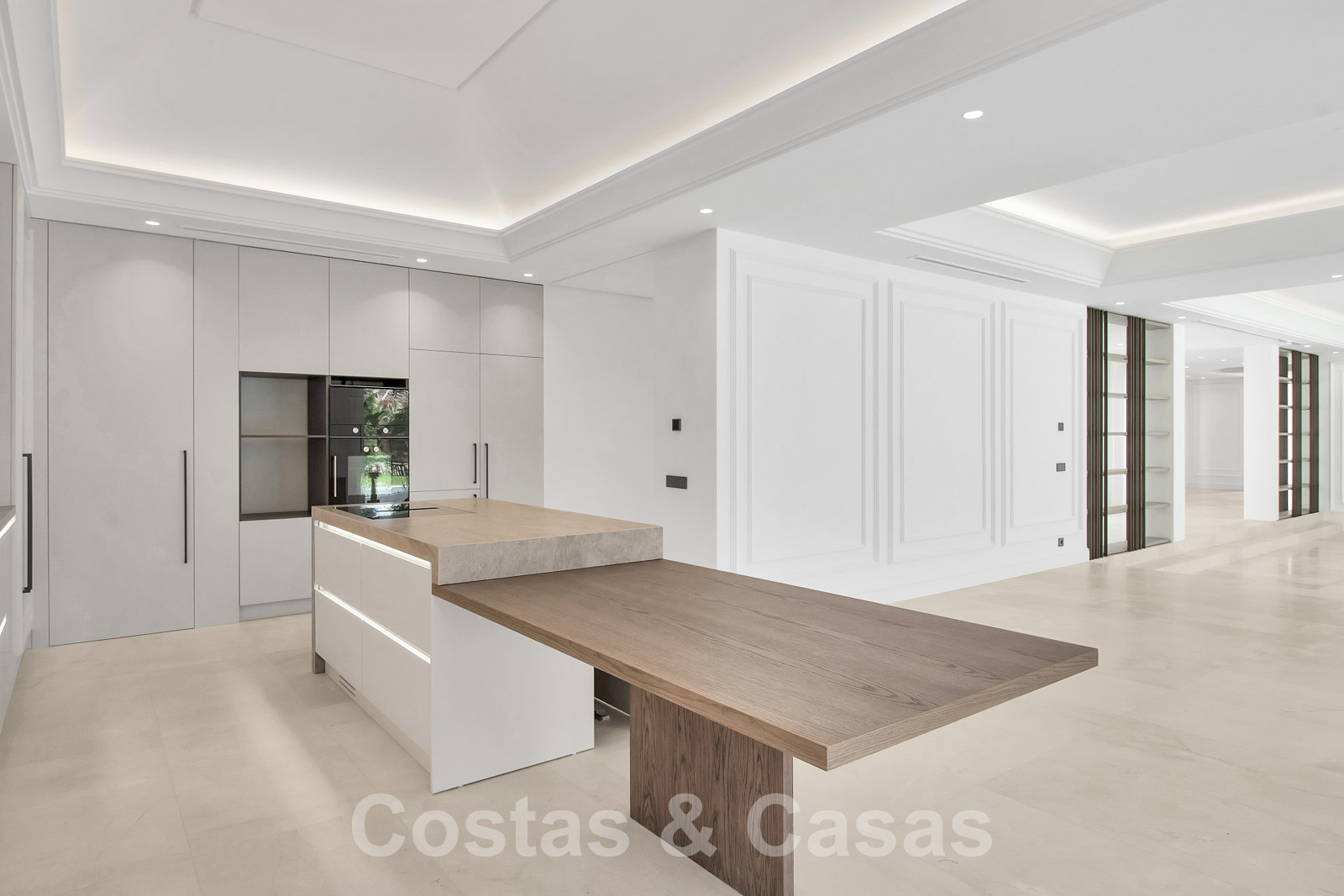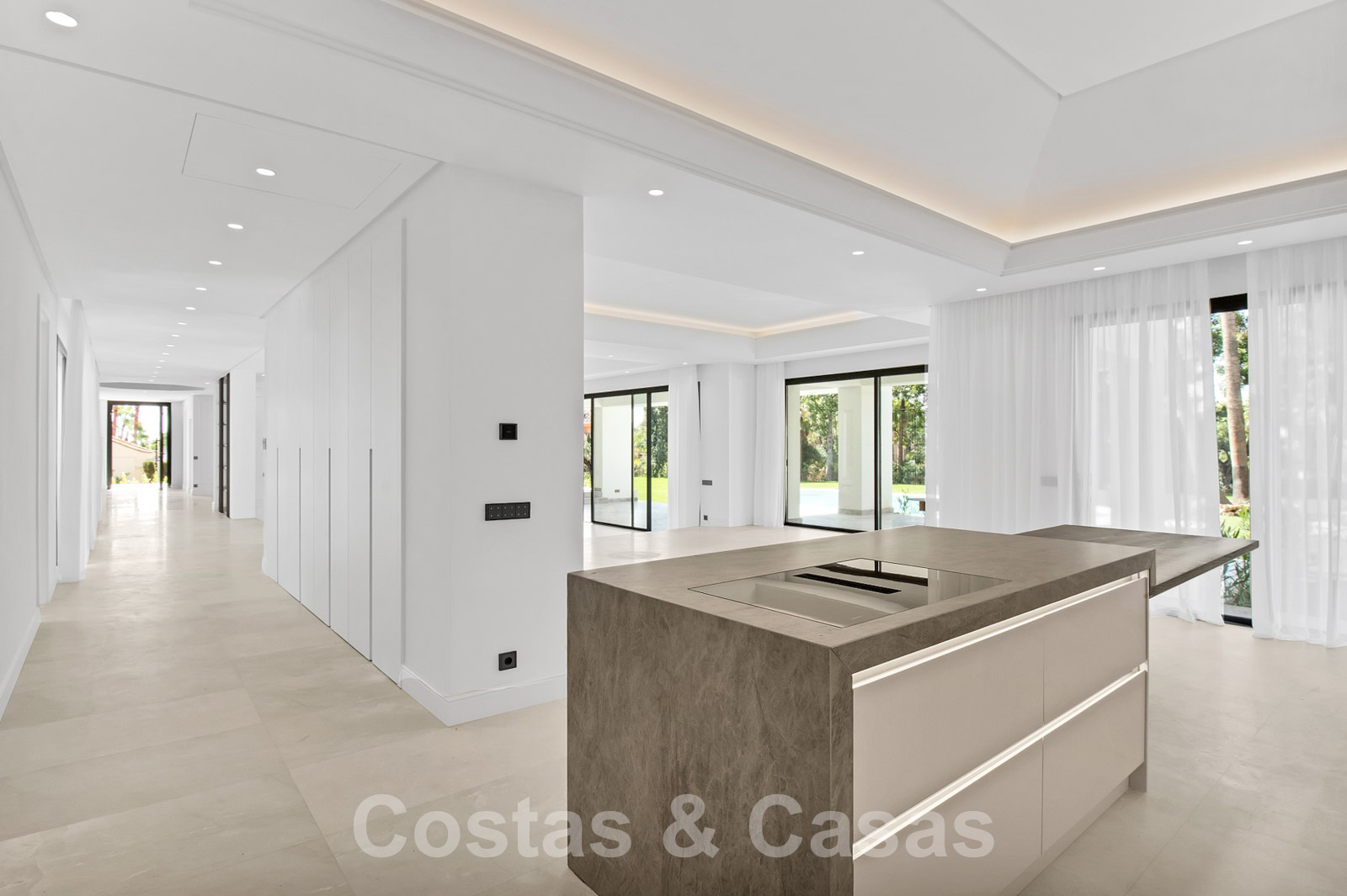 Villa spacieuse à l'architecture andalouse classique mélangée à une allure contemporaine chic. La villa crée un équilibre optimal entre luxe et confort. Elle utilise des matériaux de très haute qualité et accorde une attention particulière à chaque détail. Entrée couverte et lumineuse. Espace de vie spacieux avec un agencement ouvert. Cuisine design ouverte équipée d'un îlot et d'une table à manger. Au total, 6 chambres + logement de personnel et 9 bains. Gigantesque suite parentale avec accès à la vaste terrasse. De hautes fenêtres coulissantes avec des profils encastrés assurent une transition transparente et génèrent également de la lumière naturelle. Sols carrelés de qualité et parquet dans les chambres. Un espace dans la maison est dédié au plaisir et à la détente avec une salle de jeux avec salon de télévision, un sauna, un bain turc, une bodega et un espace bibliothèque.