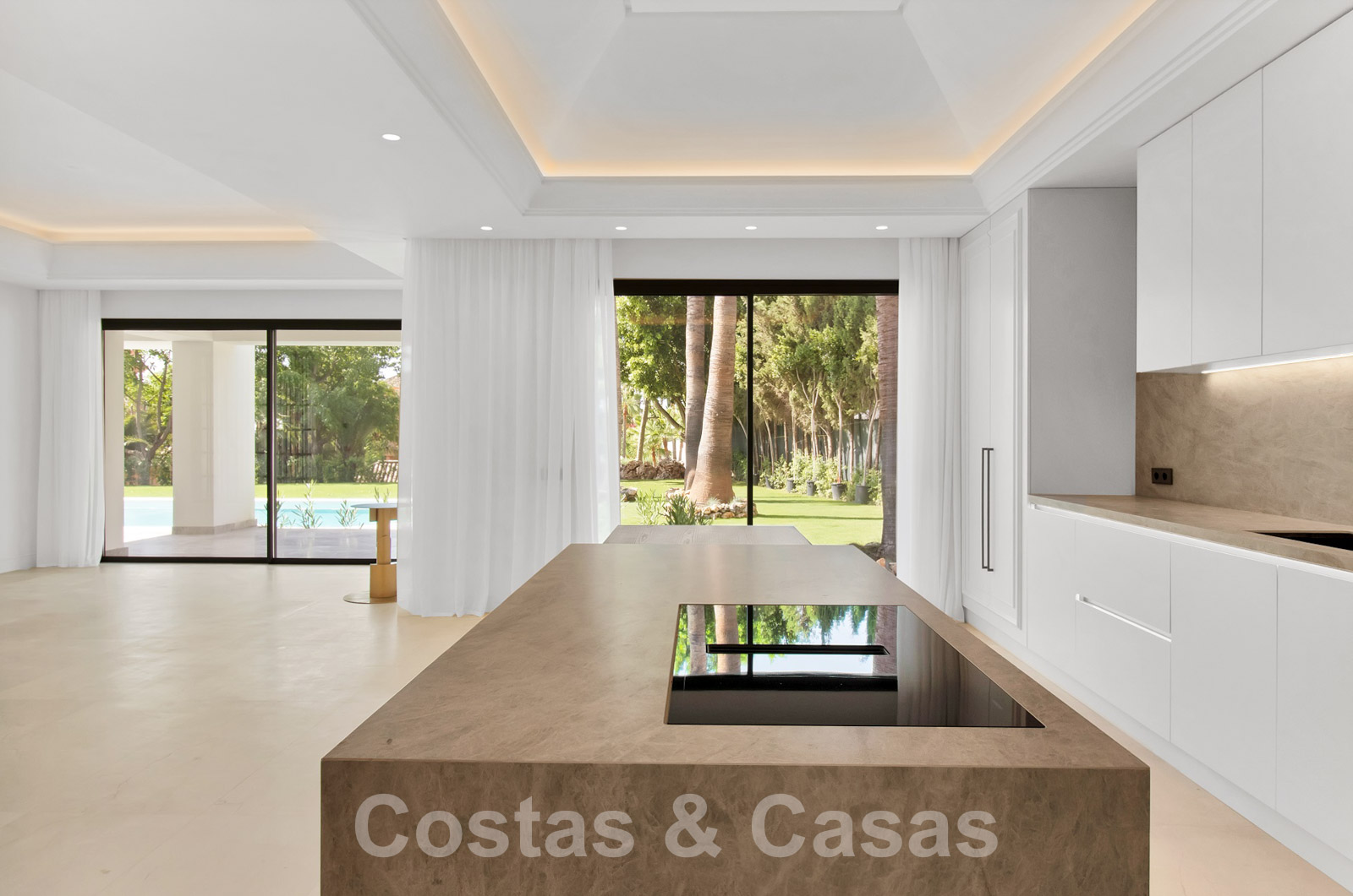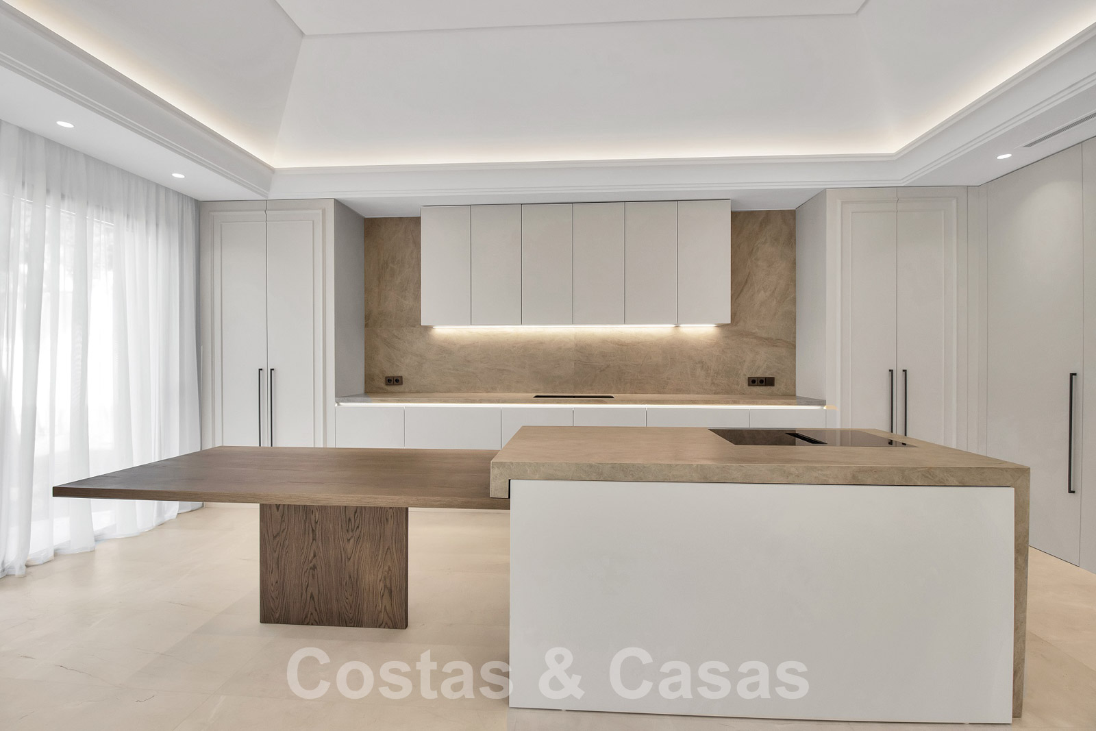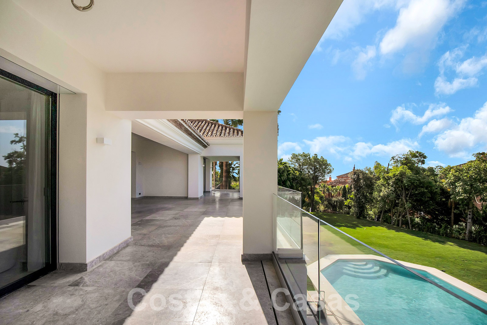 Villa spacieuse à l'architecture andalouse classique mélangée à une allure contemporaine chic. La villa crée un équilibre optimal entre luxe et confort. Elle utilise des matériaux de très haute qualité et accorde une attention particulière à chaque détail. Entrée couverte et lumineuse. Espace de vie spacieux avec un agencement ouvert. Cuisine design ouverte équipée d'un îlot et d'une table à manger. Au total, 6 chambres + logement de personnel et 9 bains. Gigantesque suite parentale avec accès à la vaste terrasse. De hautes fenêtres coulissantes avec des profils encastrés assurent une transition transparente et génèrent également de la lumière naturelle. Sols carrelés de qualité et parquet dans les chambres. Un espace dans la maison est dédié au plaisir et à la détente avec une salle de jeux avec salon de télévision, un sauna, un bain turc, une bodega et un espace bibliothèque.