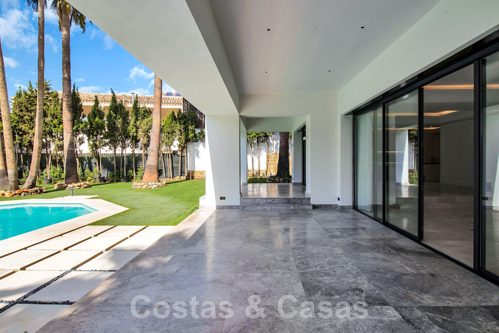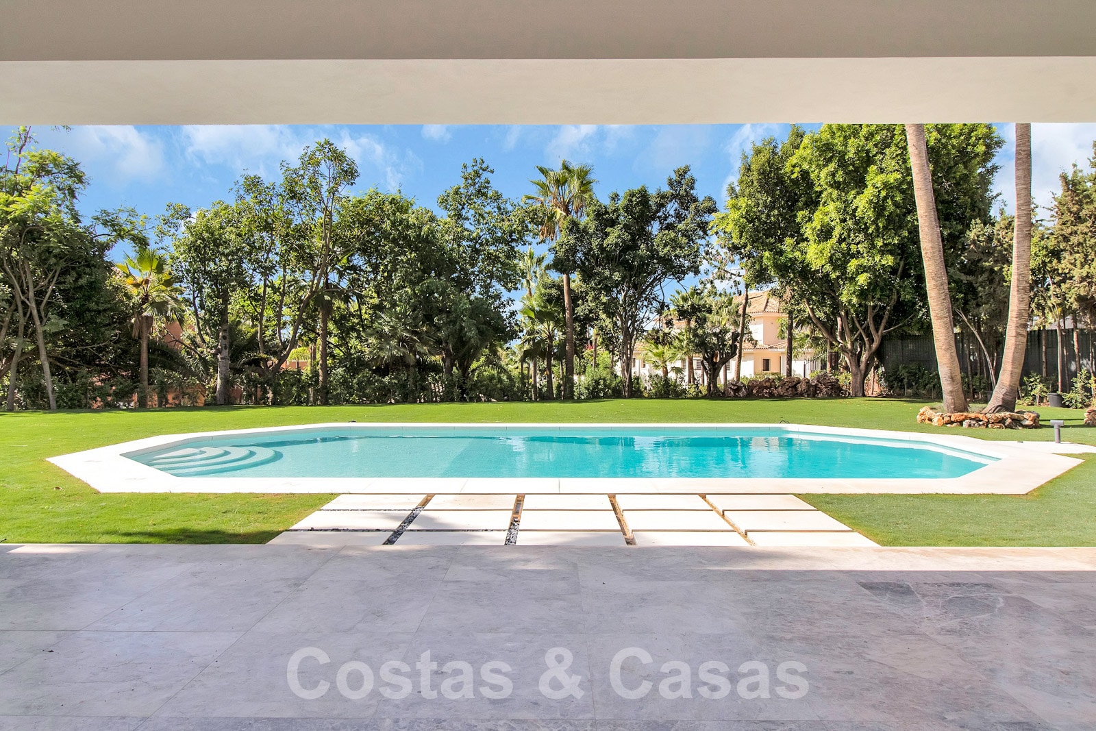 Situé sur un vaste terrain jouissant d'une grande intimité. Aménagement paysager de haute qualité avec des palmiers et de la végétation indigène. Grande piscine entourée de pelouse et d'une terrasse. Les terrasses ouvertes et couvertes offrent beaucoup d'espace pour les loisirs.