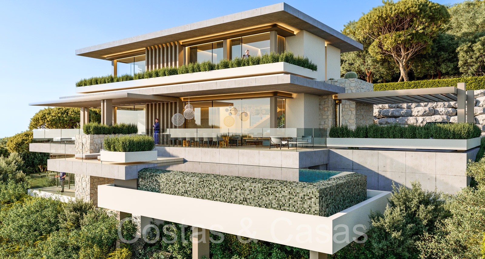 Autres caractéristiques: Balustrades en verre autour des terrasses. Éclairage LED. ….