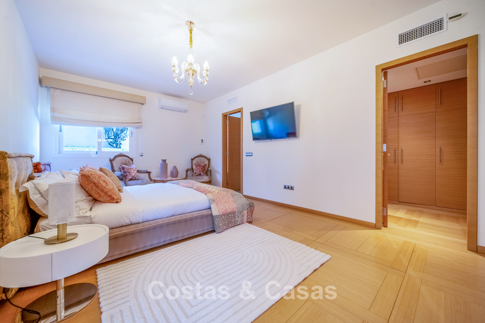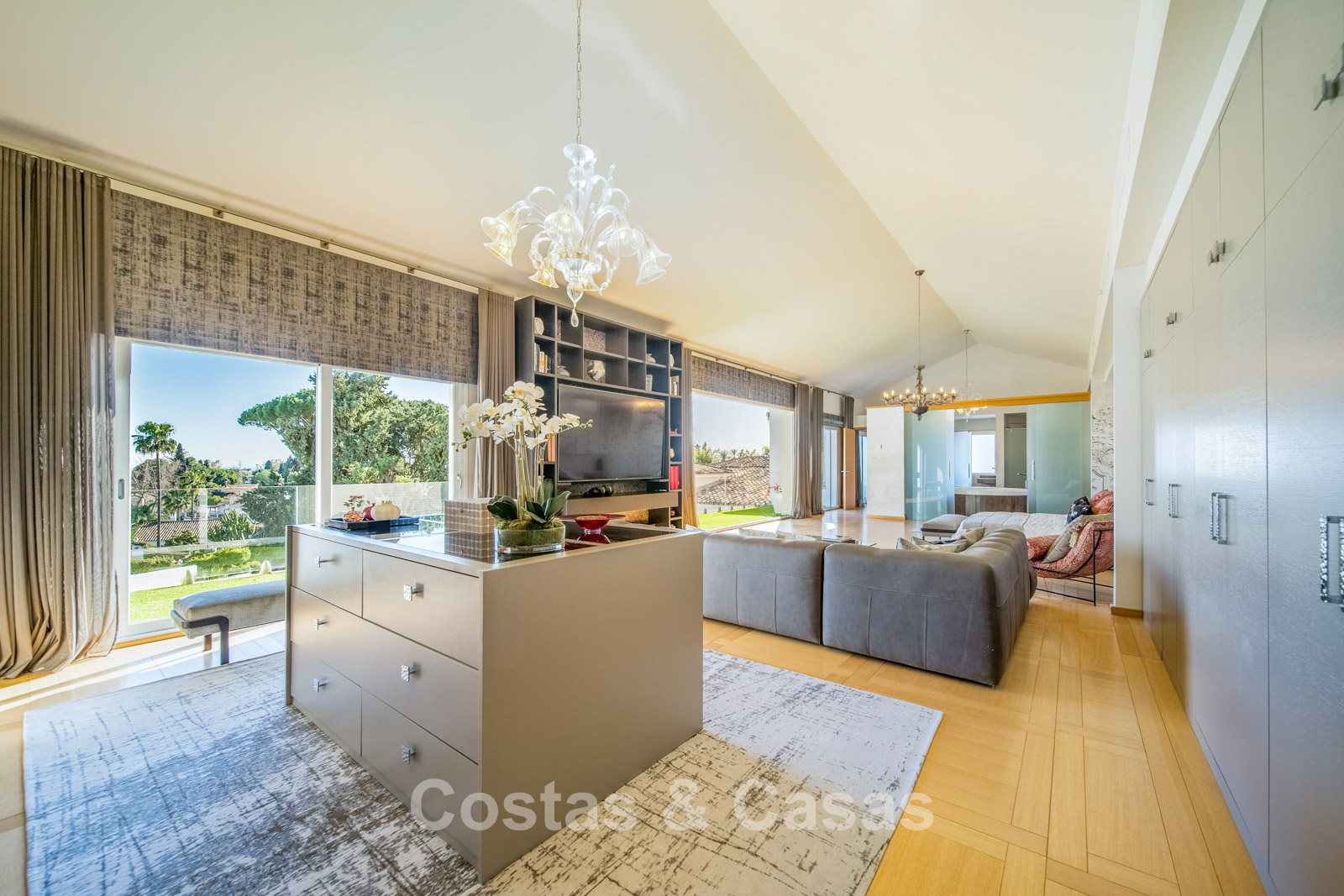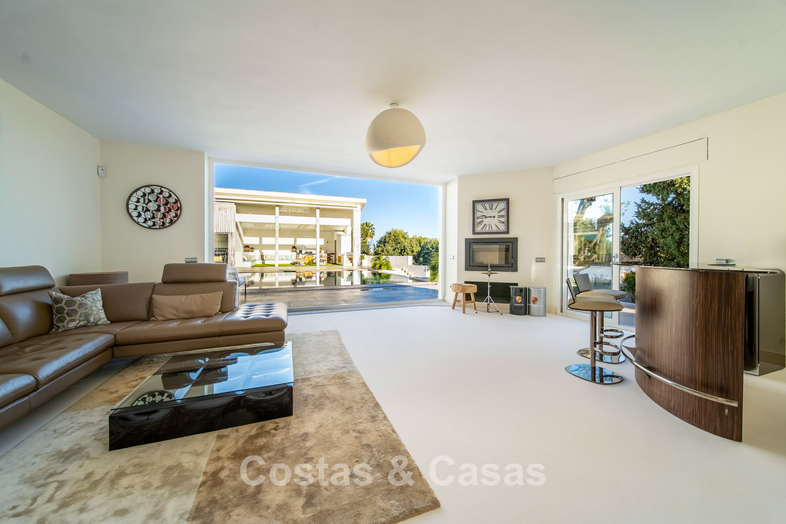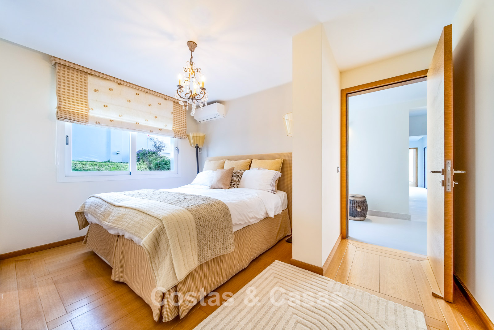Autres caractéristiques : Climatisation chaud/froid Cheminée Placards intégrés Sols carrelés de qualité Double vitrage Garde-corps en verre Éclairage LED intérieur et extérieur Stores motorisés
