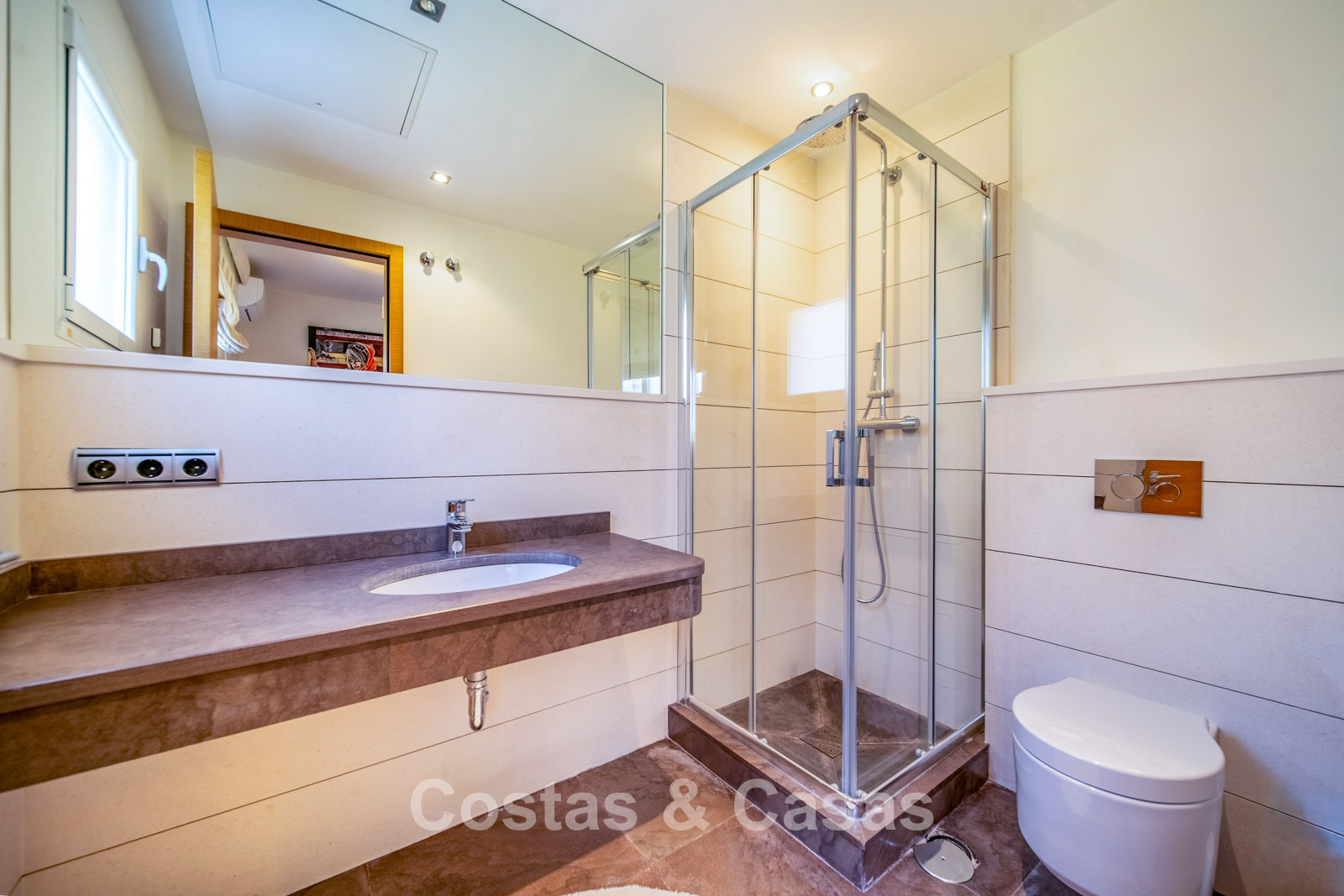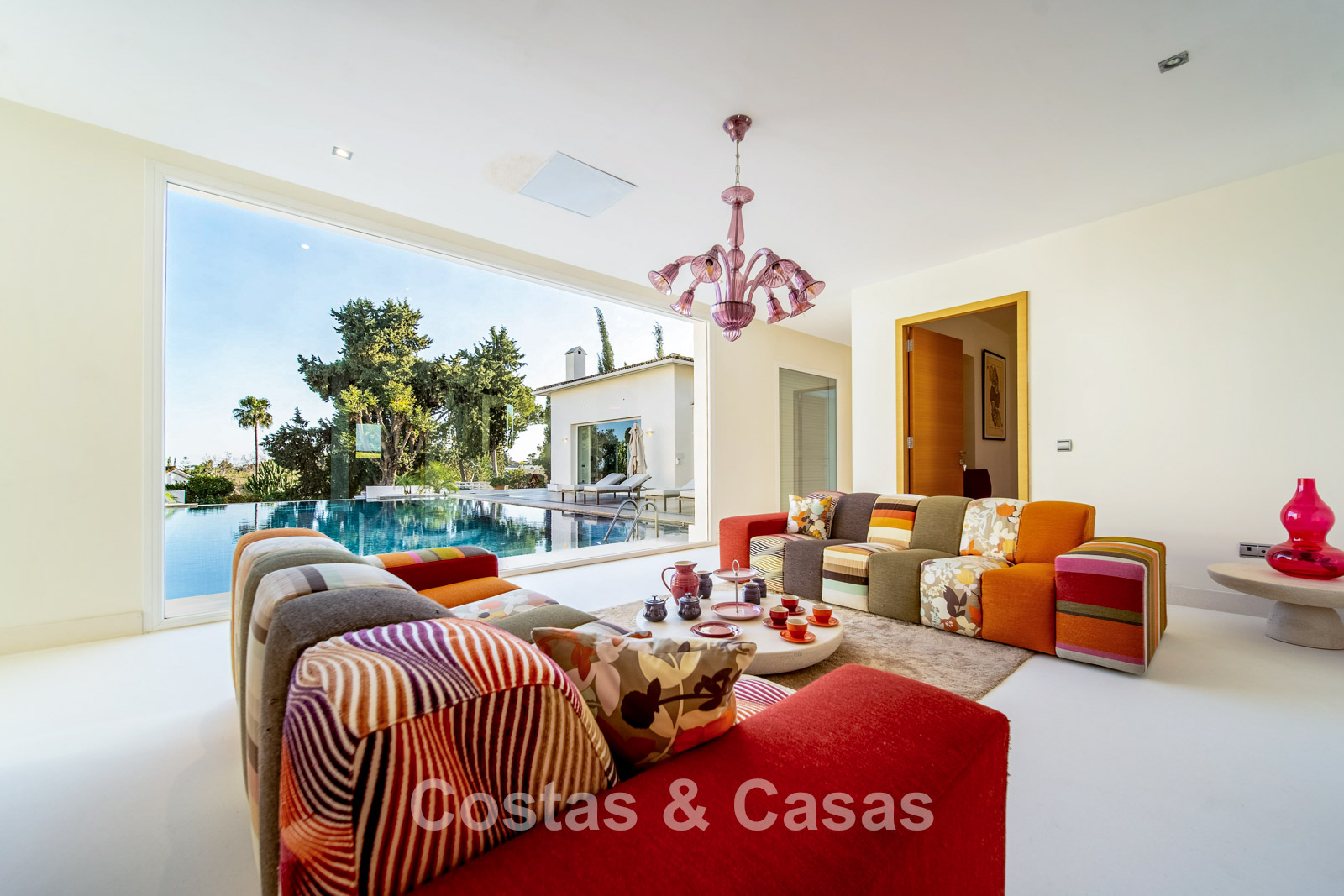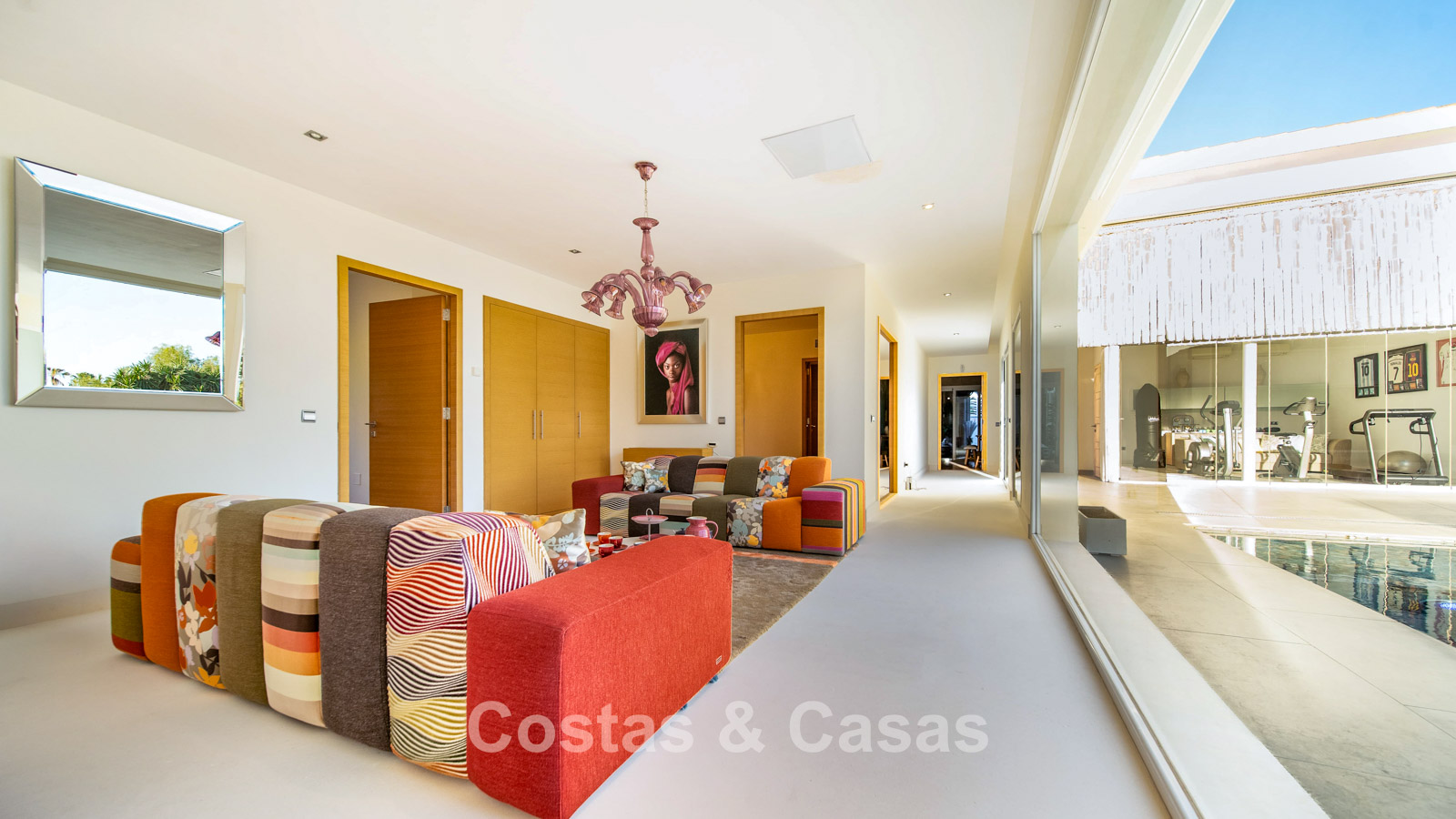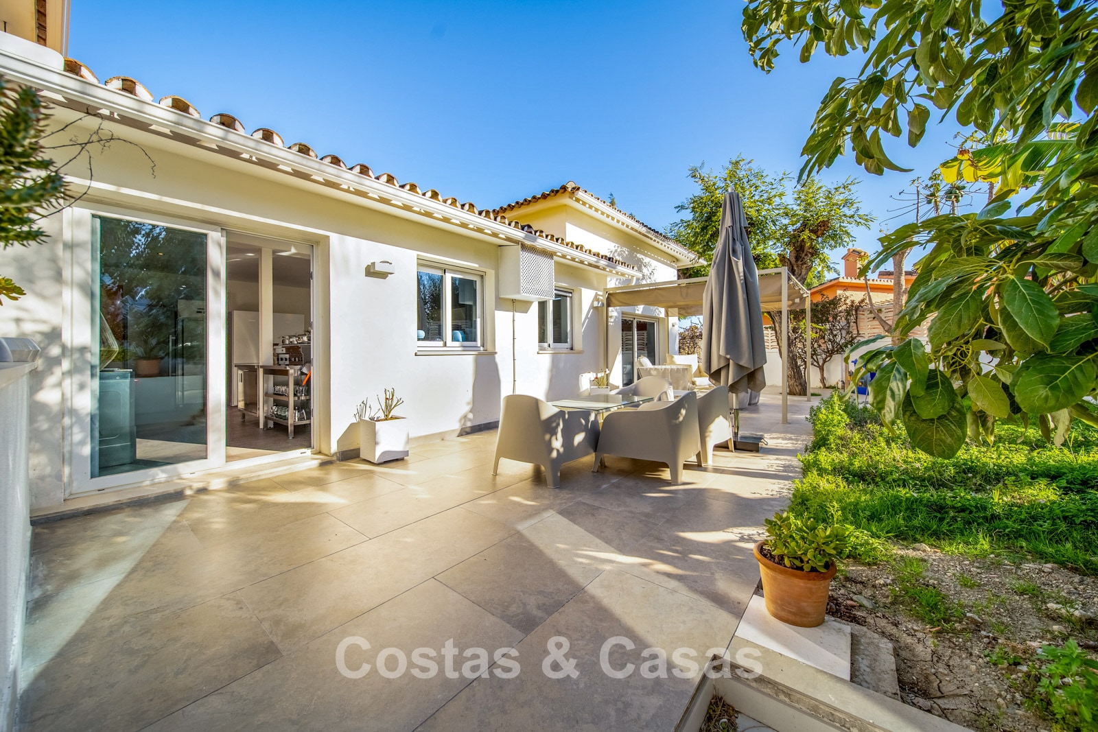 Autres caractéristiques : Climatisation chaud/froid Cheminée Placards intégrés Sols carrelés de qualité Double vitrage Garde-corps en verre Éclairage LED intérieur et extérieur Stores motorisés