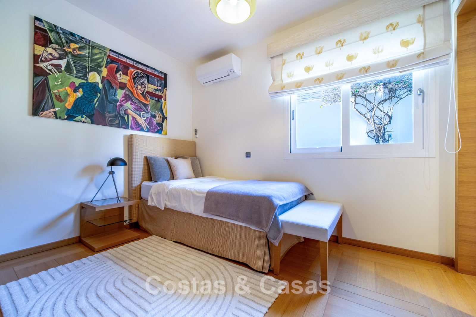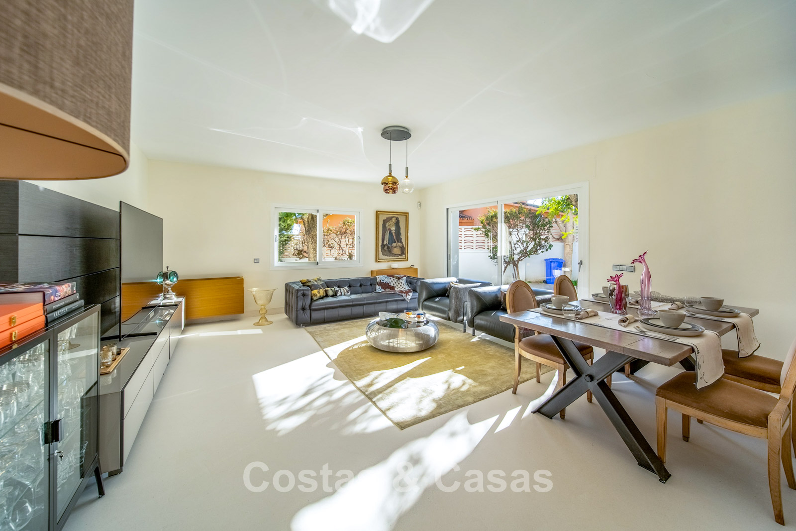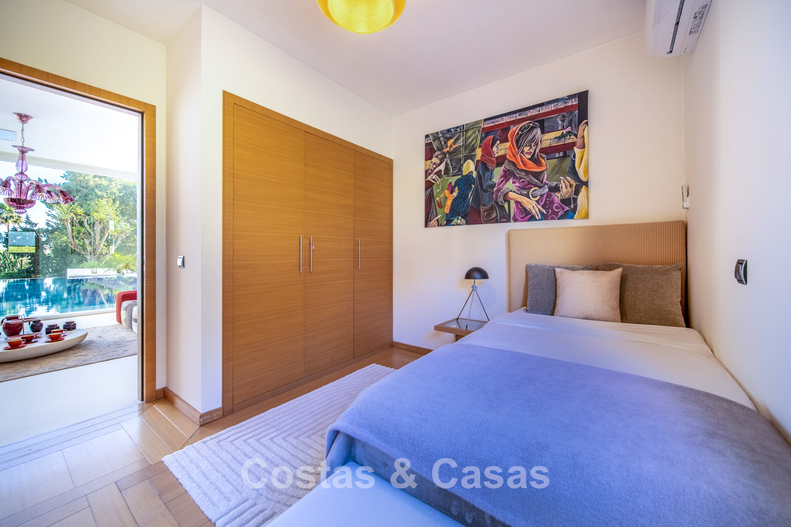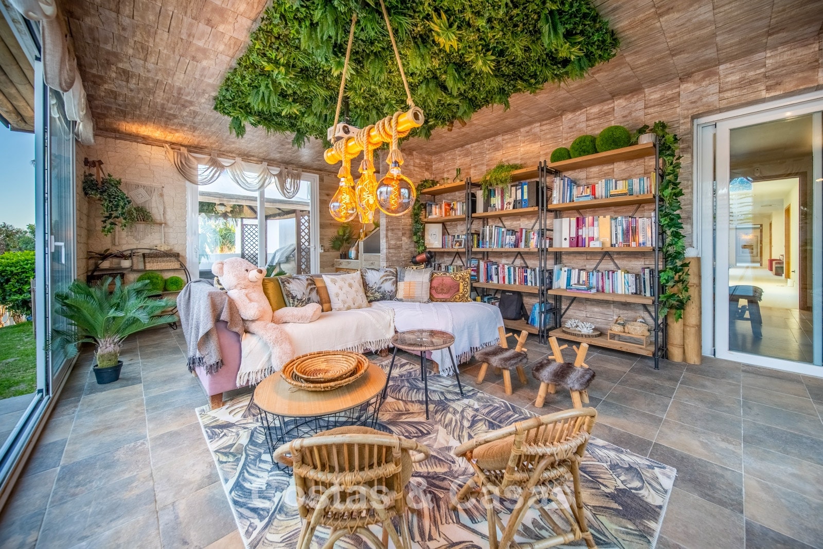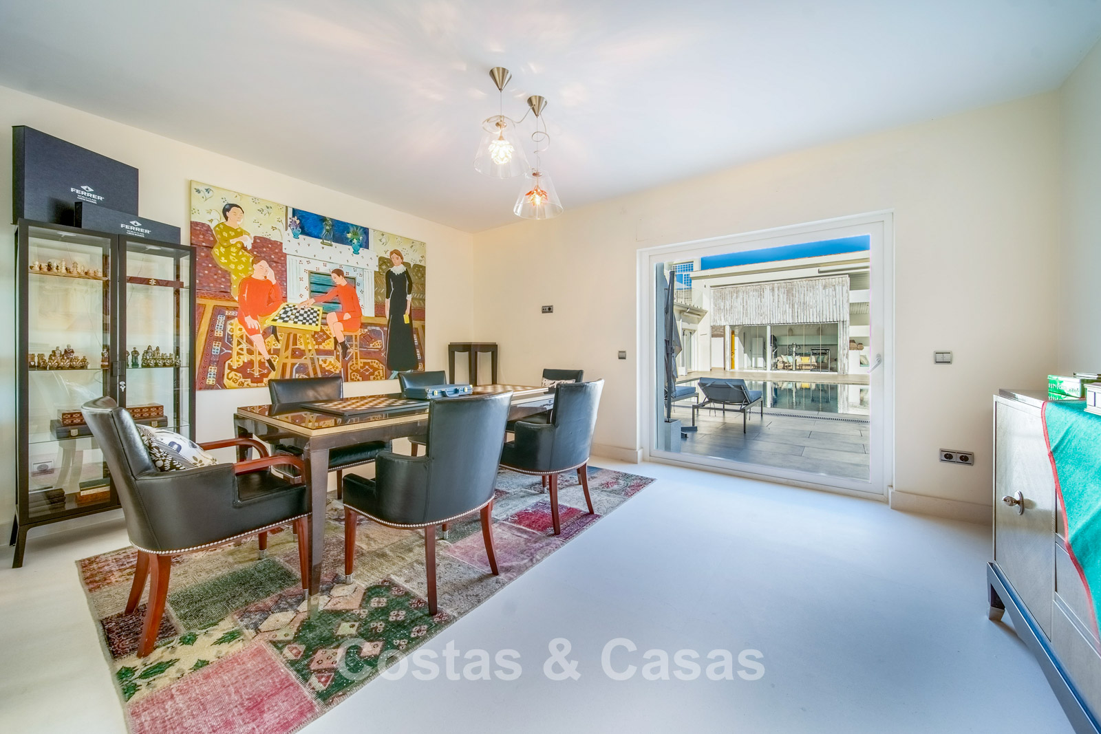 Autres caractéristiques : Climatisation chaud/froid Cheminée Placards intégrés Sols carrelés de qualité Double vitrage Garde-corps en verre Éclairage LED intérieur et extérieur Stores motorisés