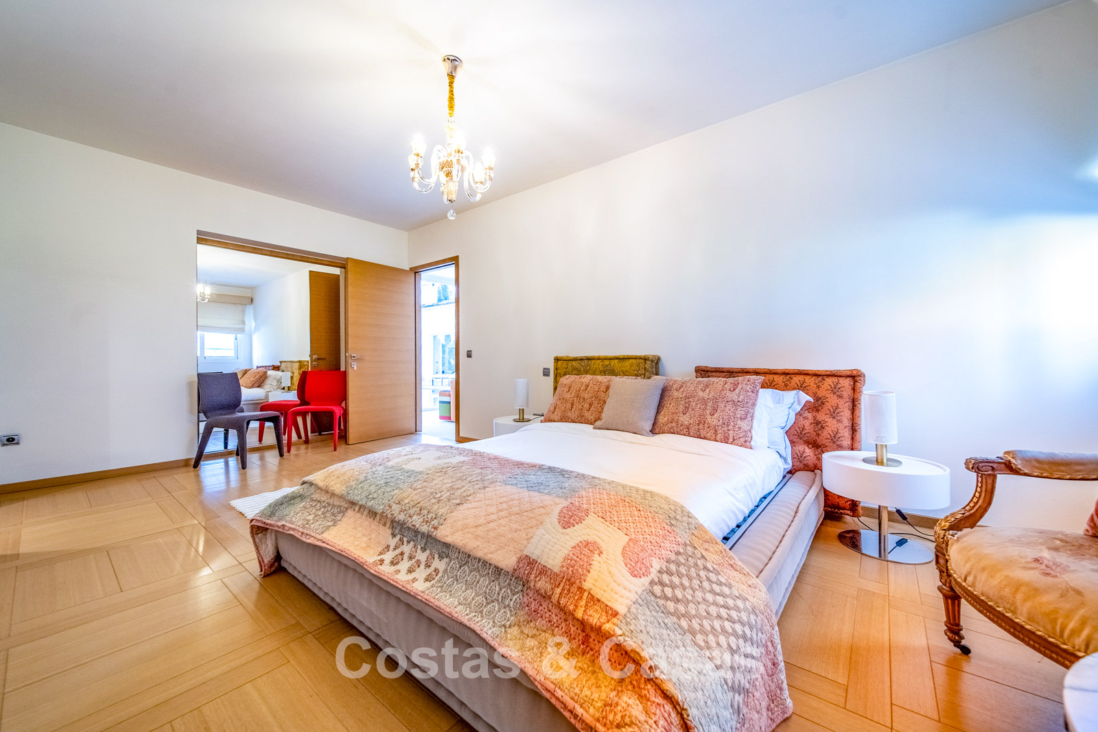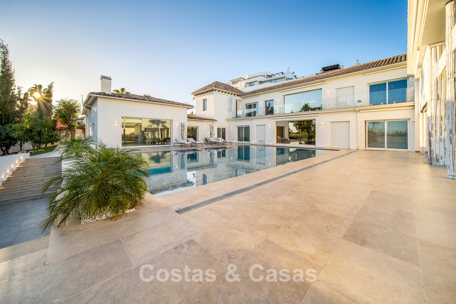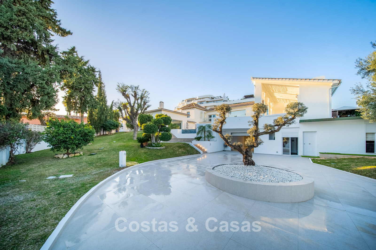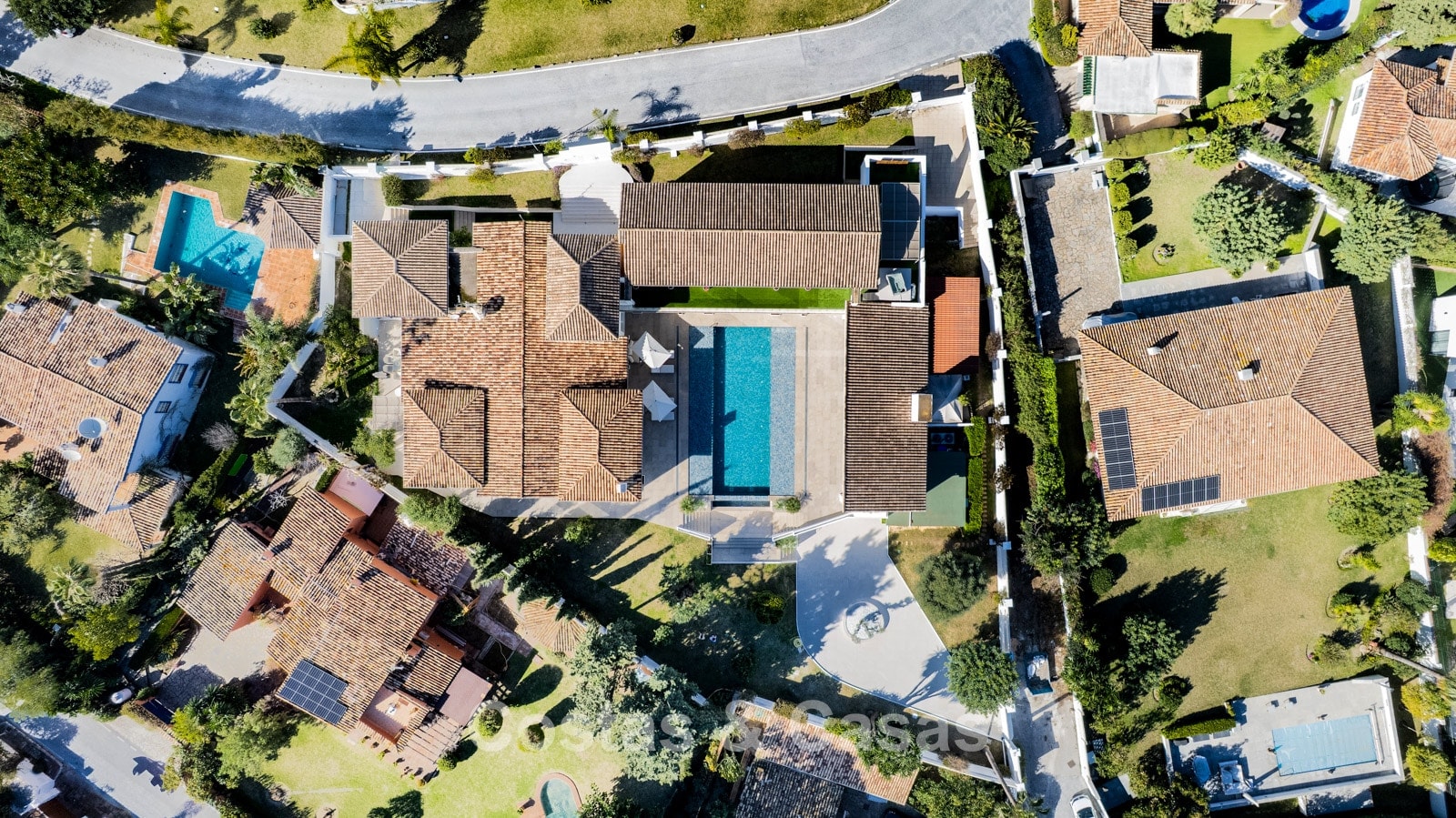 Villa spacieuse et bien conçue, entièrement rénovée en 2025. Matériaux de haute qualité et finitions haut de gamme. Intérieur lumineux grâce à de grandes baies vitrées et une disposition ouverte. Grand espace de vie avec plusieurs salons. Cuisine moderne entièrement équipée avec îlot central. Cuisine secondaire "dirty kitchen". Salle à manger formelle avec plafond à poutres apparentes. 6 chambres avec salles de bains en suite et 2 toilettes invités. Étage supérieur entièrement dédié aux propriétaires avec suite parentale, salon, dressing et terrasse avec jacuzzi. Rez-de-chaussée avec espaces supplémentaires modulables. Logement indépendant pour invités ou personnel. Bureau ou salle multimédia. Salle de sport entièrement équipée. Garage privé pour plus de 3 voitures et stationnement supplémentaire.