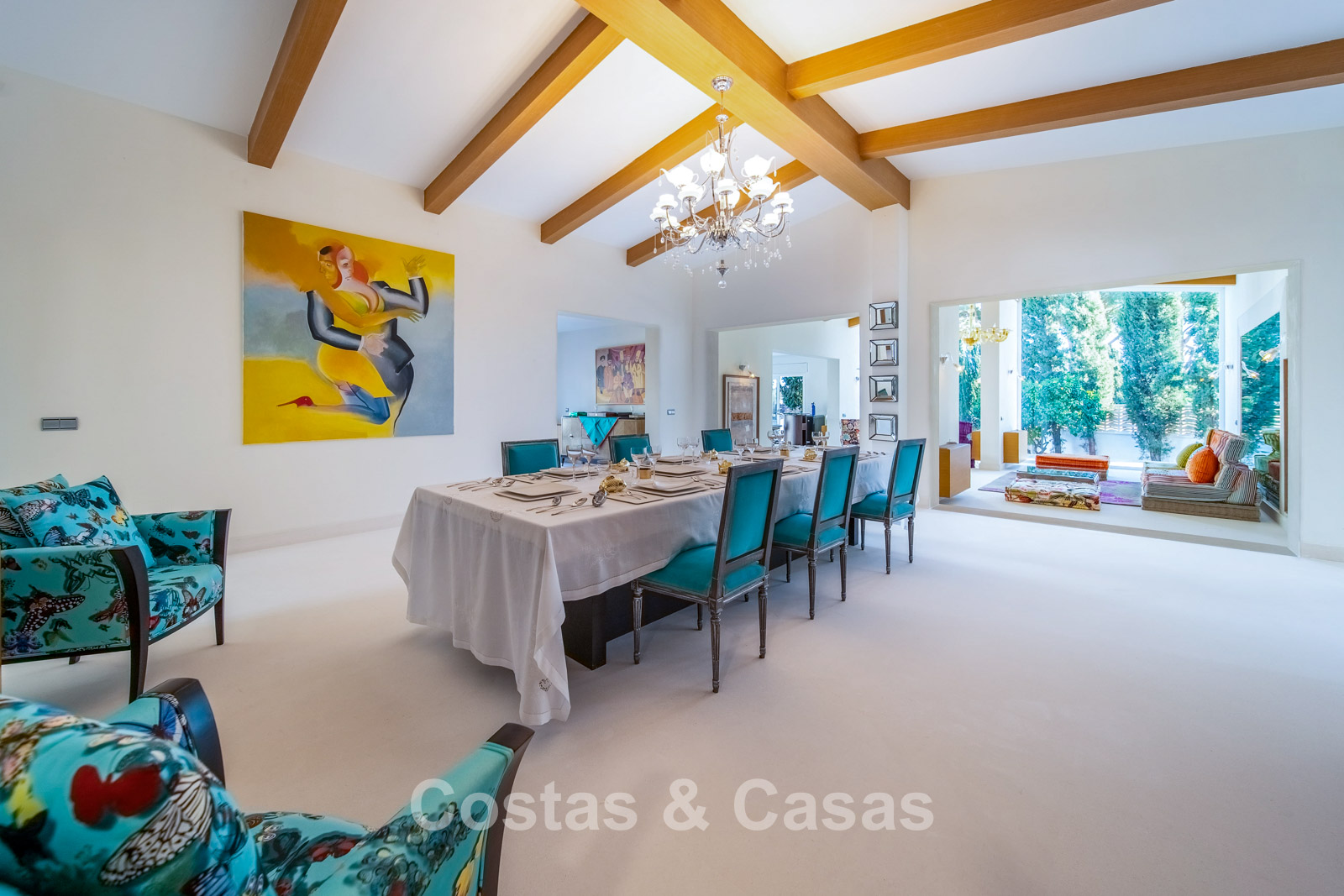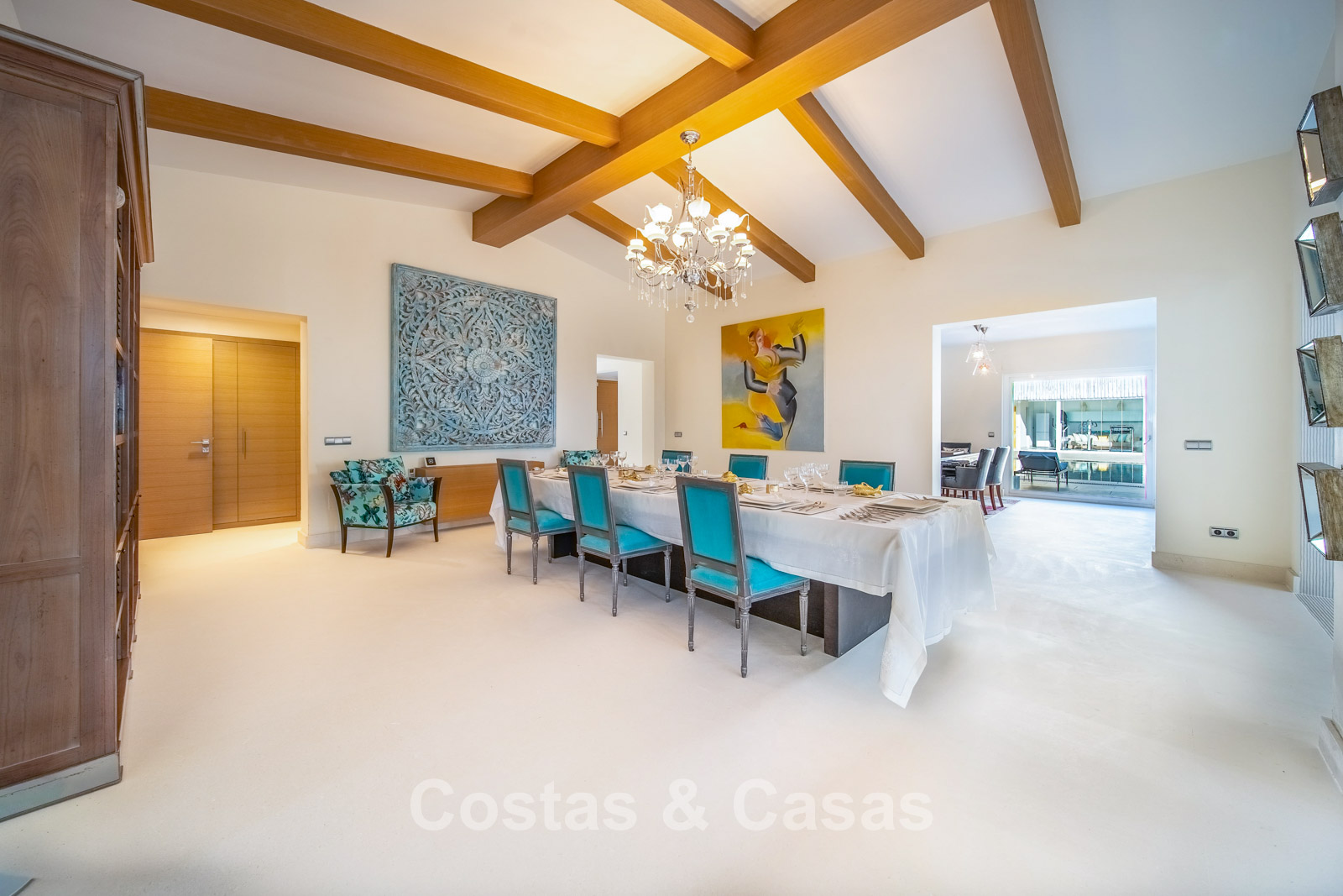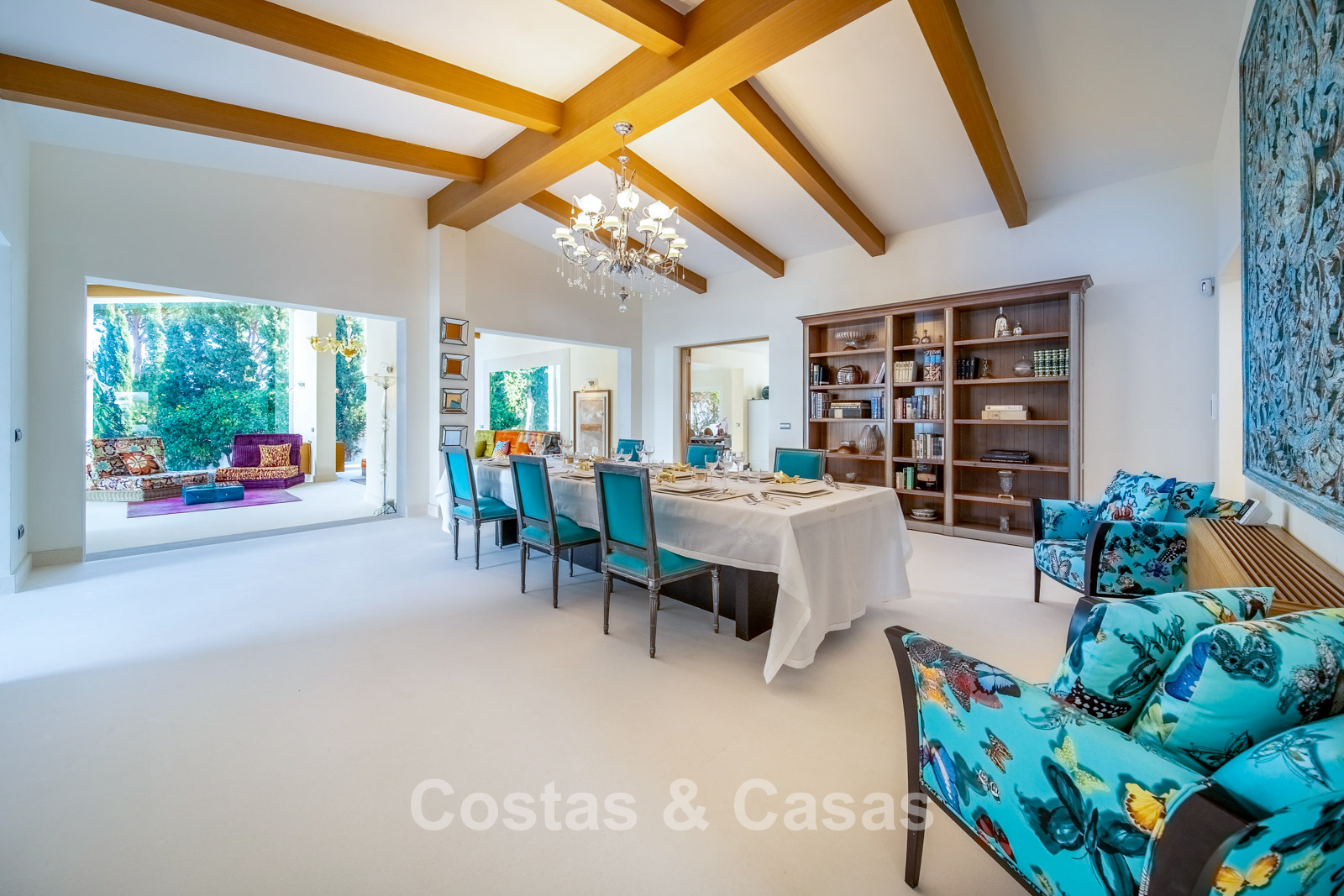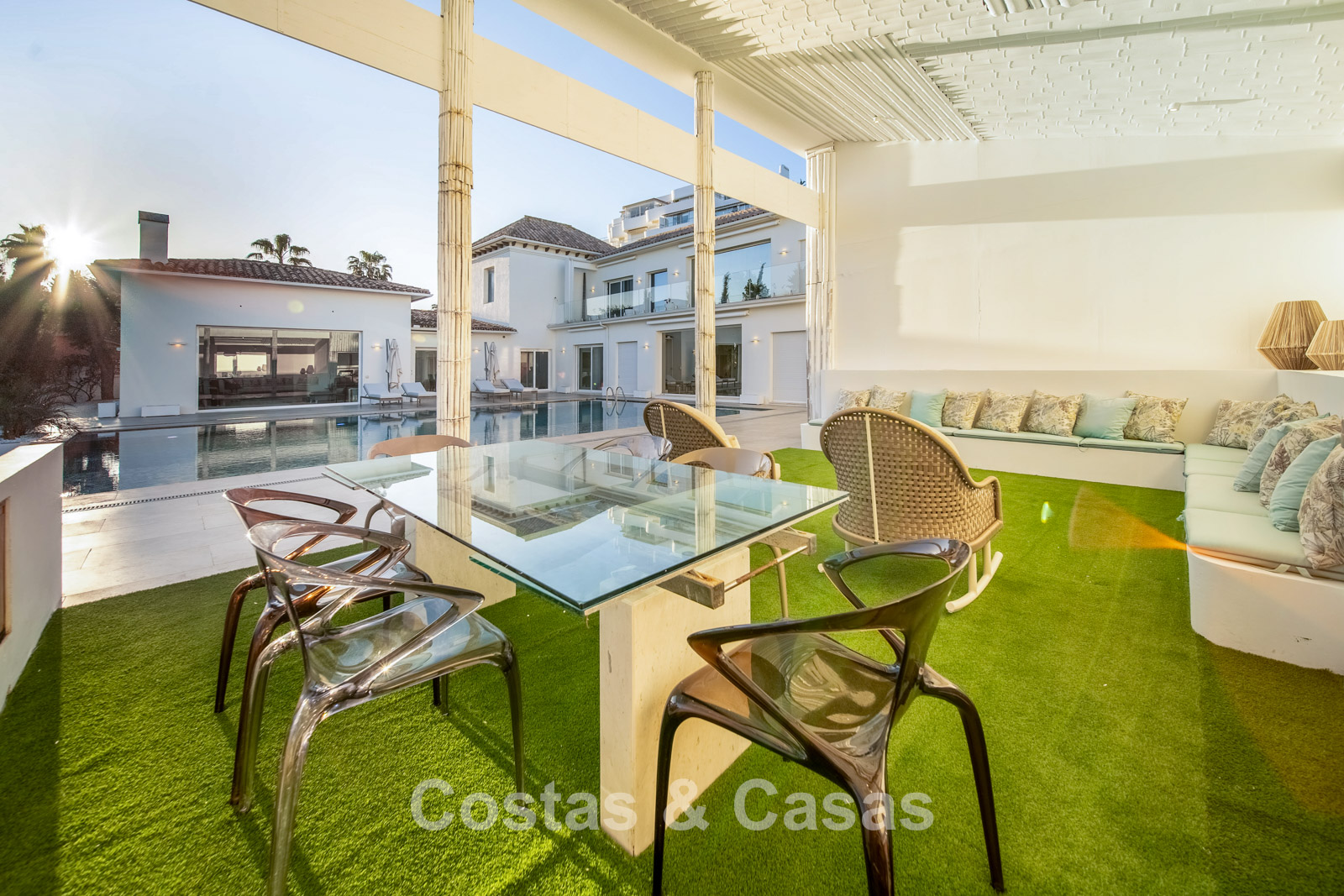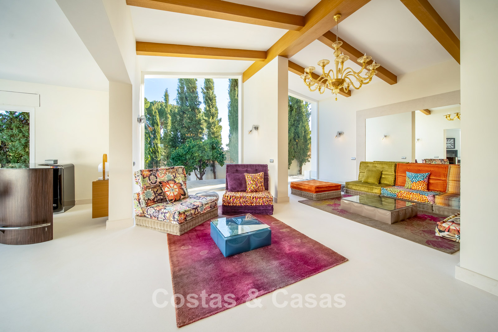 Villa spacieuse et bien conçue, entièrement rénovée en 2025. Matériaux de haute qualité et finitions haut de gamme. Intérieur lumineux grâce à de grandes baies vitrées et une disposition ouverte. Grand espace de vie avec plusieurs salons. Cuisine moderne entièrement équipée avec îlot central. Cuisine secondaire "dirty kitchen". Salle à manger formelle avec plafond à poutres apparentes. 6 chambres avec salles de bains en suite et 2 toilettes invités. Étage supérieur entièrement dédié aux propriétaires avec suite parentale, salon, dressing et terrasse avec jacuzzi. Rez-de-chaussée avec espaces supplémentaires modulables. Logement indépendant pour invités ou personnel. Bureau ou salle multimédia. Salle de sport entièrement équipée. Garage privé pour plus de 3 voitures et stationnement supplémentaire.
