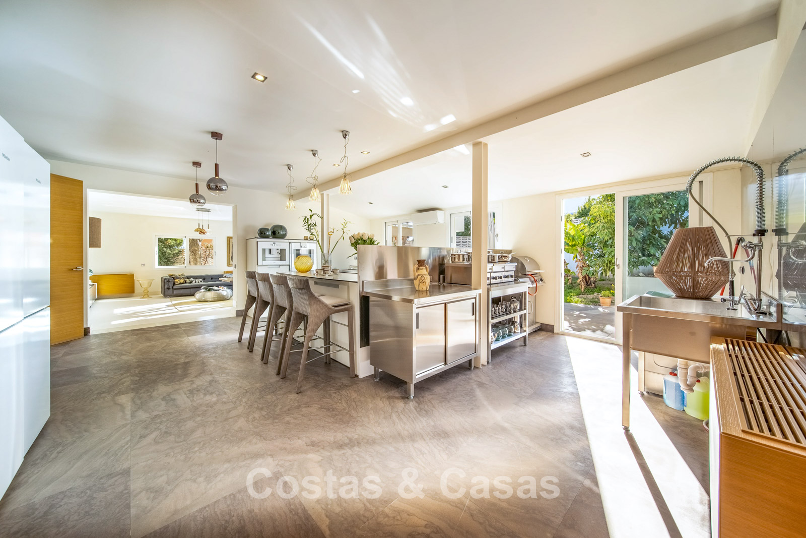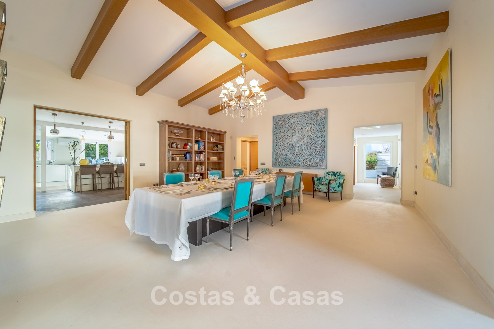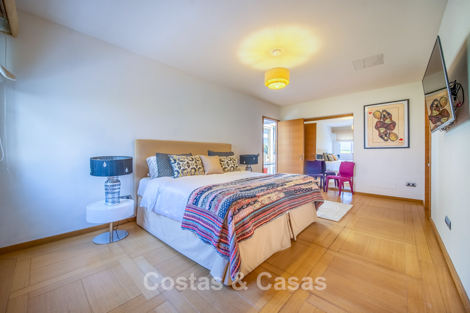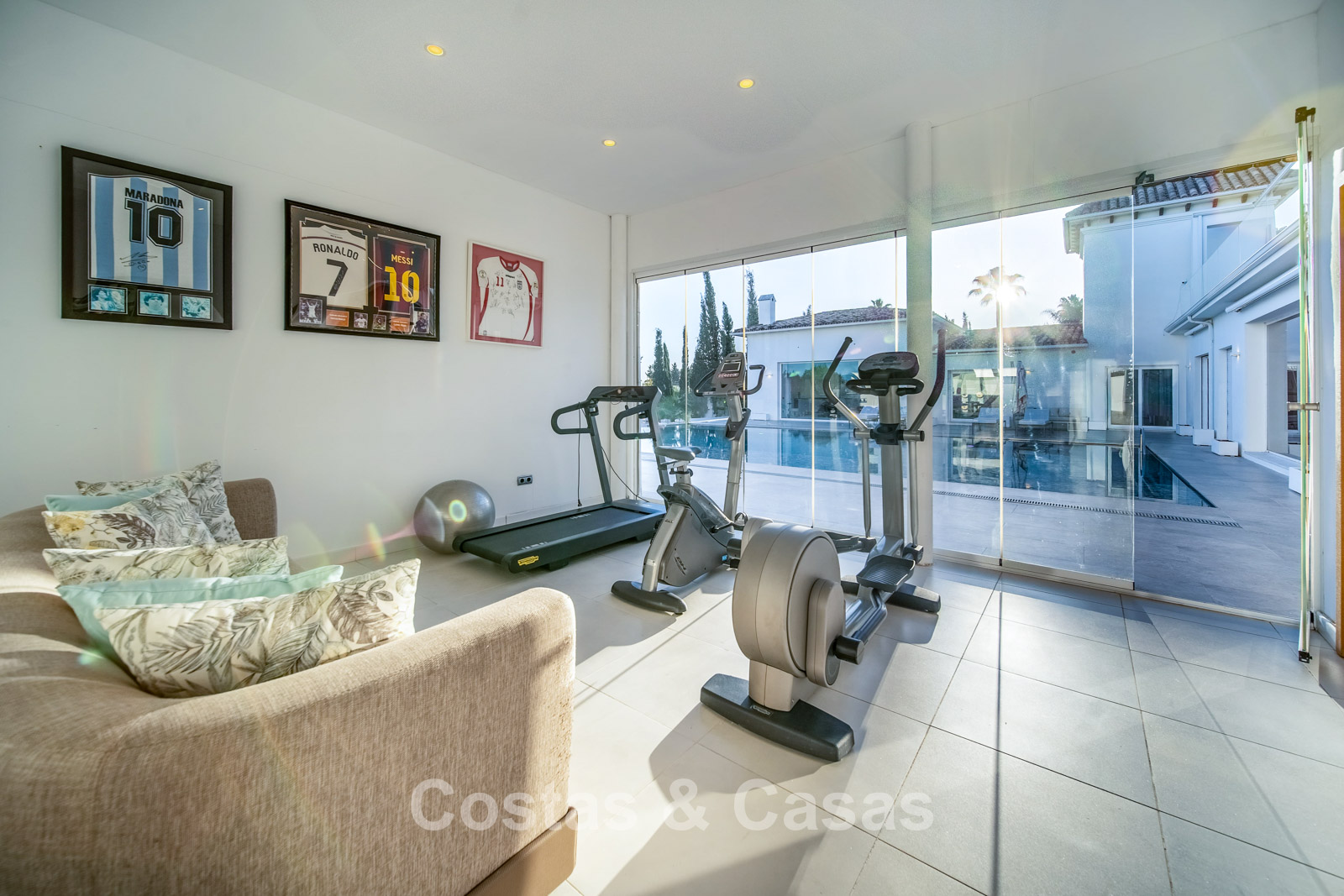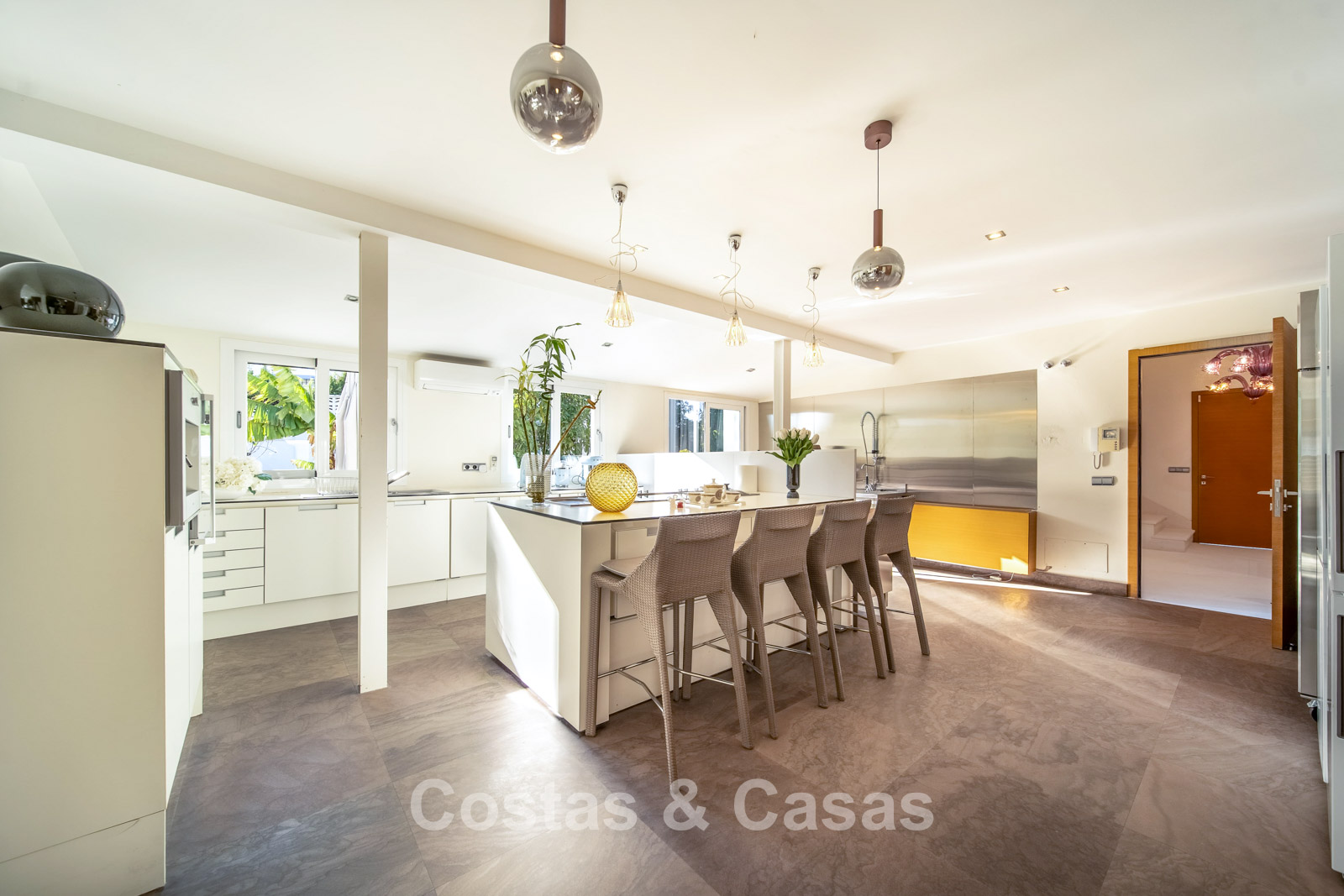 Villa spacieuse et bien conçue, entièrement rénovée en 2025. Matériaux de haute qualité et finitions haut de gamme. Intérieur lumineux grâce à de grandes baies vitrées et une disposition ouverte. Grand espace de vie avec plusieurs salons. Cuisine moderne entièrement équipée avec îlot central. Cuisine secondaire "dirty kitchen". Salle à manger formelle avec plafond à poutres apparentes. 6 chambres avec salles de bains en suite et 2 toilettes invités. Étage supérieur entièrement dédié aux propriétaires avec suite parentale, salon, dressing et terrasse avec jacuzzi. Rez-de-chaussée avec espaces supplémentaires modulables. Logement indépendant pour invités ou personnel. Bureau ou salle multimédia. Salle de sport entièrement équipée. Garage privé pour plus de 3 voitures et stationnement supplémentaire.