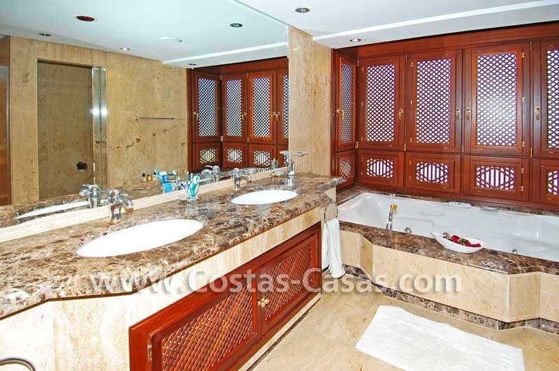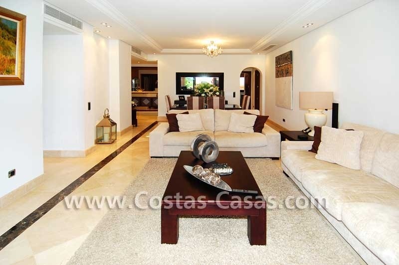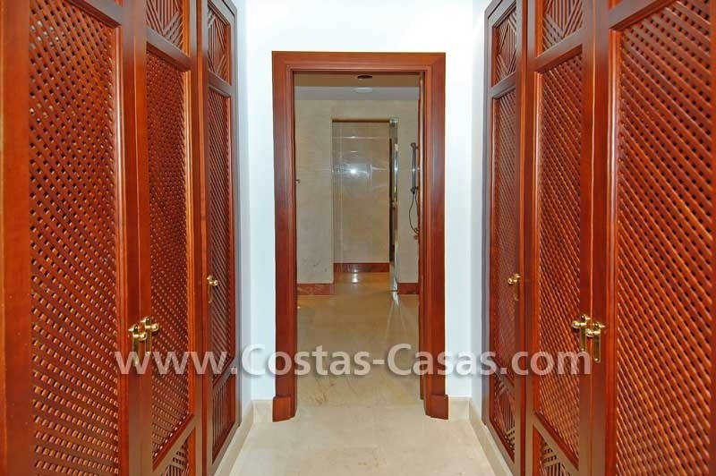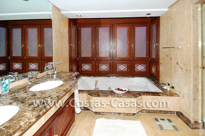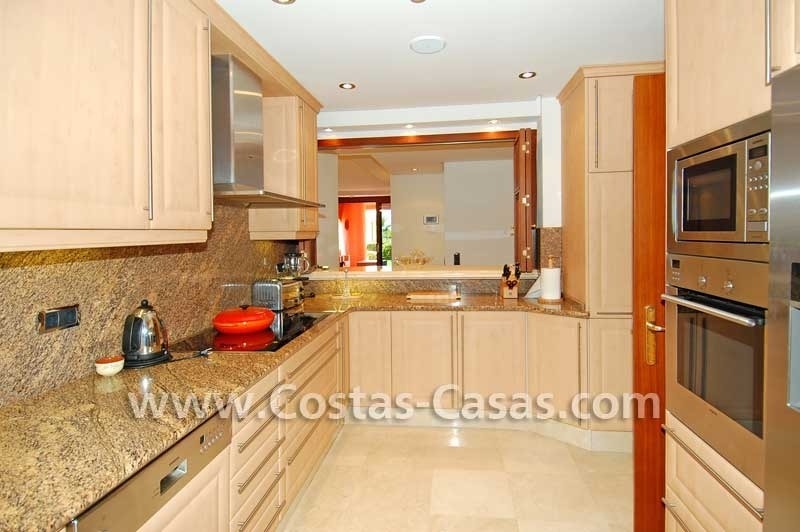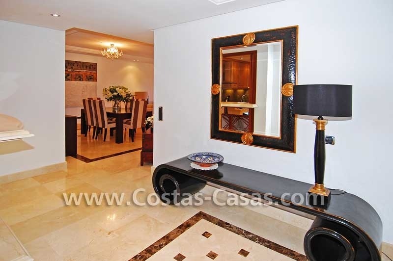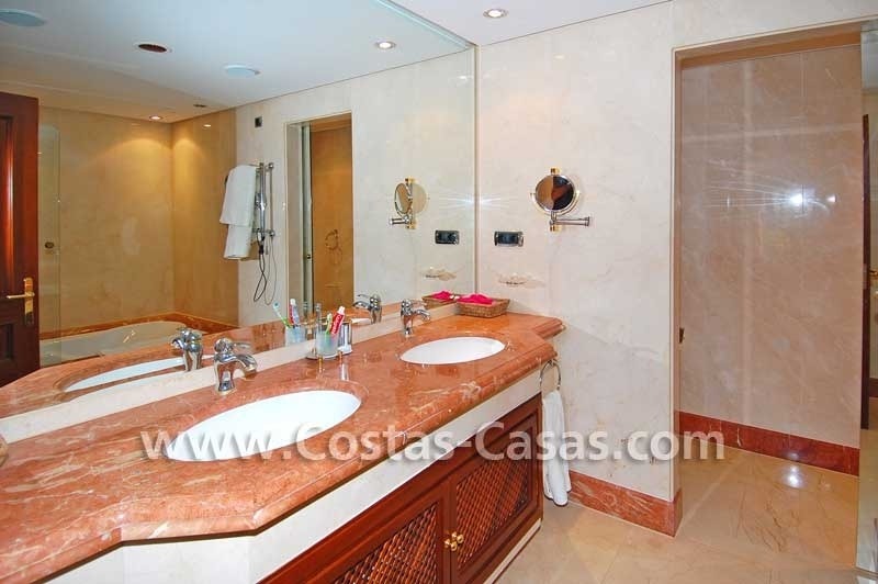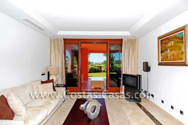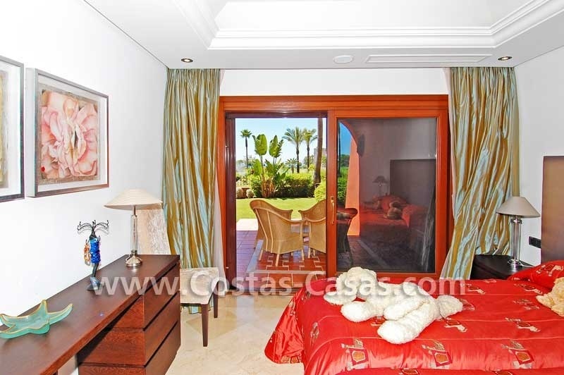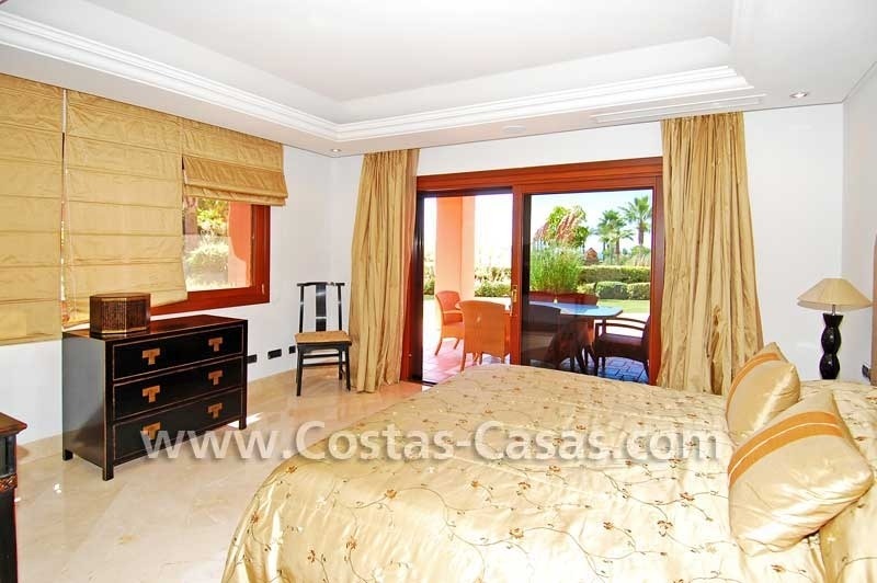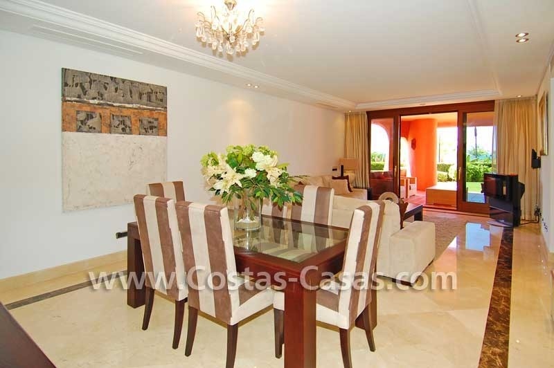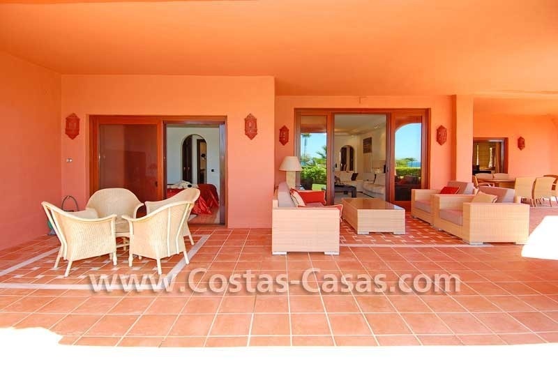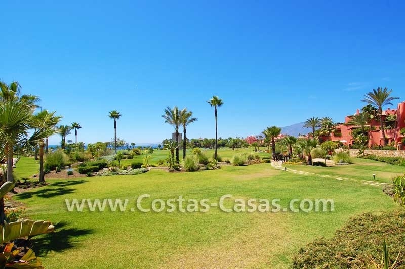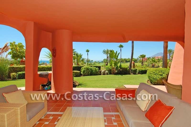 Rez-de-chaussée de luxe dans un complexe exclusif en première ligne de plage à vendre sur la Nouvelle Mille d’Or dans la zone entre Puerto Banús à Marbella et Estepona centre.