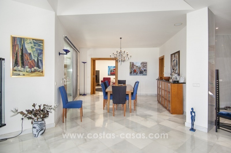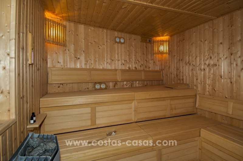 Autres caractéristiques: Ascenseur Les planchers en bois et marbre dans les zones principales. Climatisation chaud et froid dans la chambre principale. Chauffage par le sol dans toute la propriété. Double vitrage. TV par satellite. Alarme. Coffre-fort. Garage couvert pour 2 voitures.