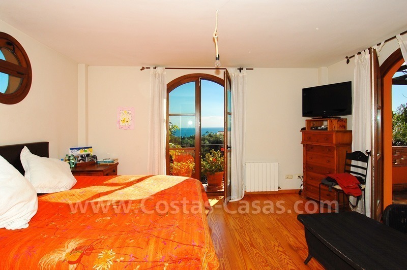 La chambre principale a une salle de attenante avec jacuzzi et offre un accès au solarium d'où vous pourrez profiter d'une vue impressionnante sur le jardin, la montagne et la mer.